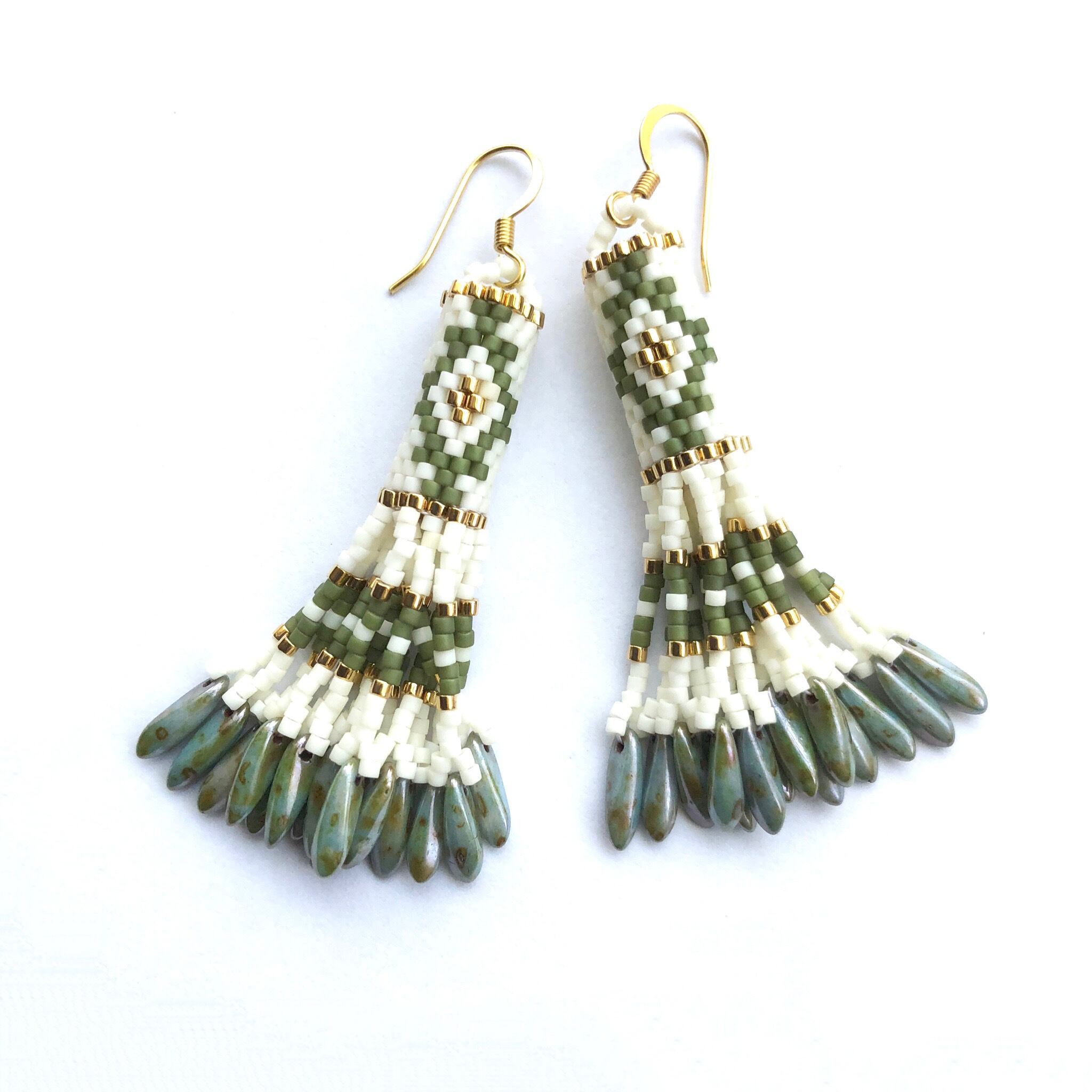 職人の手で一粒ずつ丁寧に編み上げられた、ビーズフリンジピアス。