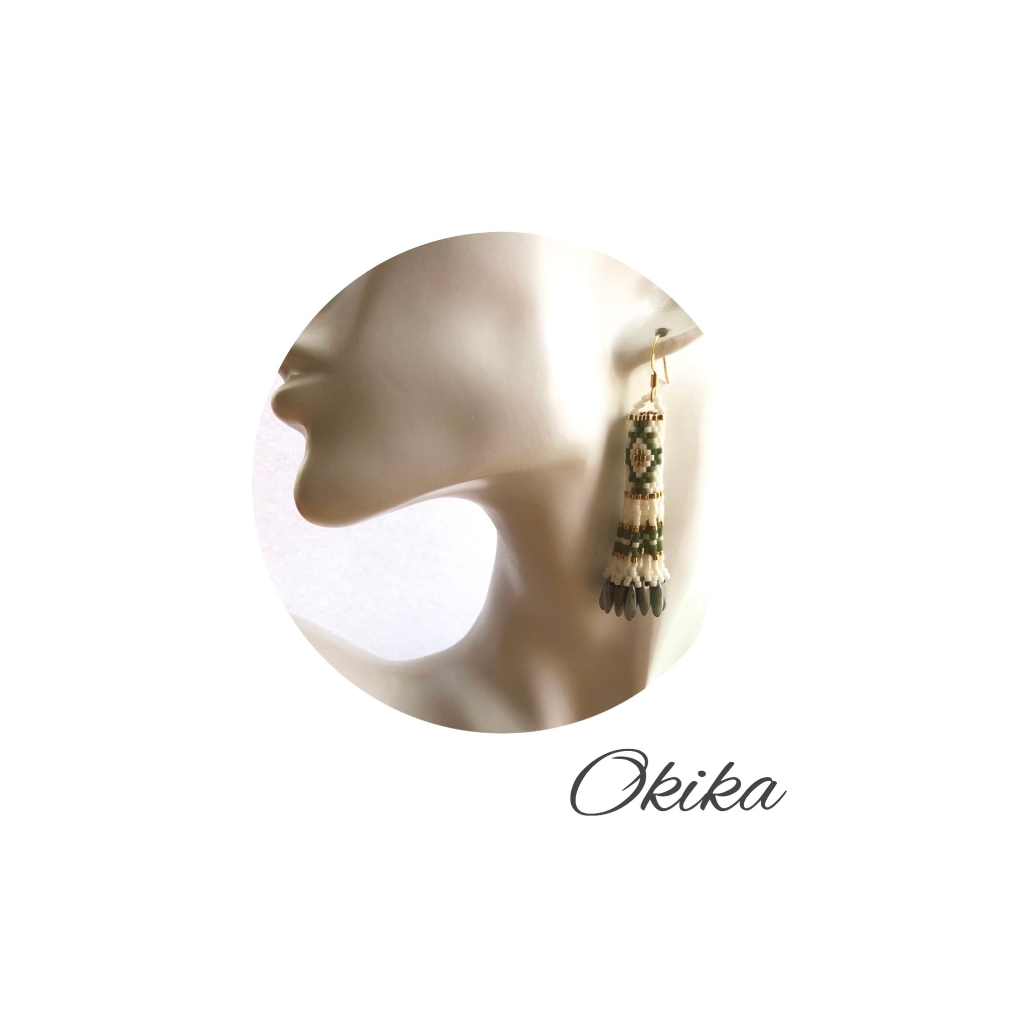 チェコビーズ×ラウンドフリンジ ピアス/イヤリング【Khaki】