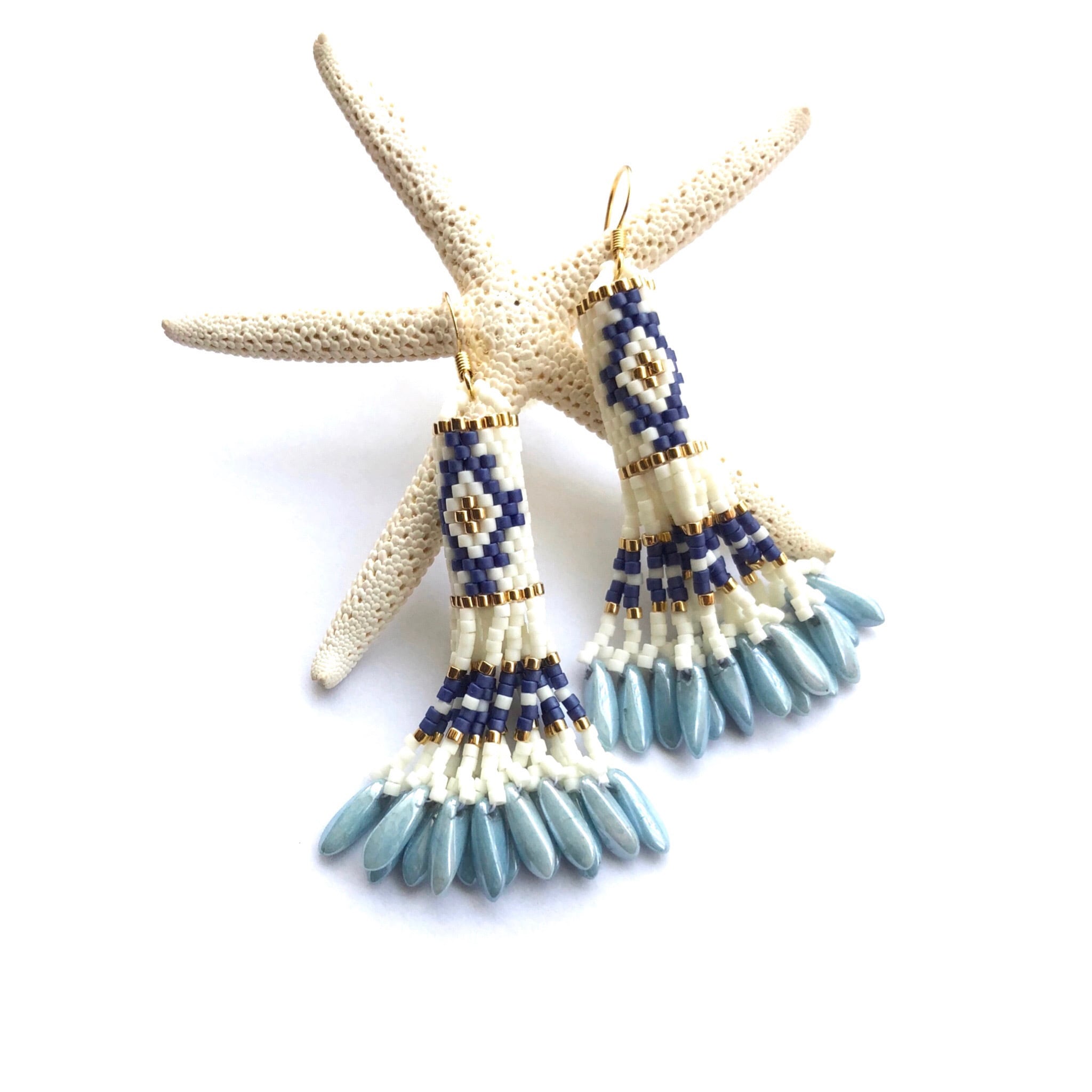 職人の手で一粒ずつ丁寧に編み上げられた、ビーズフリンジピアス。
