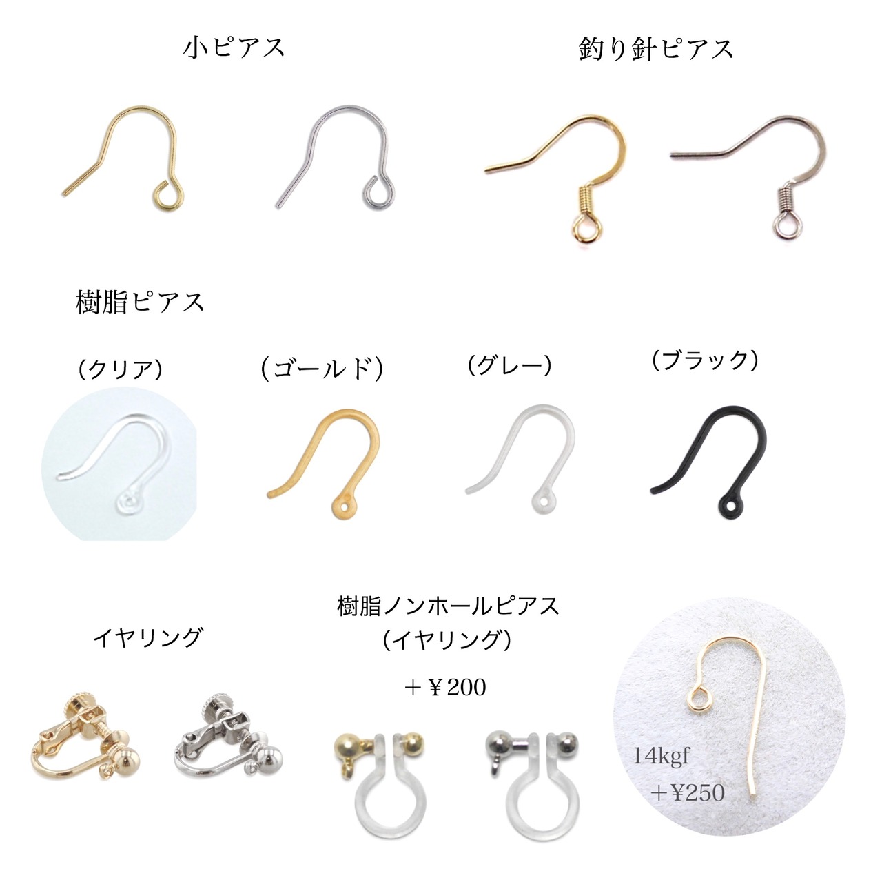 ※有料で14kgf フックピアス、樹脂イヤリングに変更可能です。