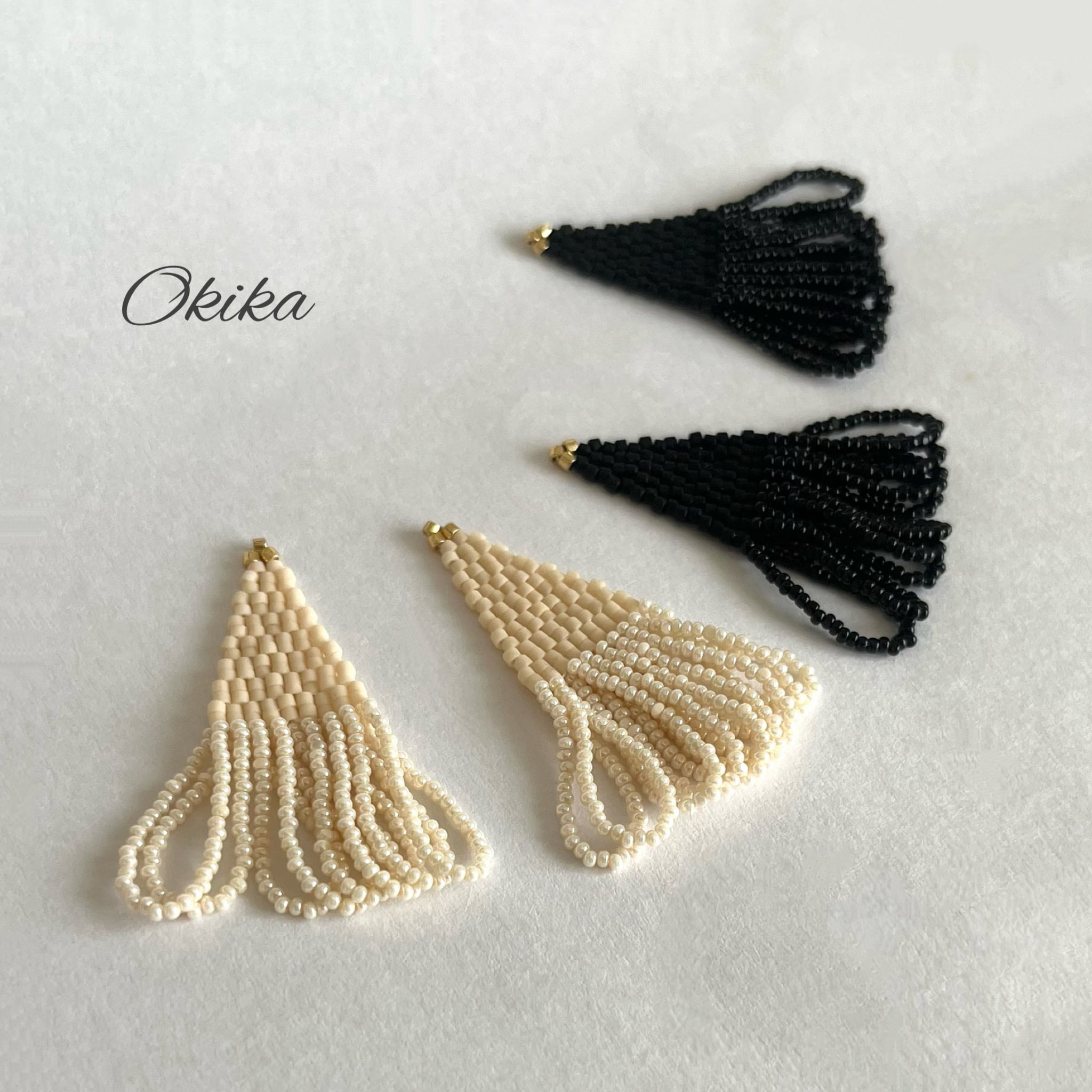 フリンジ部分には光沢のある極小ビーズを使用し、