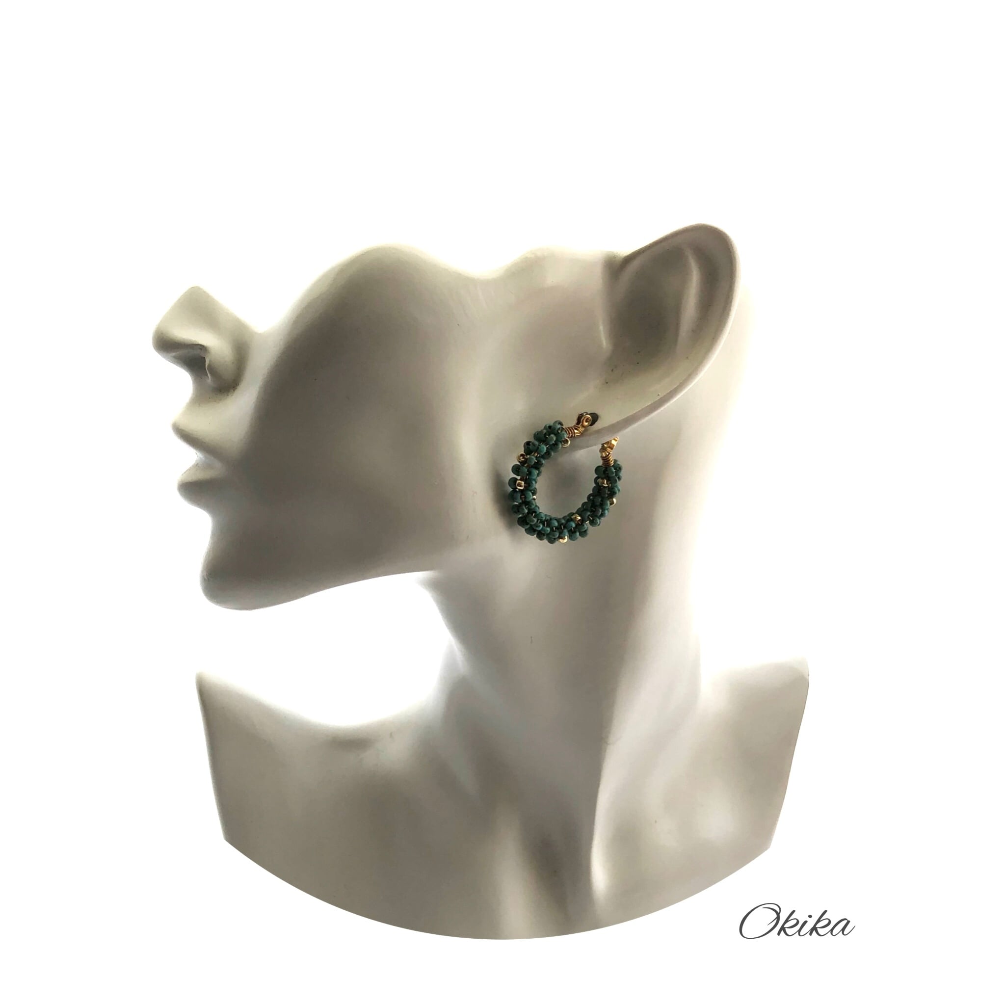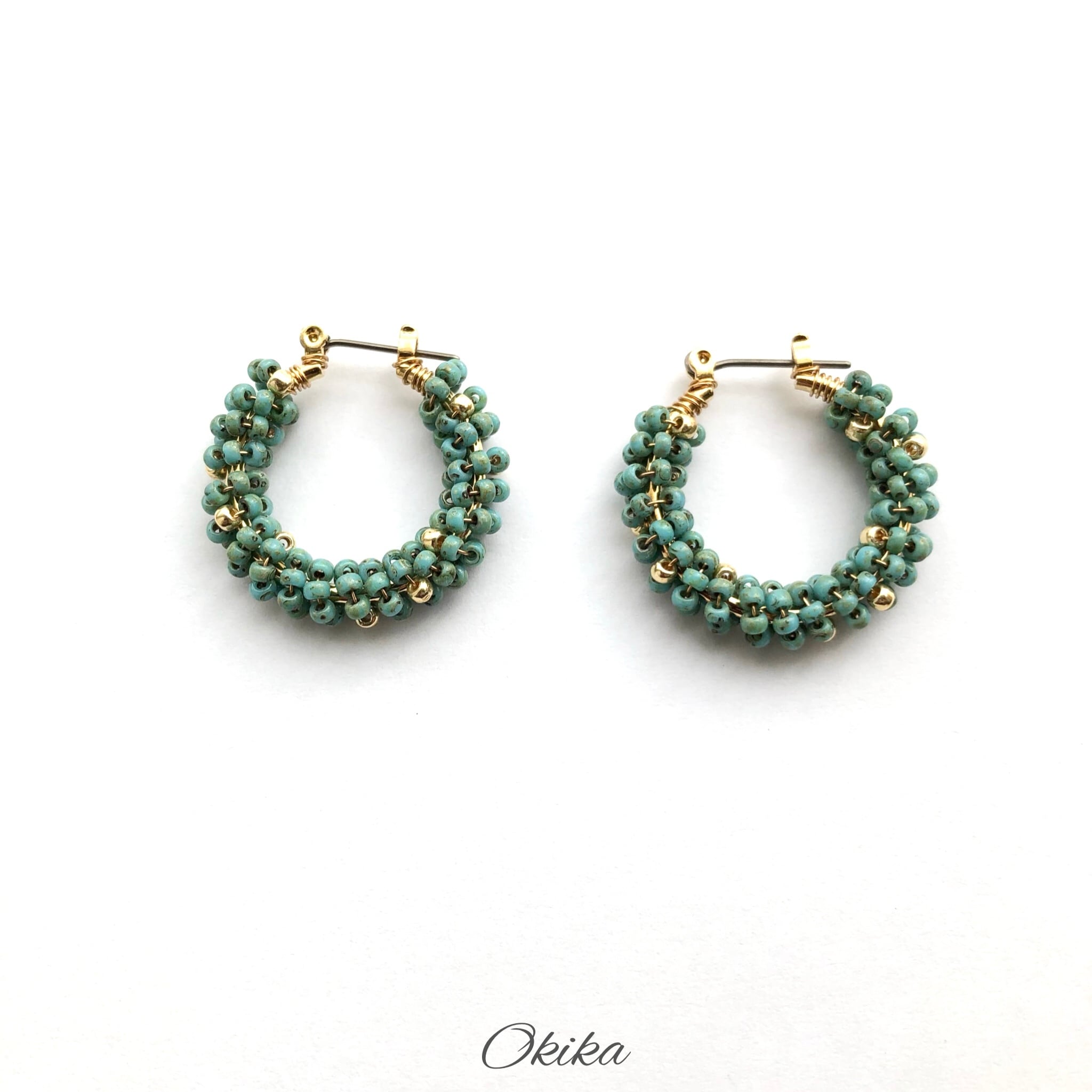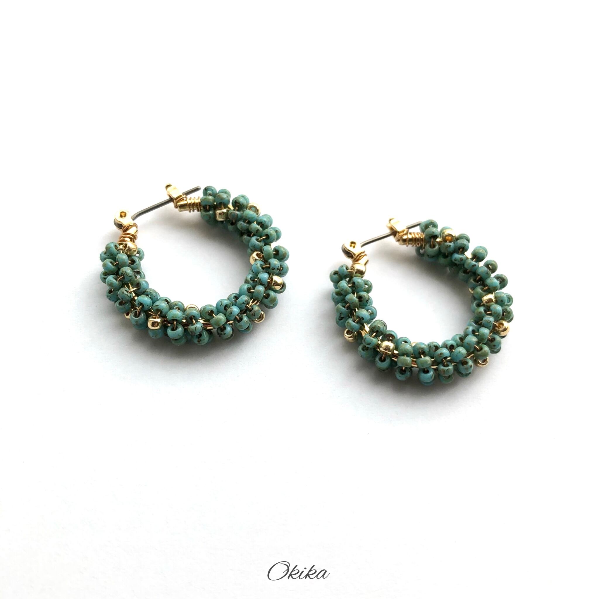 “Luxe”ビーズ フープチタンピアス【Turquoise×gold】
