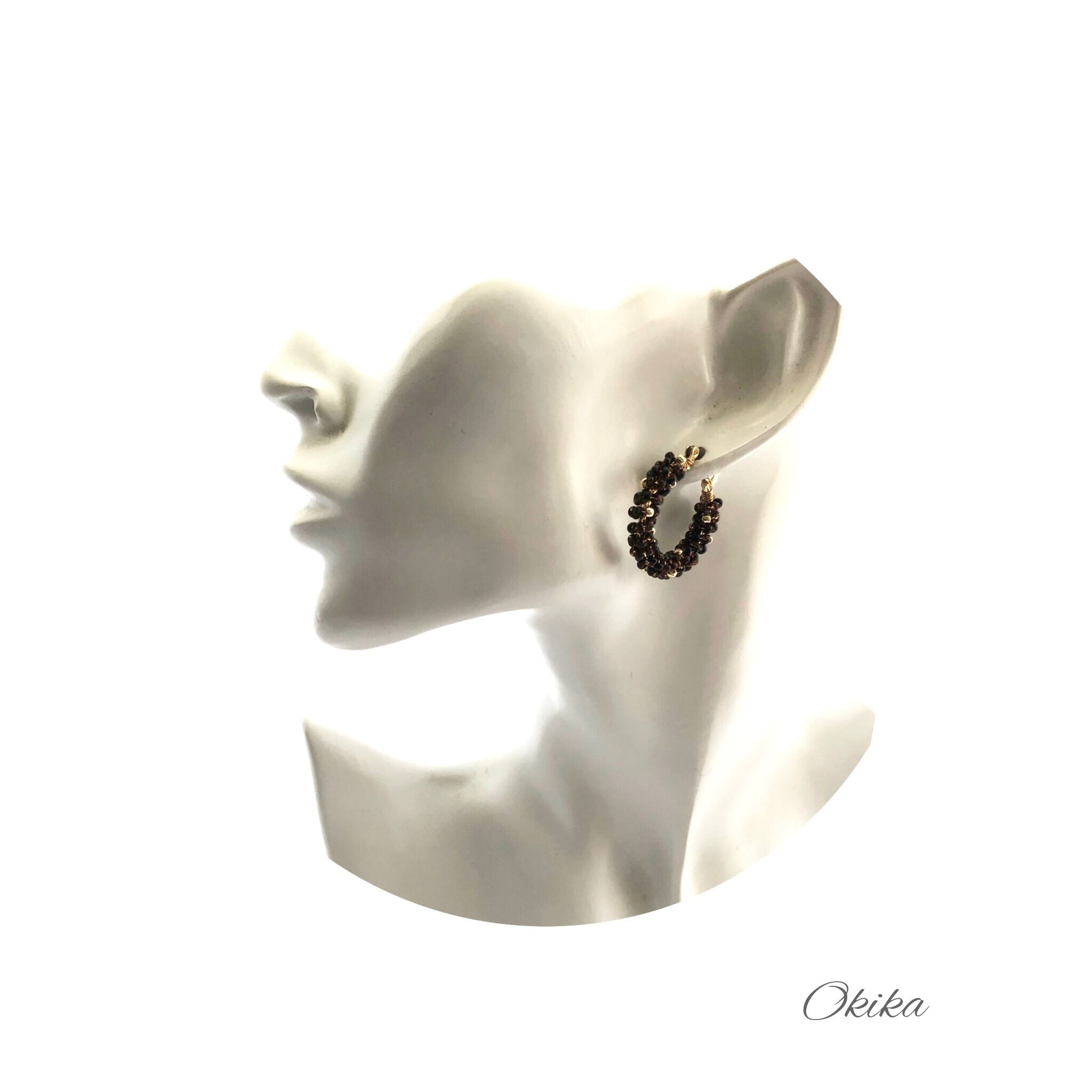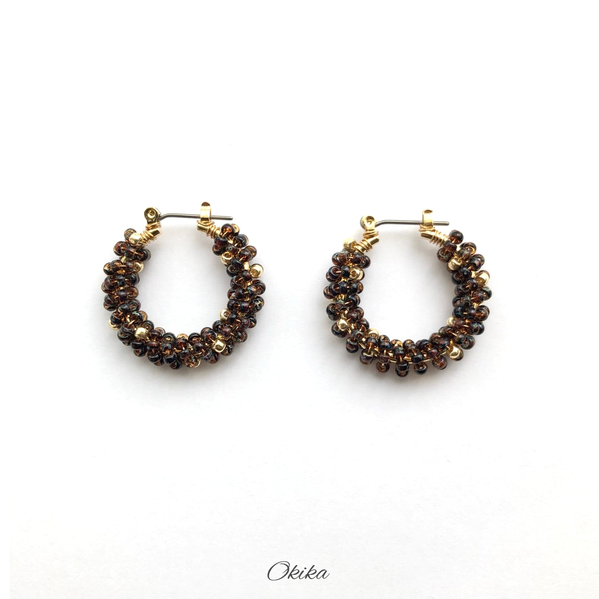 “Luxe”ビーズ フープチタンピアス【Bekko×gold】