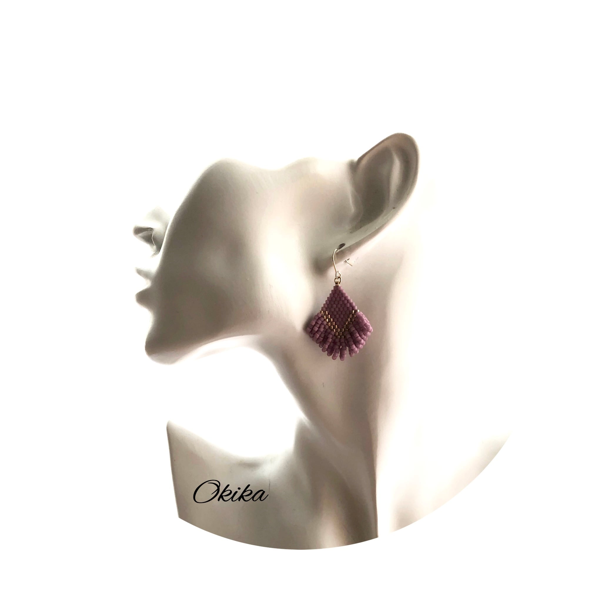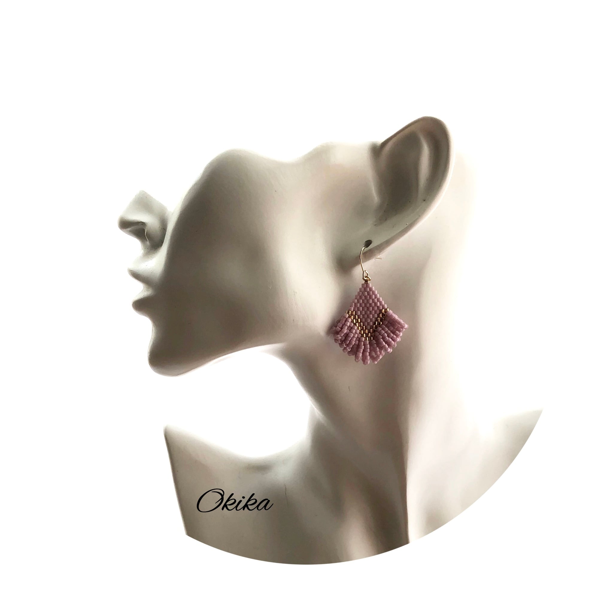 フリンジ部分をループ状にした、小ぶりなビーズピアスです。