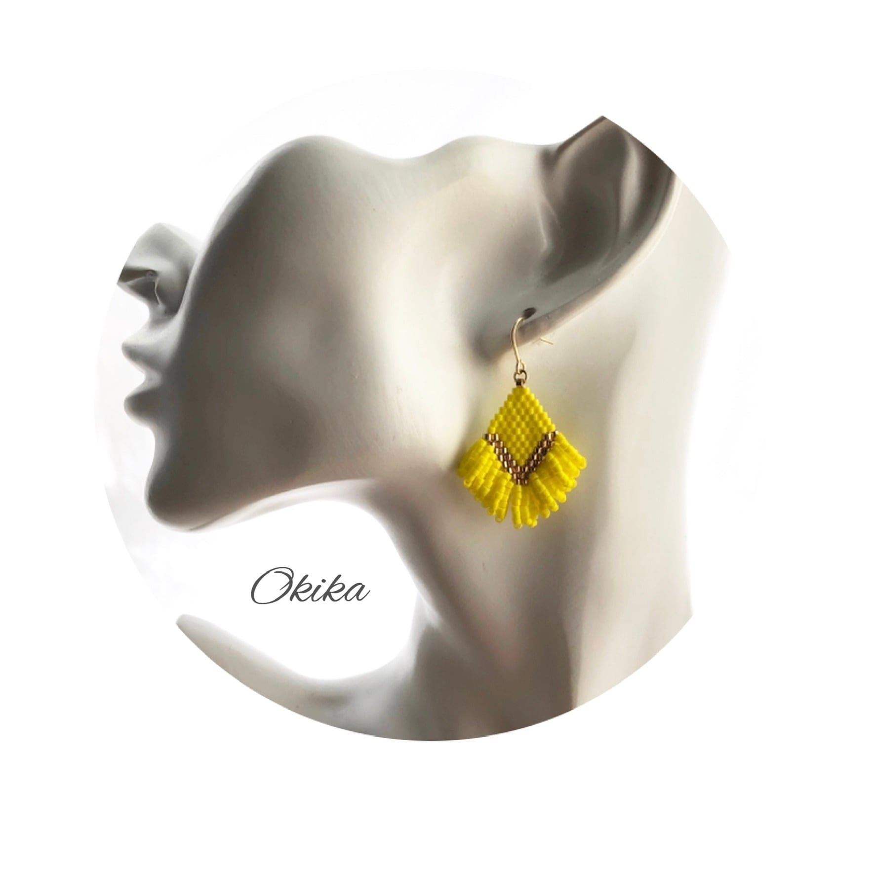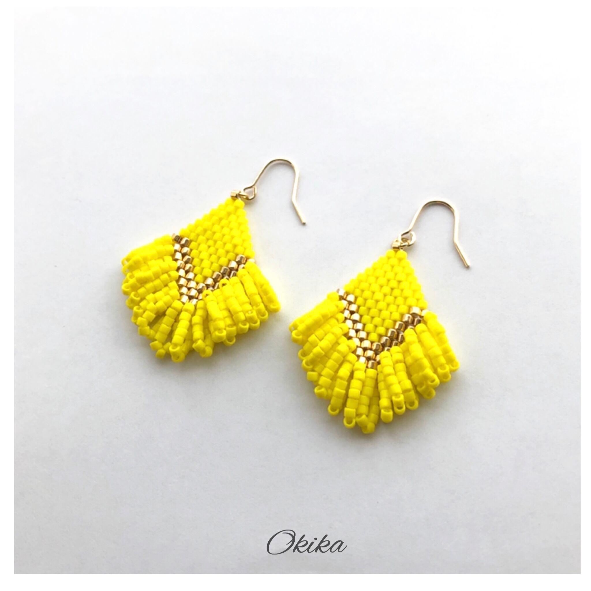 フリンジ部分をループ状にした、小ぶりなビーズピアス。