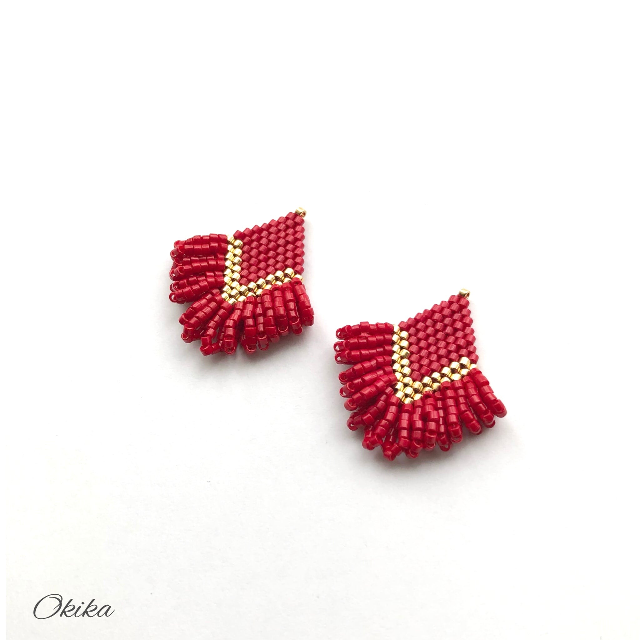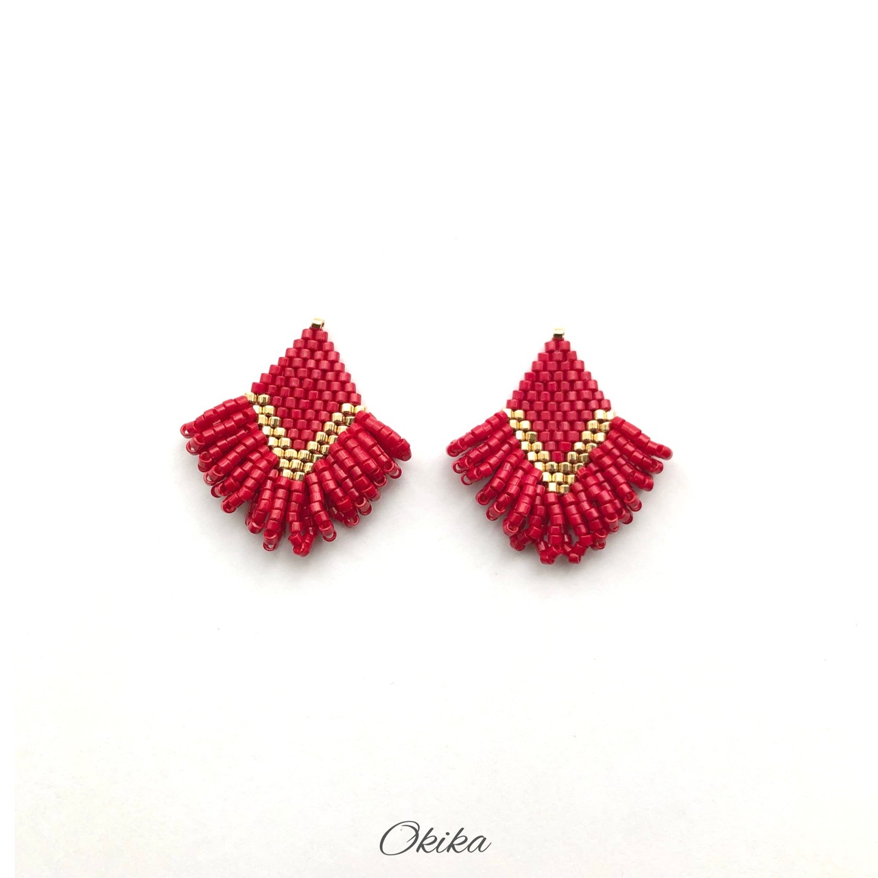 ループ ビーズピアス/イヤリング【Red】