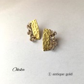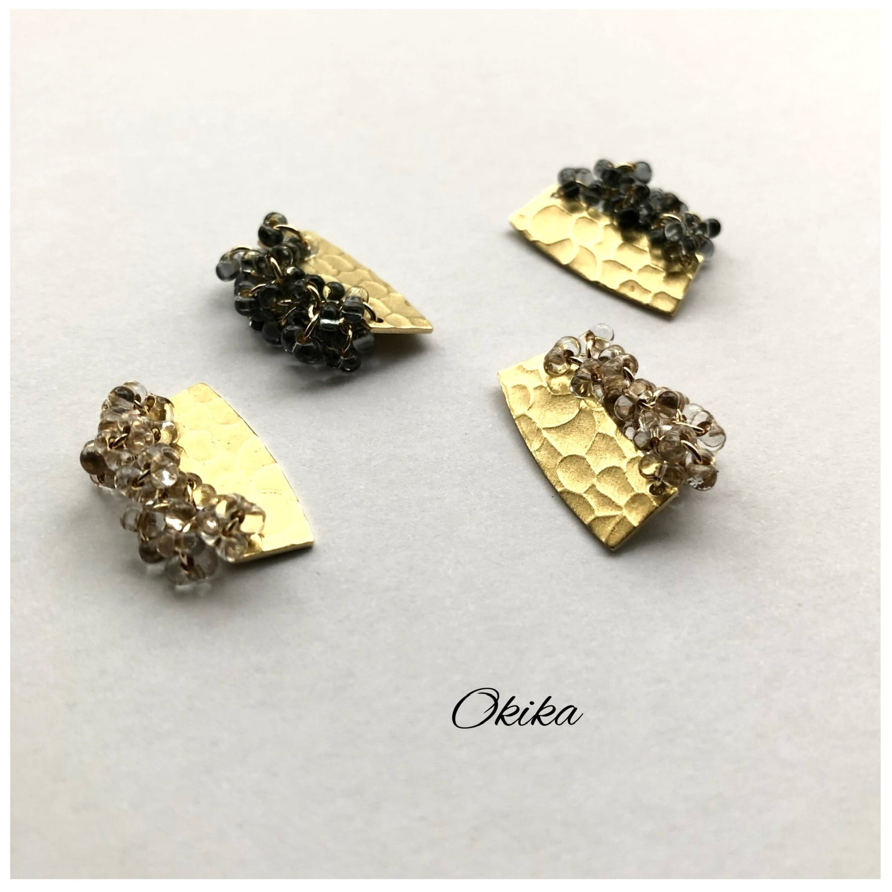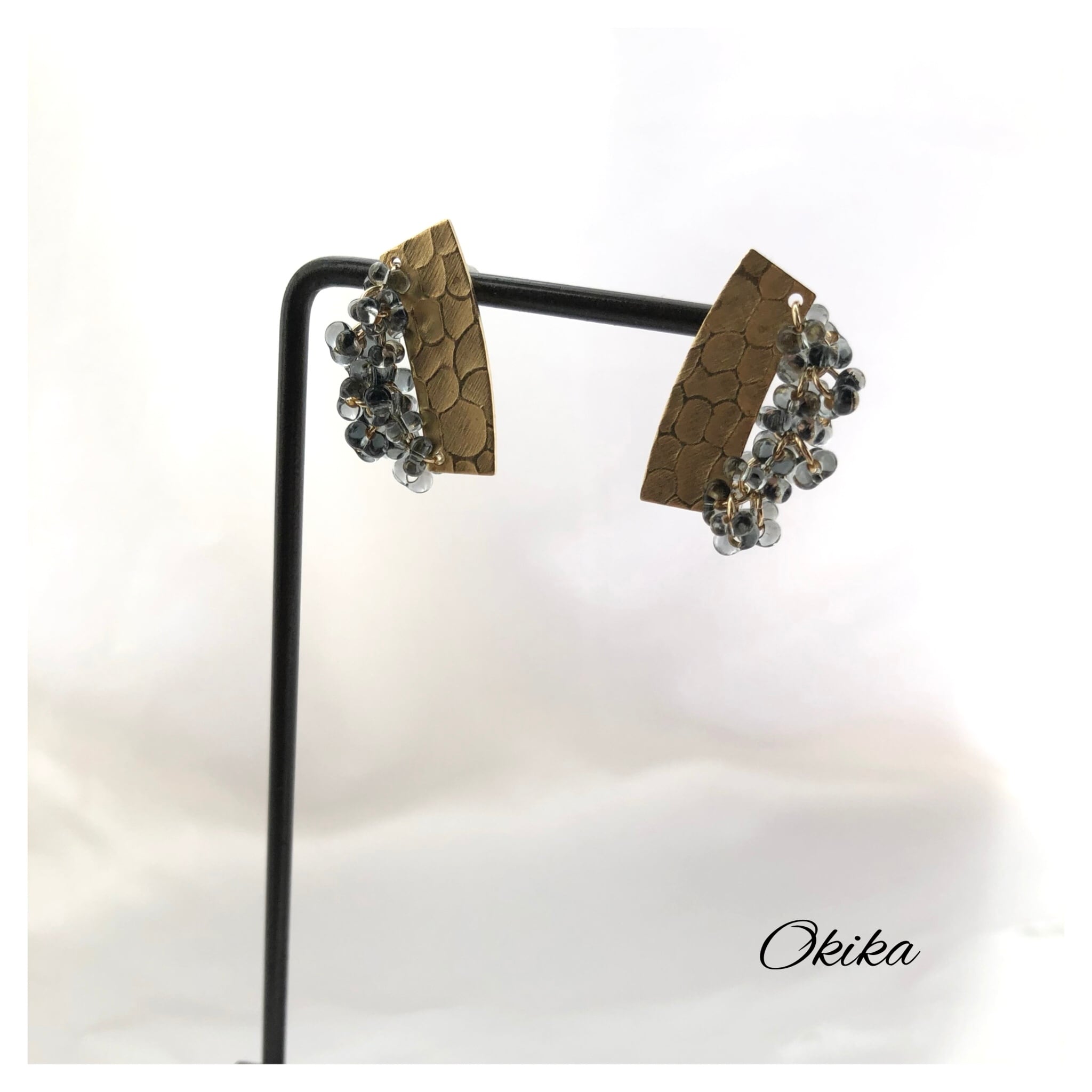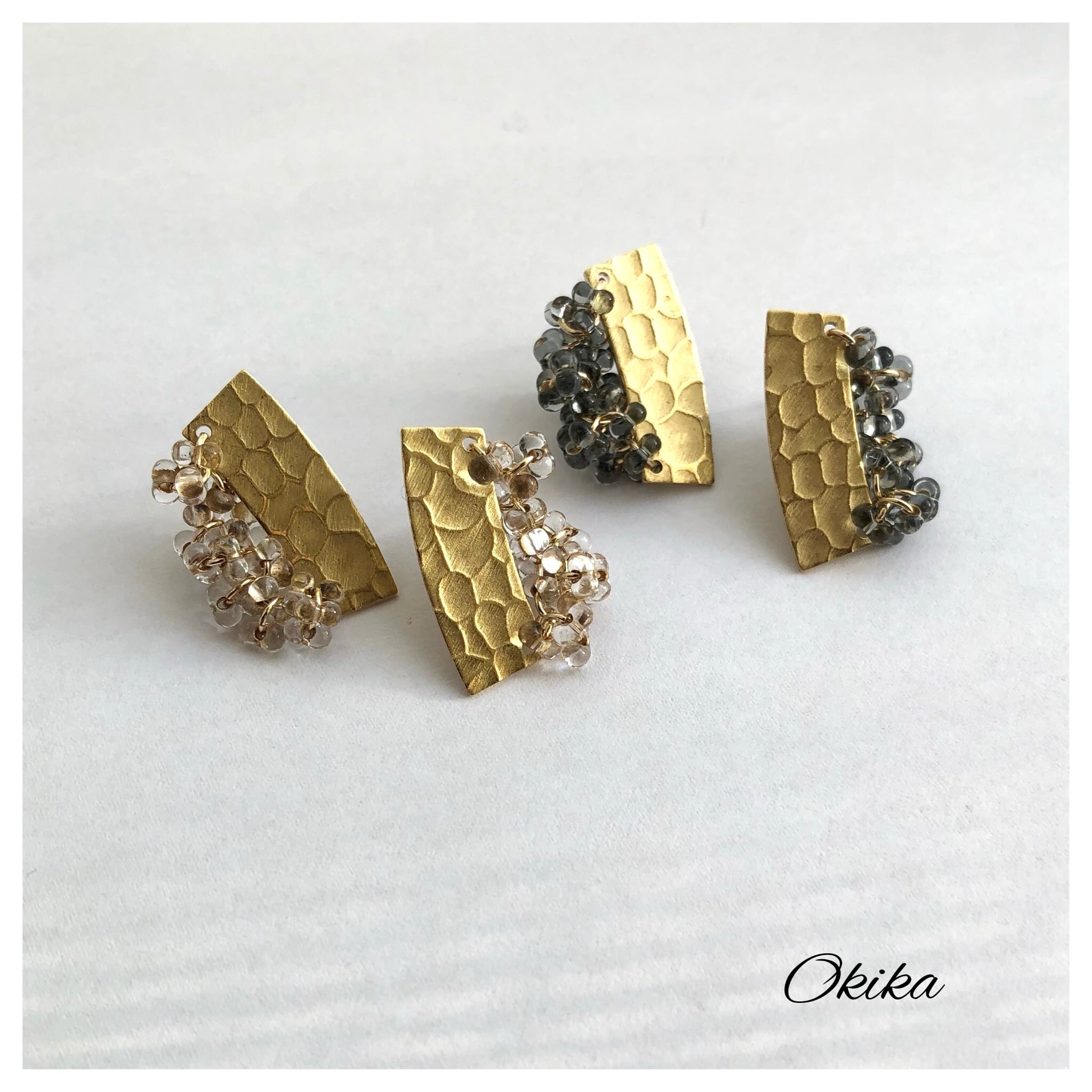 アンティーク感が漂うハンマー打ちの真鍮ゴールドプレート×チェコ製ビーズの組み合わせです。