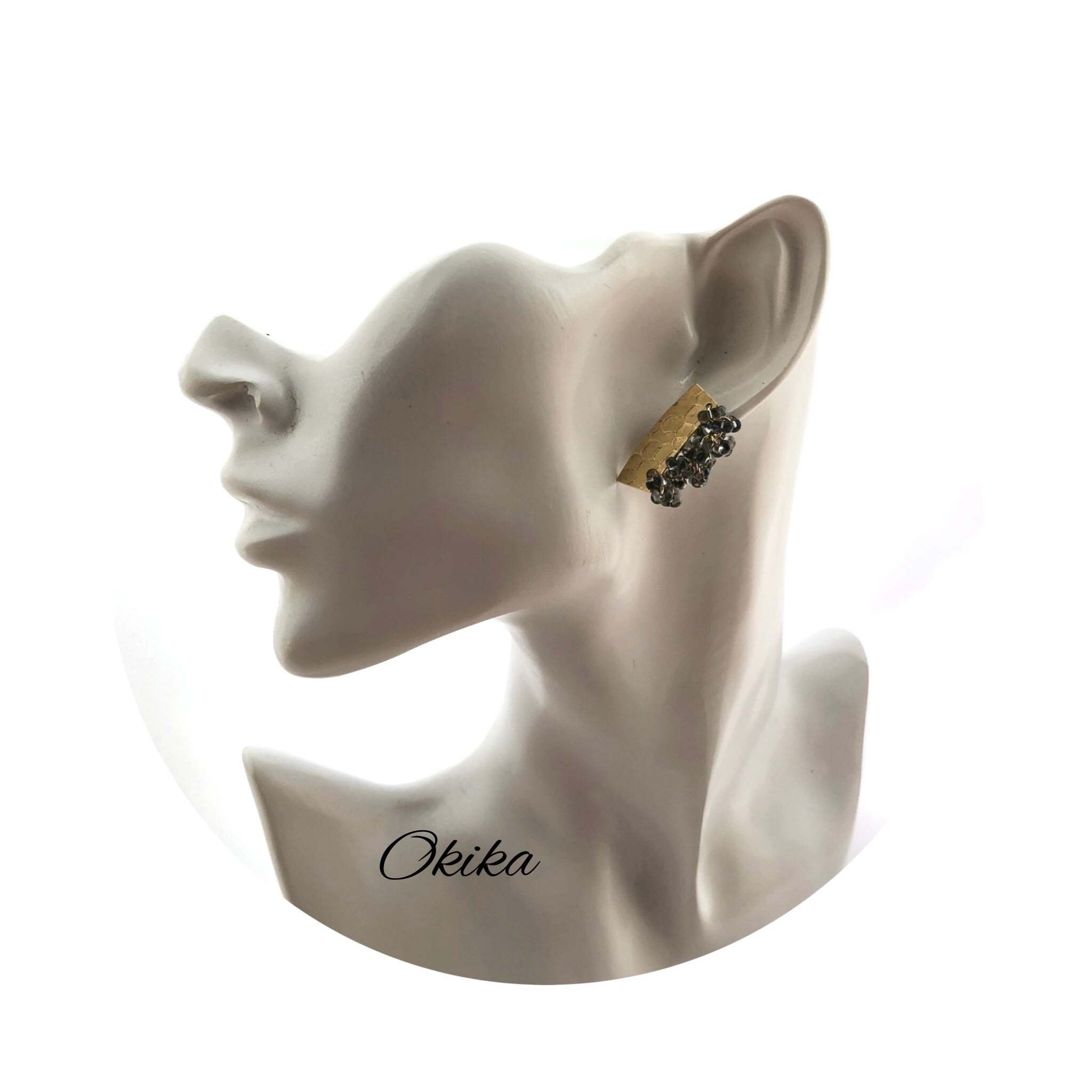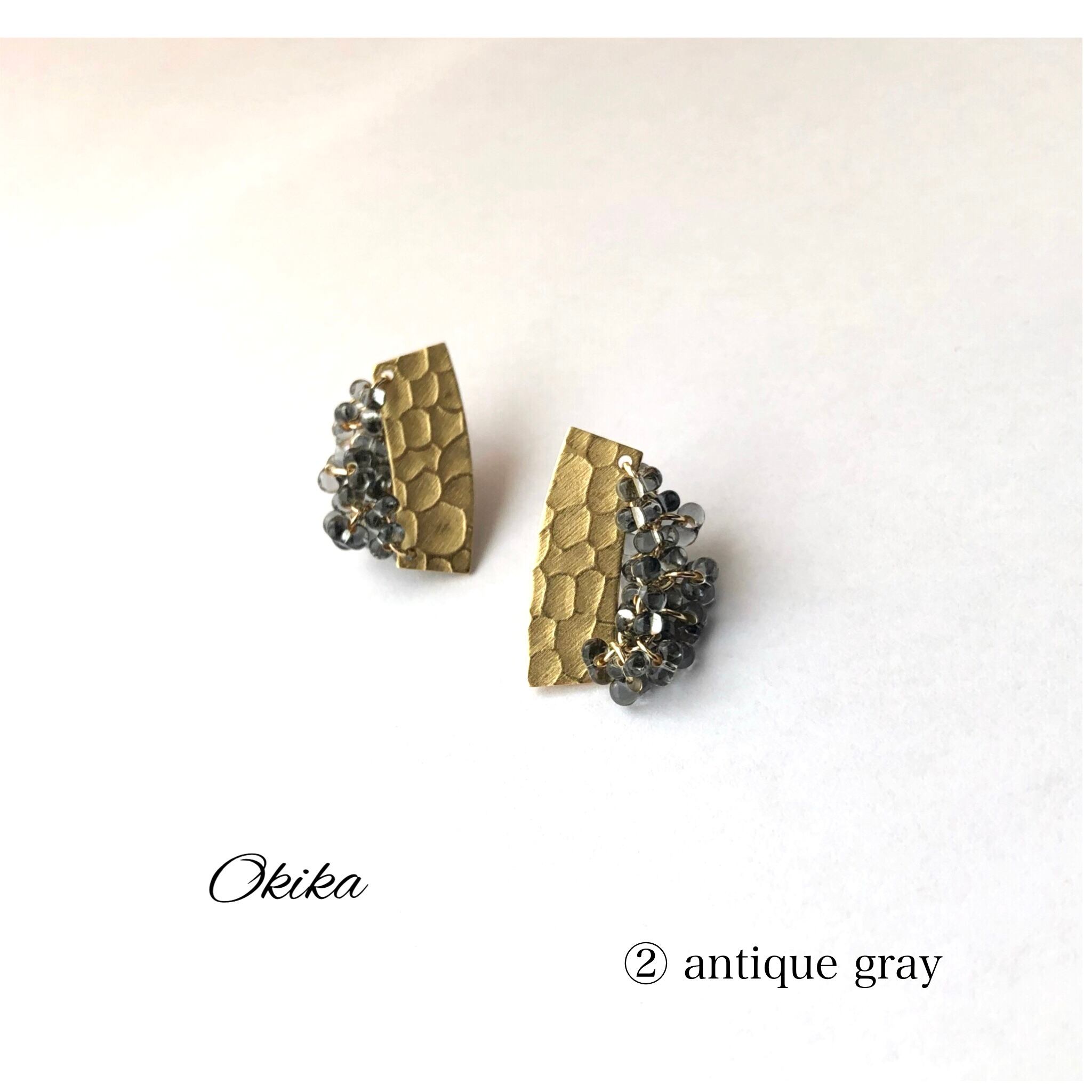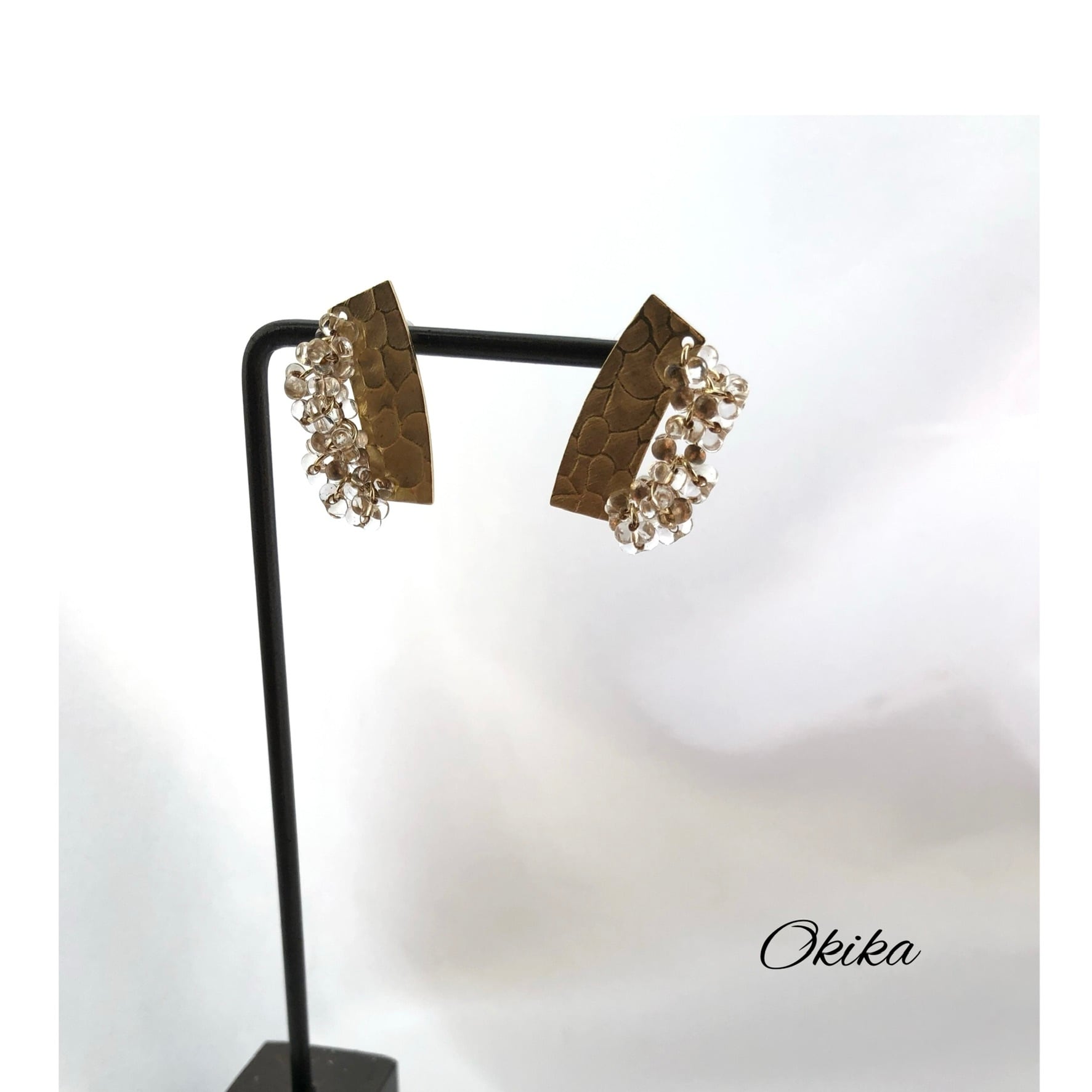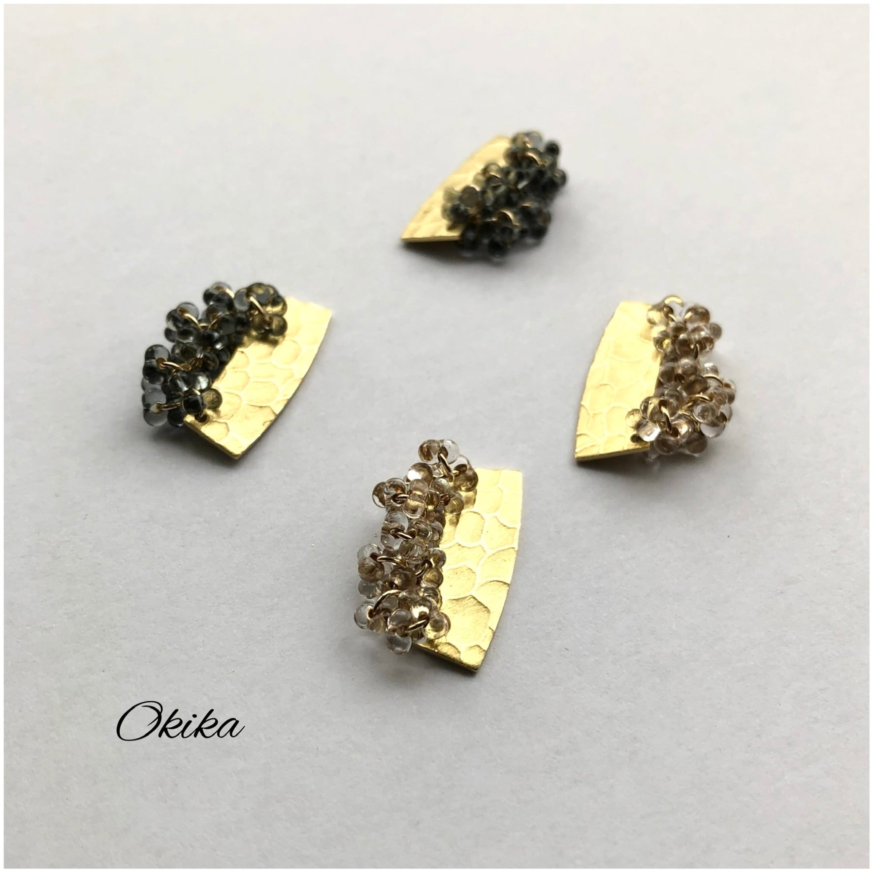 アンティーク感が漂うハンマー打ちの真鍮ゴールドプレート×チェコ製ビーズの組み合わせです。