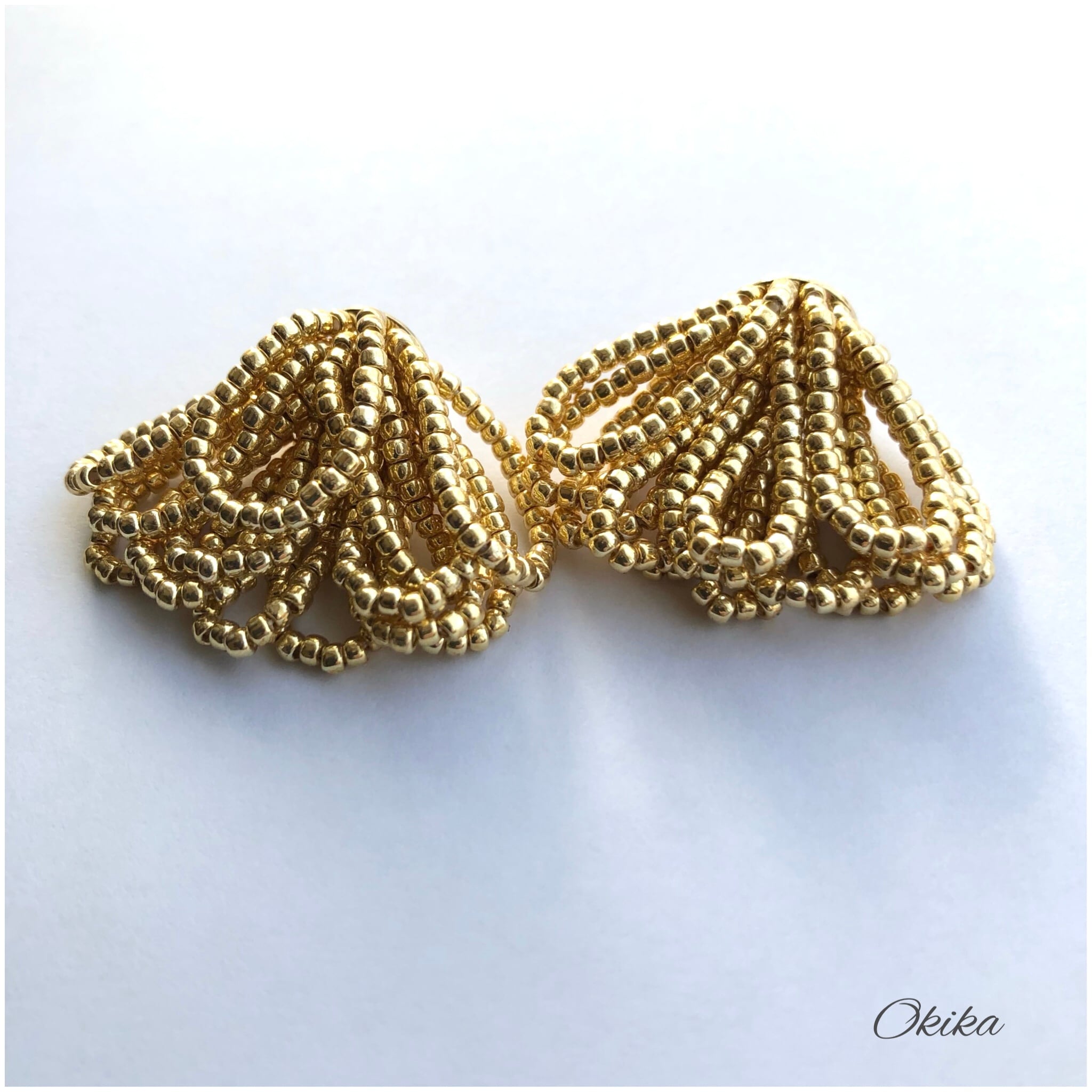 国産の上質なビーズを使用した華やかなデザインピアス。