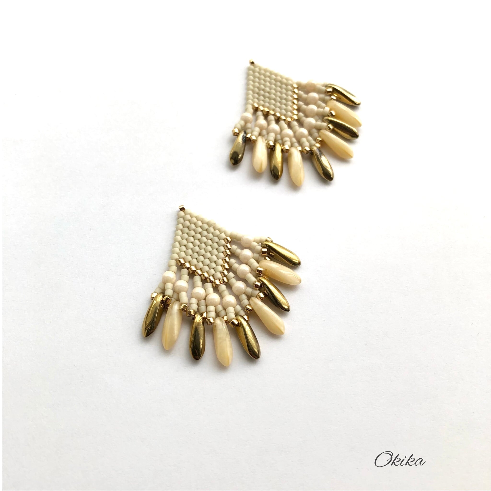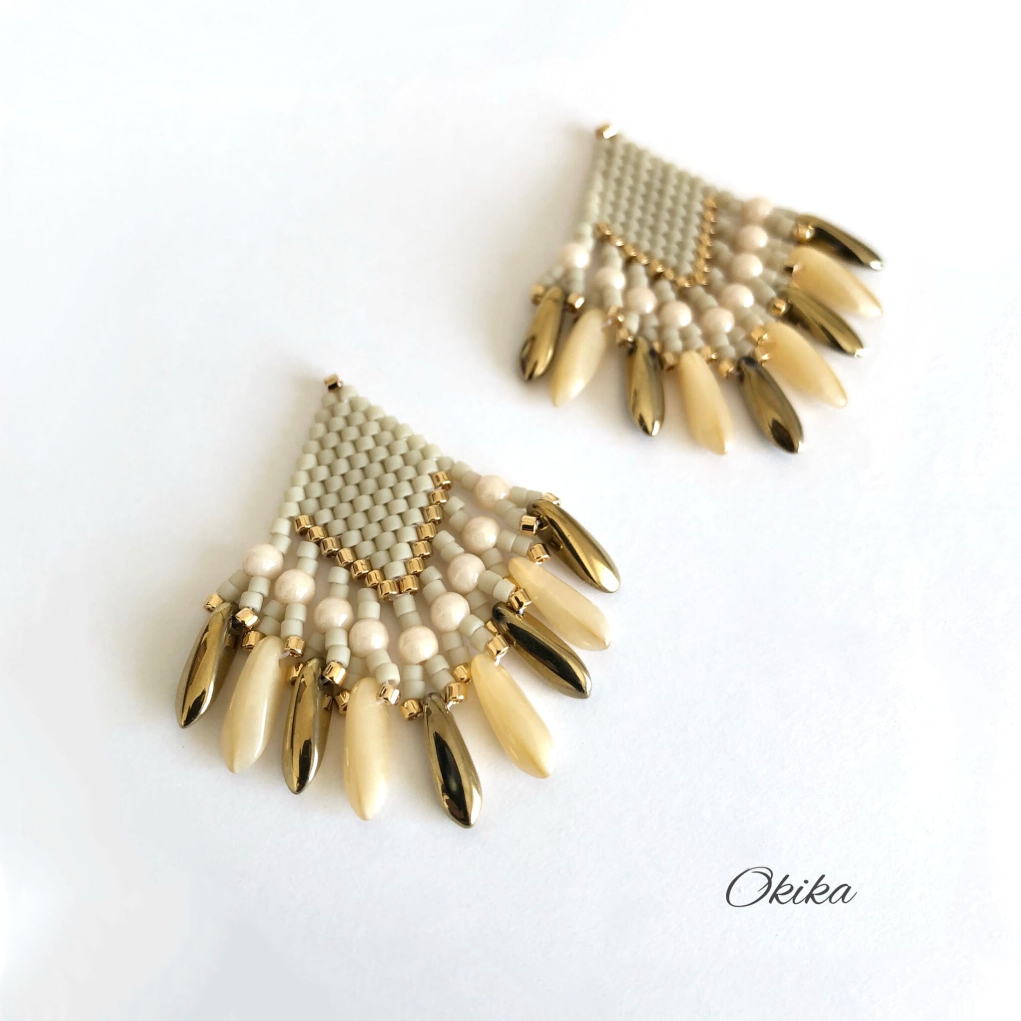 チェコビーズ フリンジ ピアス/イヤリング【Ecru】