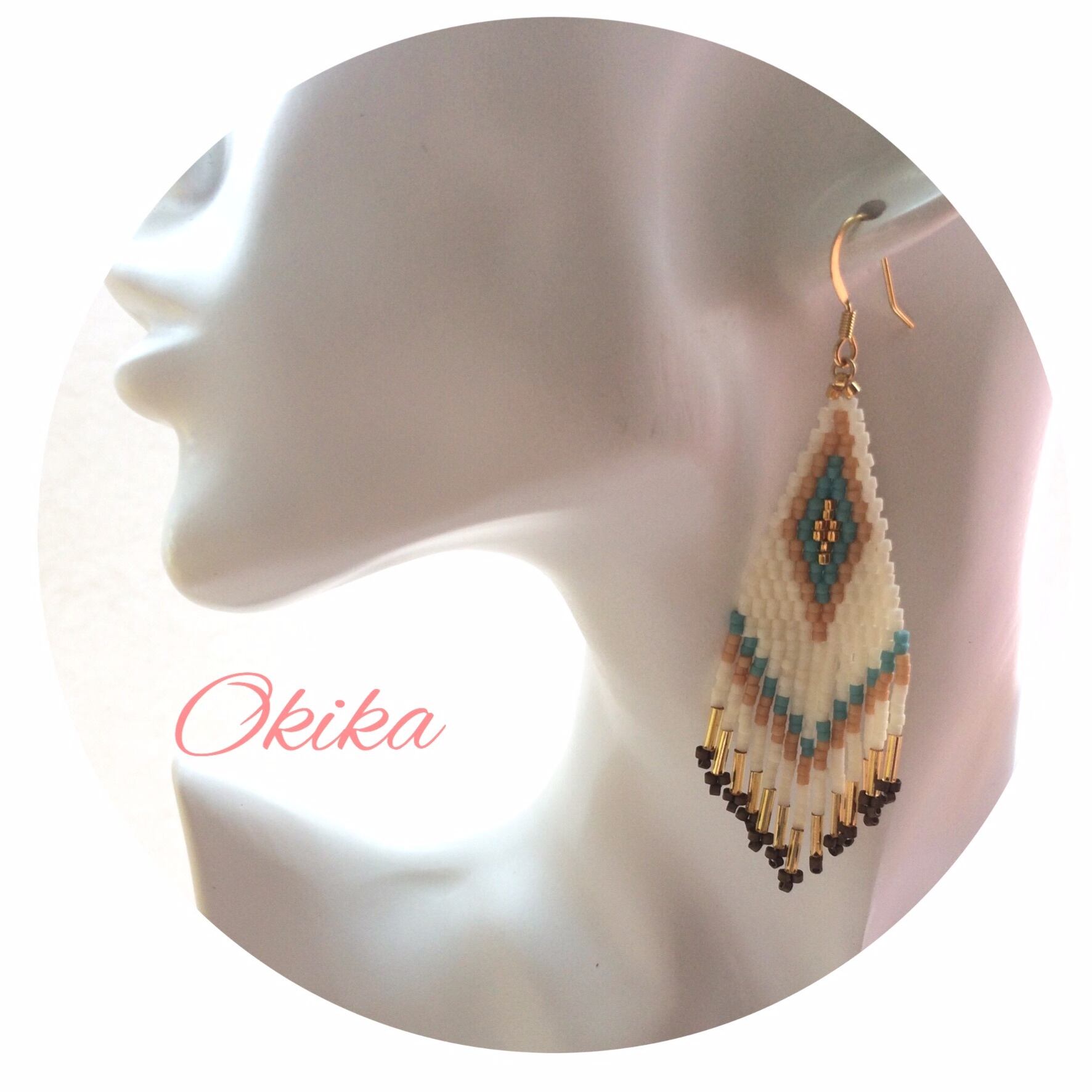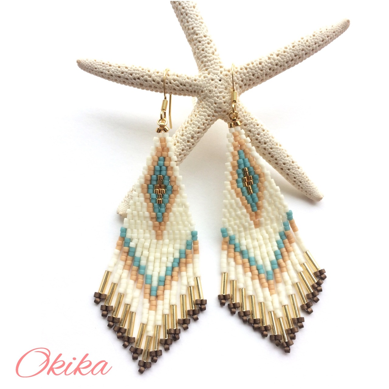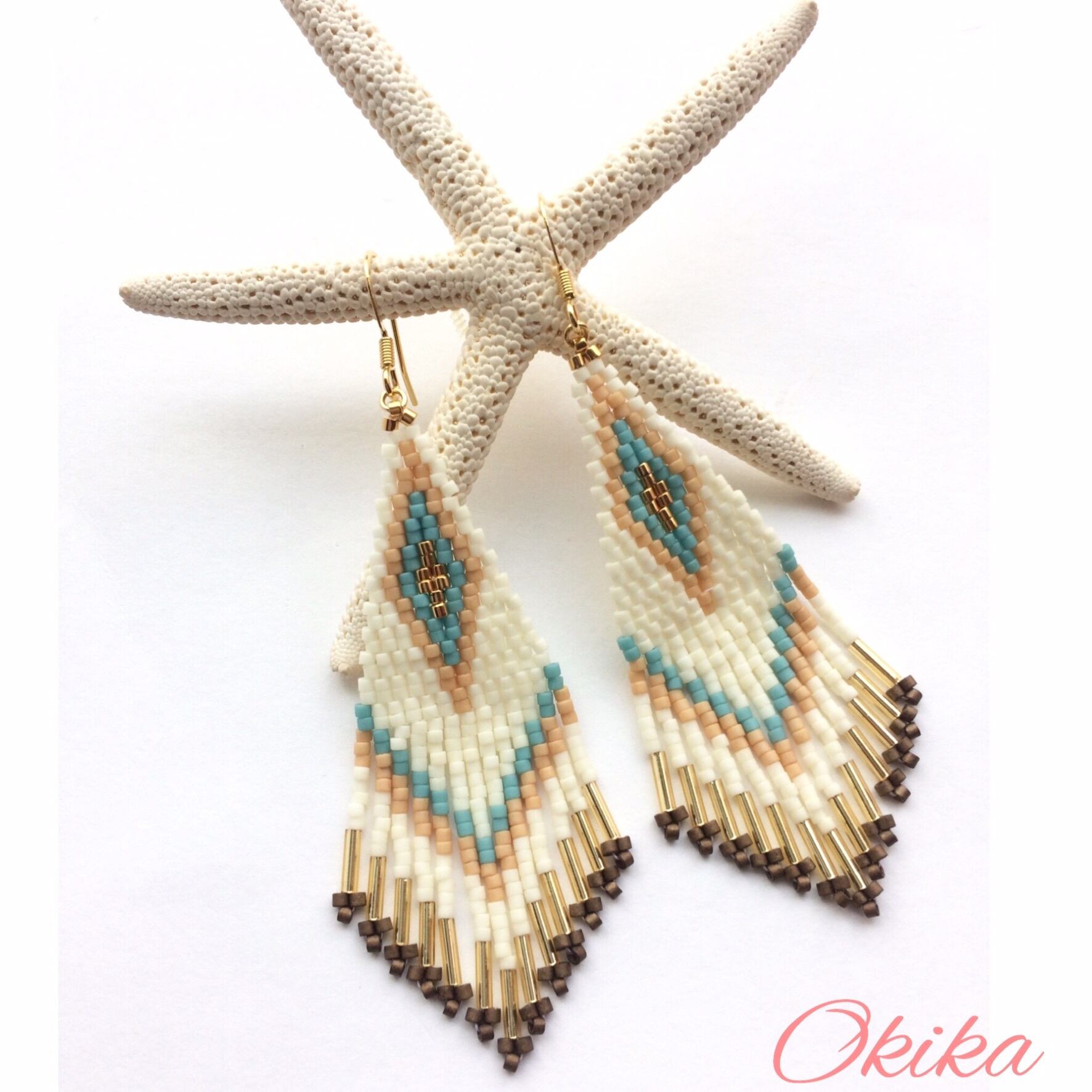 フリンジ ピアス/イヤリング【Beige×Turquoise】