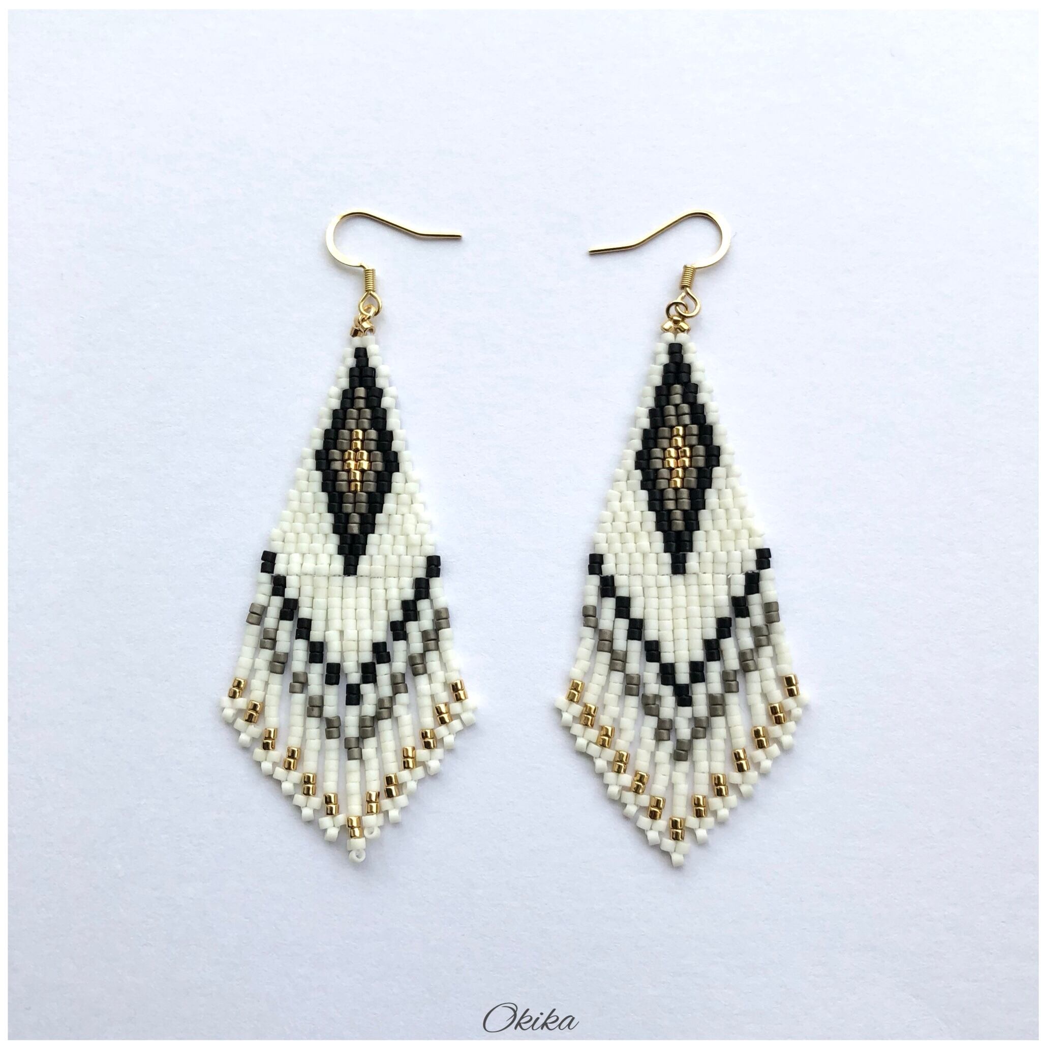 フリンジ ピアス/イヤリング【White/Black/Gureju】
