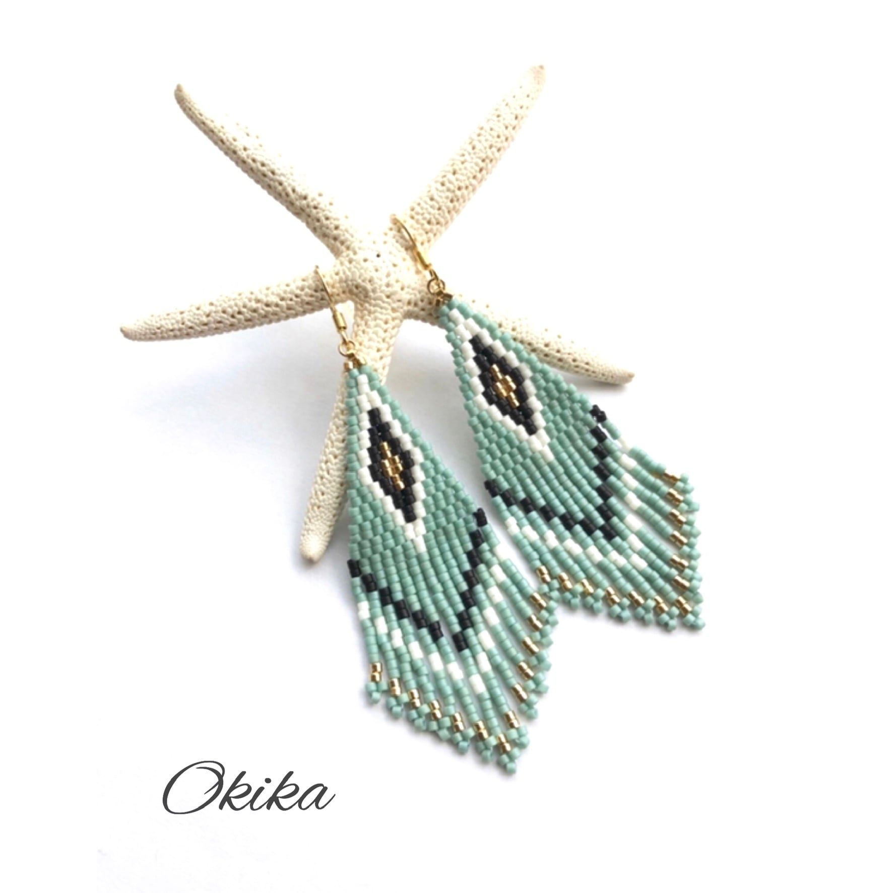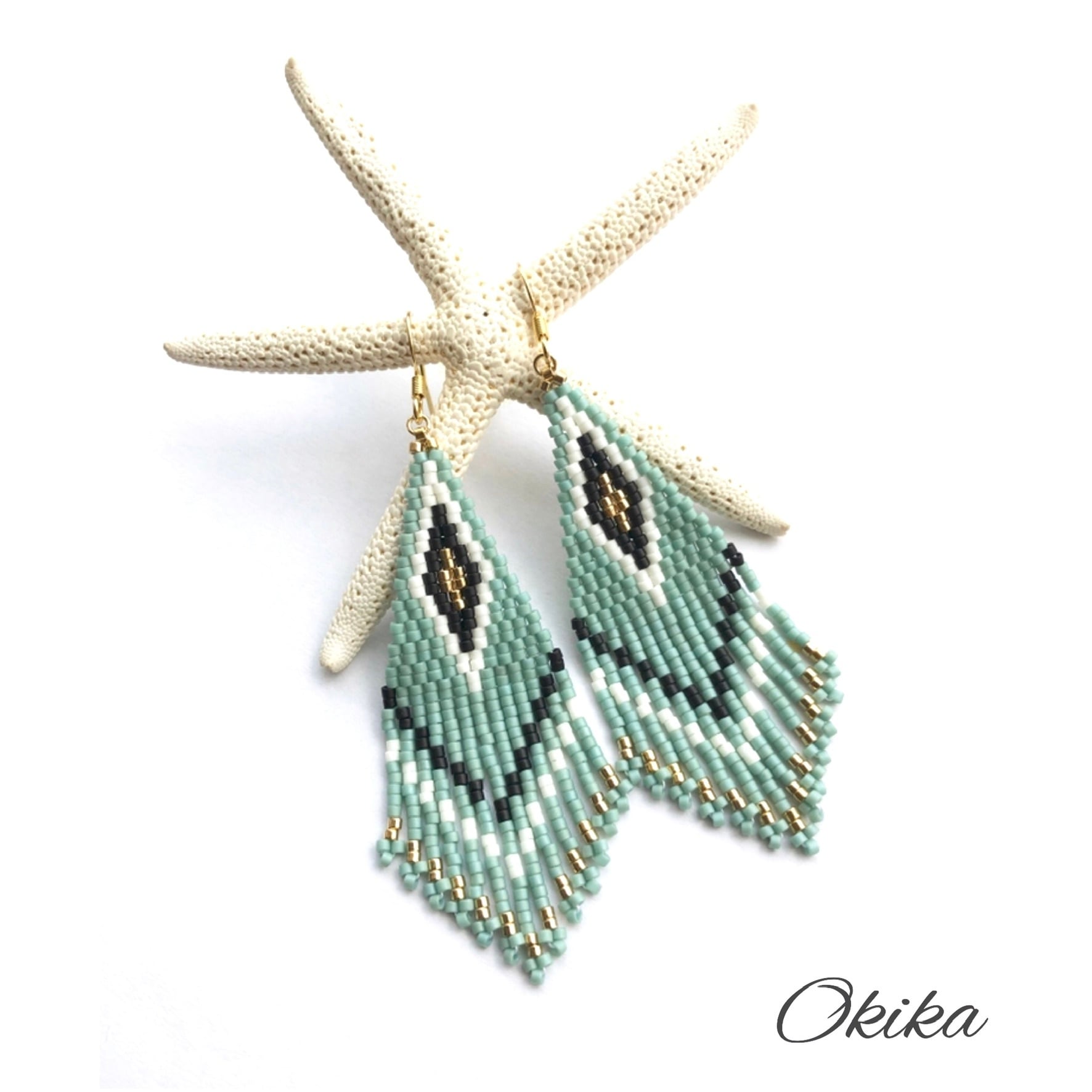 フリンジ ピアス/イヤリング【Turquoise/Black】