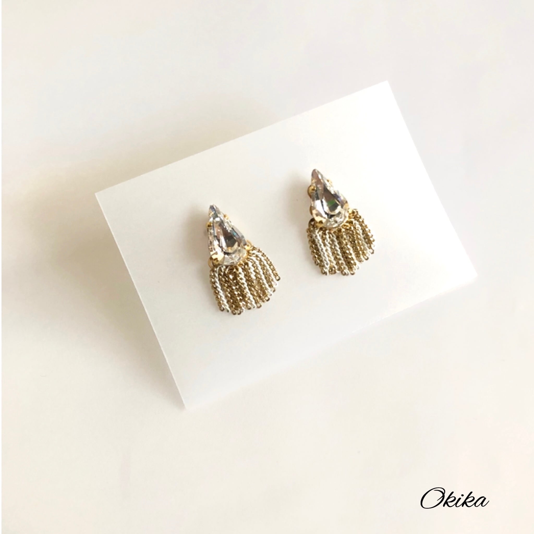 最高級の輝きを誇る大粒のスワロフスキー クリスタルに、日本製の良質なチェーンのフリンジを組み合わせました。