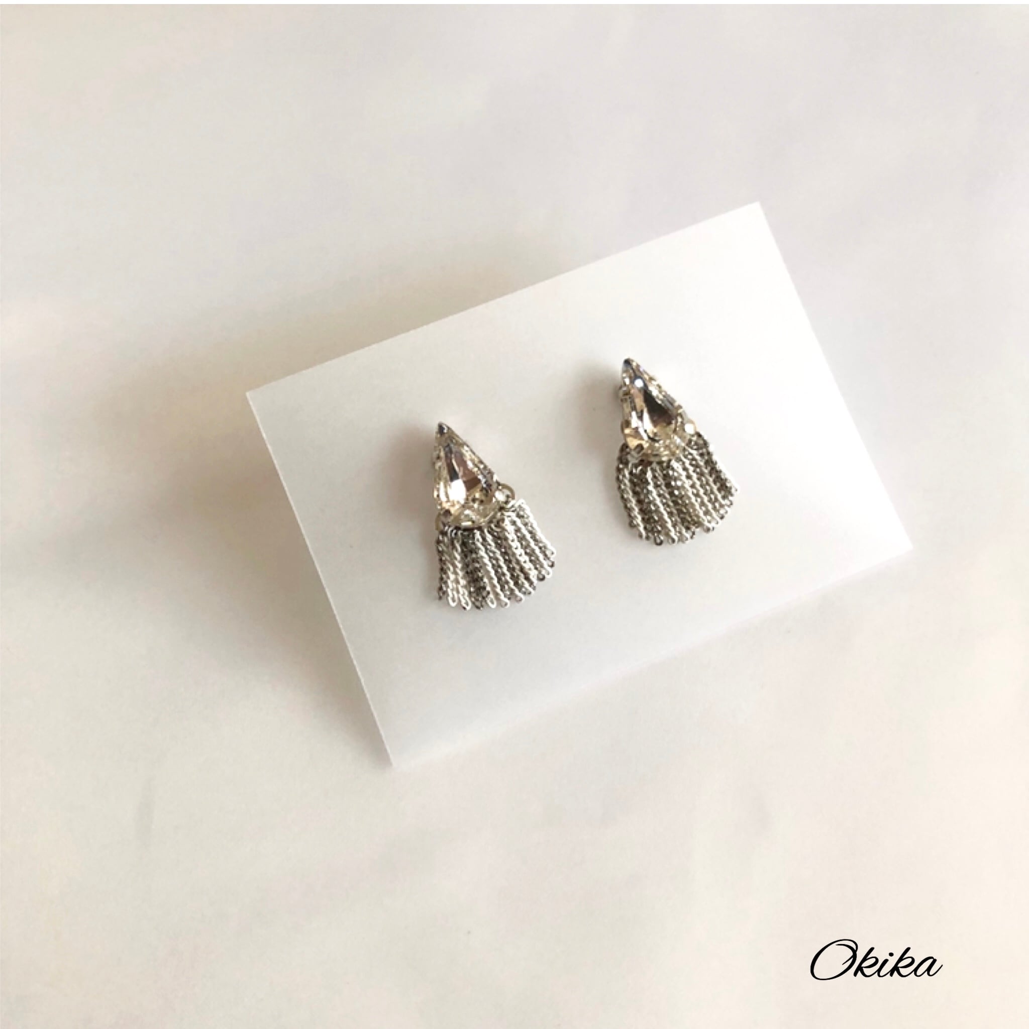 最高級の輝きを誇る大粒のスワロフスキー クリスタルに、日本製の良質なチェーンのフリンジを組み合わせました。