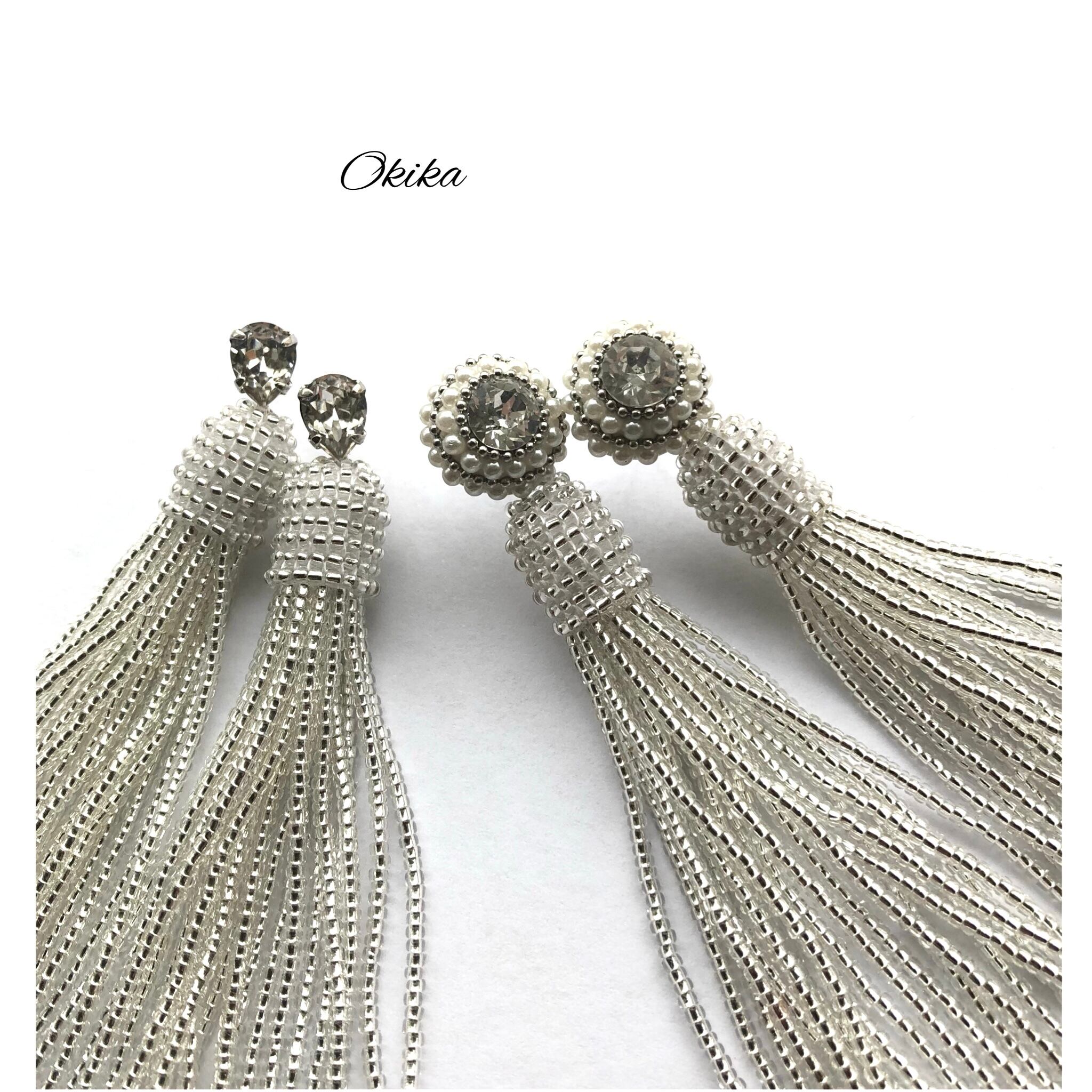 Crystal×Beads tassel ピアス/イヤリング【シルバークリスタル】