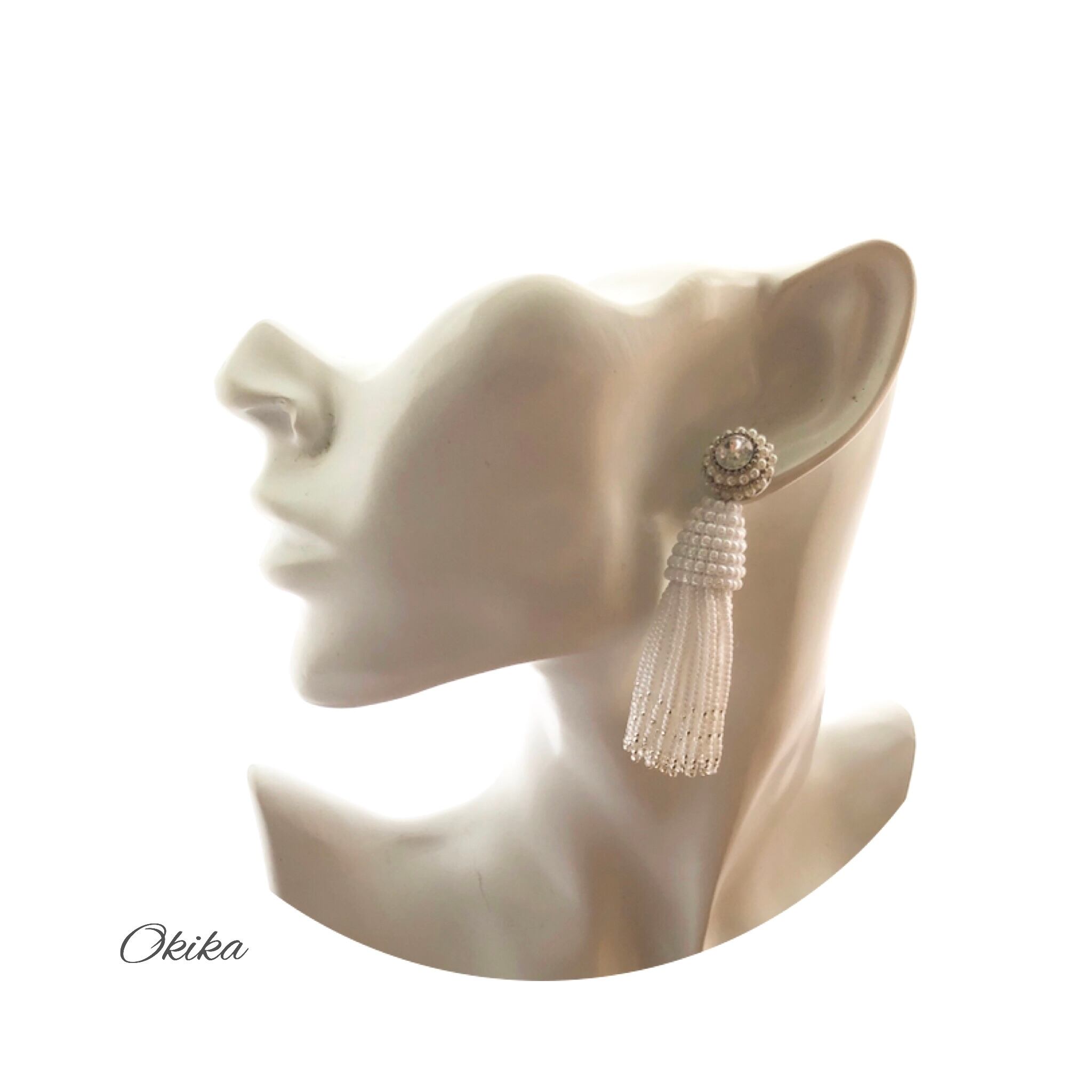 【NEW】Crystal ×Beads tassel ピアス/イヤリング