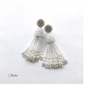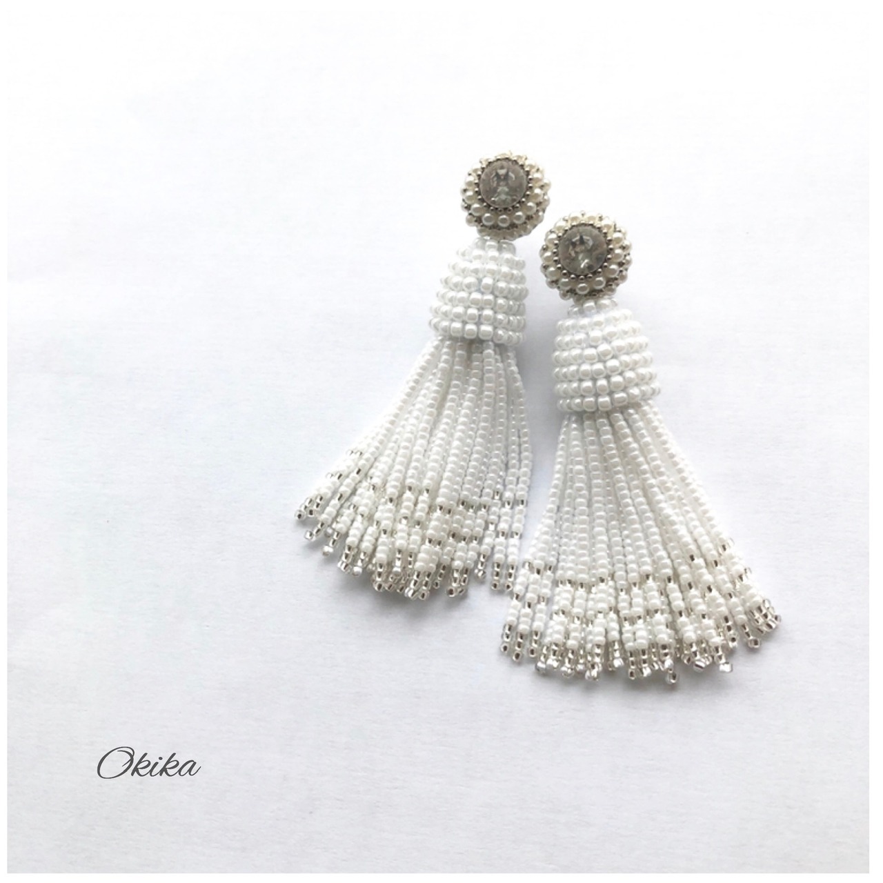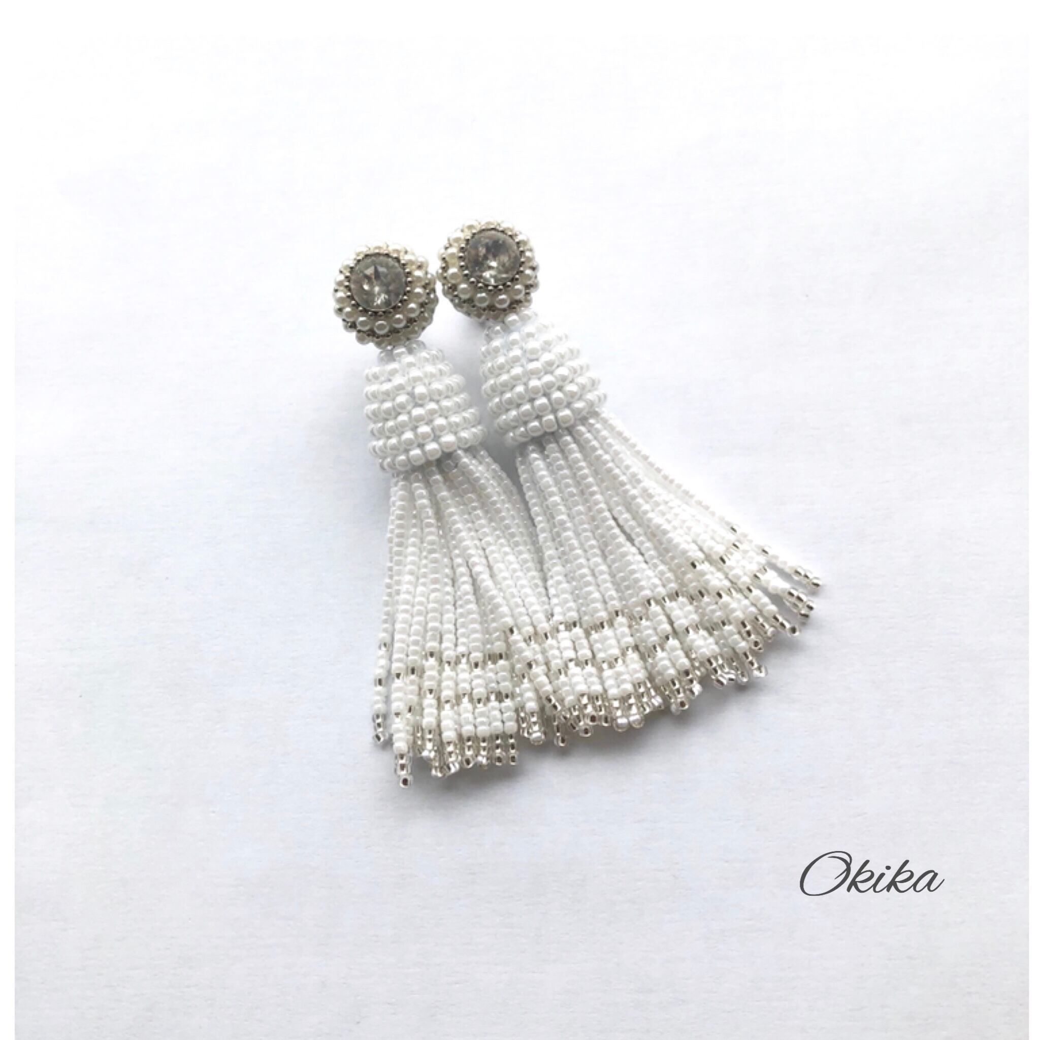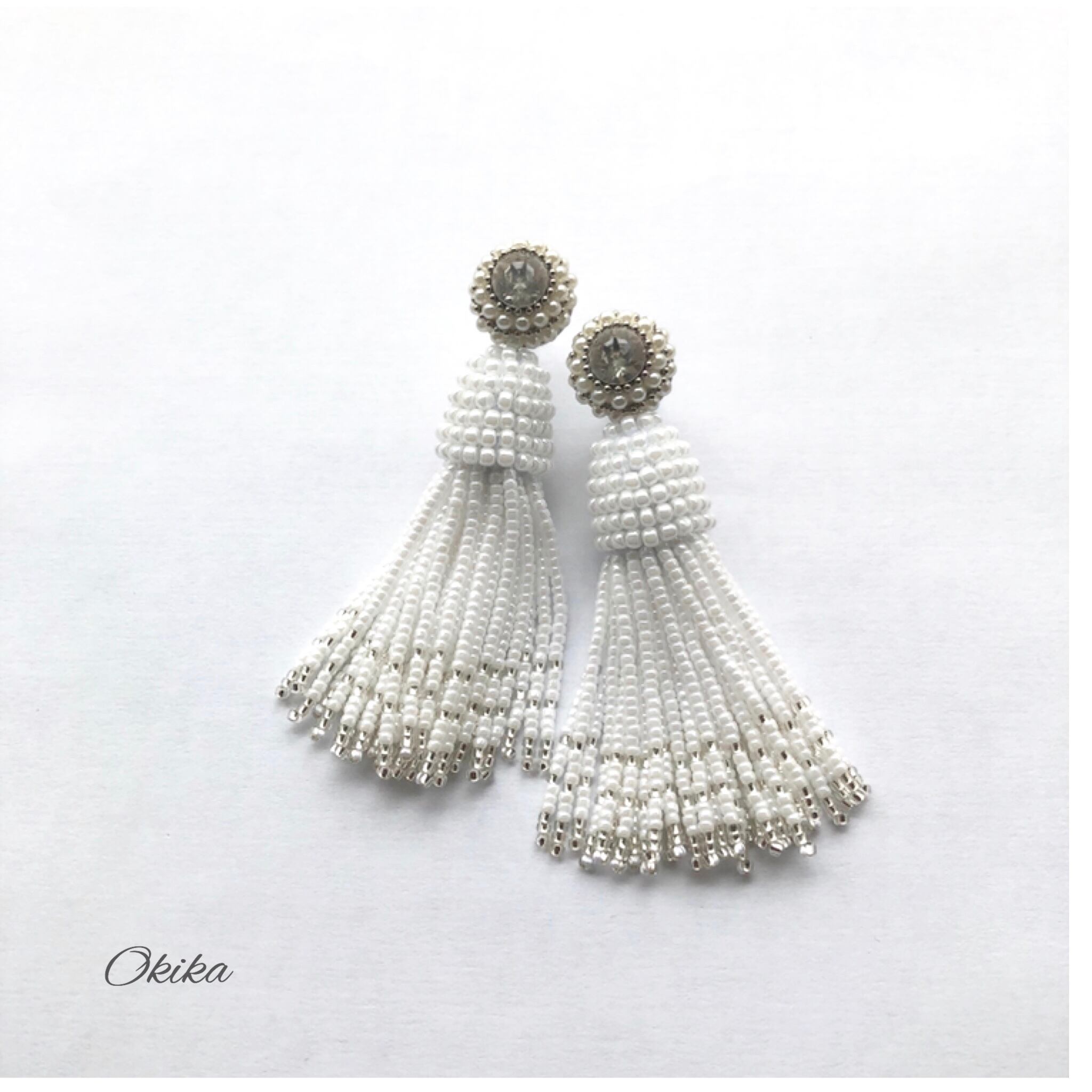 タッセルの上部は一粒一粒手作業でビーズを編み込んでおります。微妙な力加減が必要でとても時間のかかる技法ですが、どの角度から見てもビーズが均一に揃っていてキレイです!