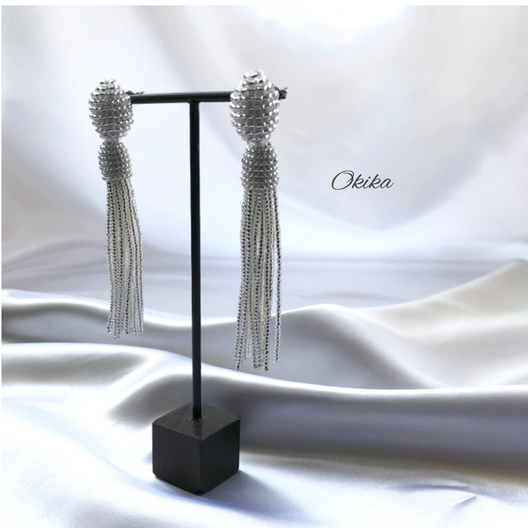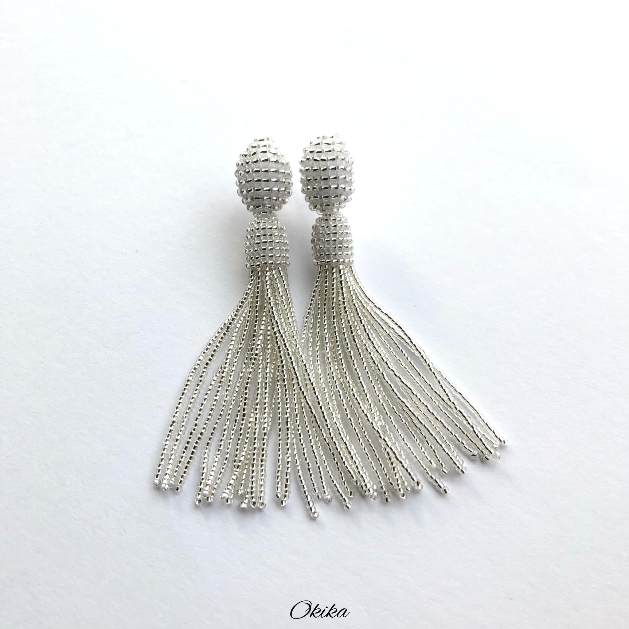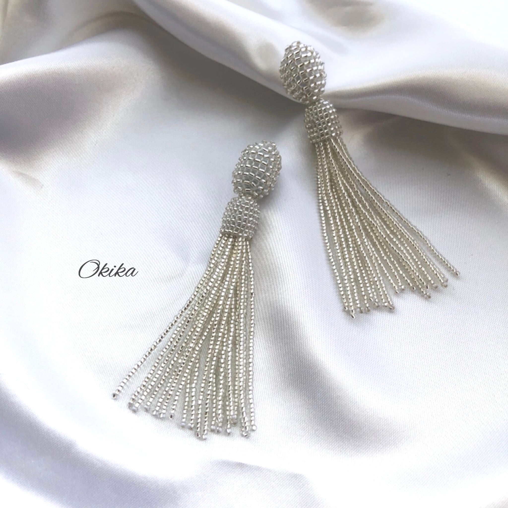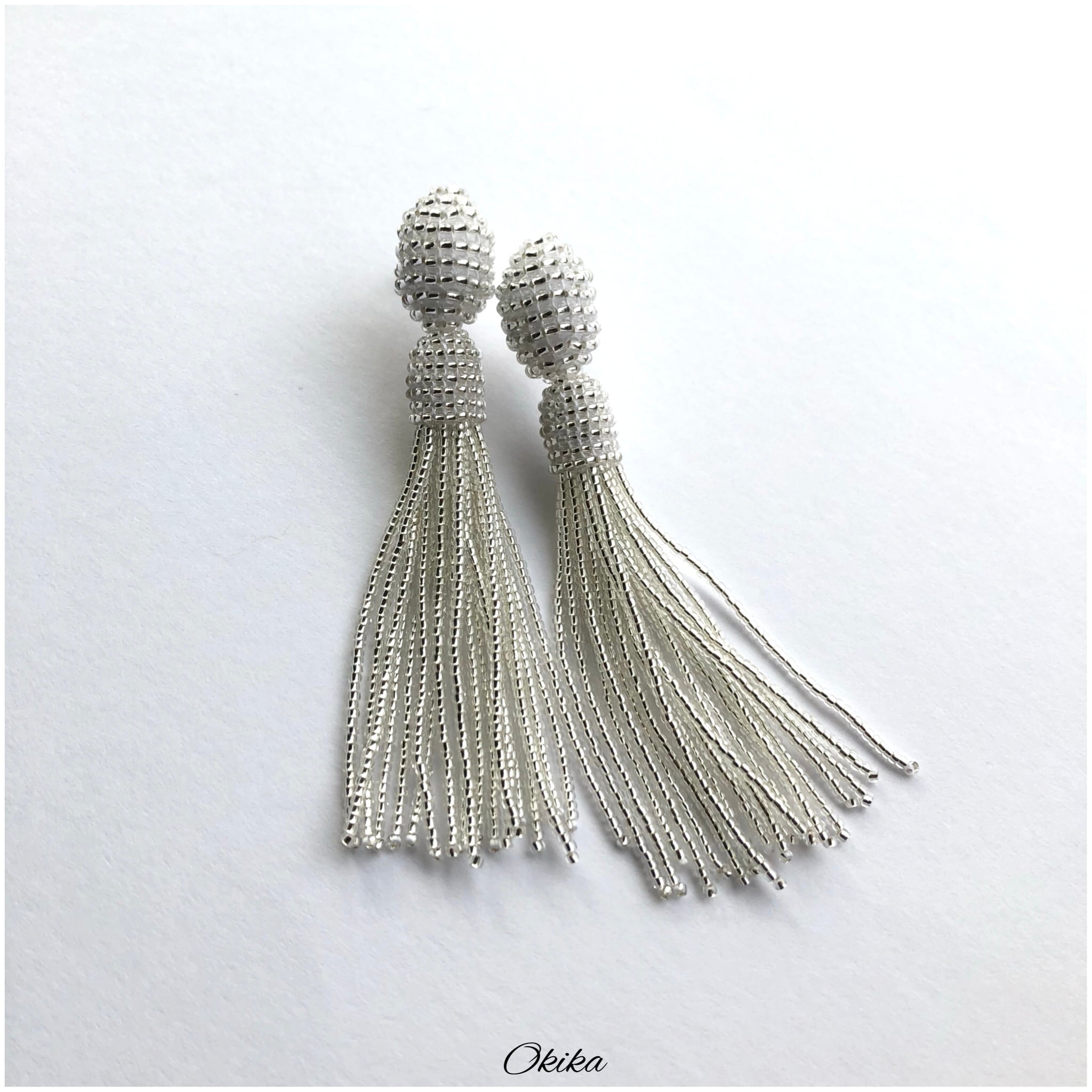 ビーズタッセルピアスは、真っ直ぐにして保管をお願い致します。保管状態が悪いと曲がったり・うねり等の癖がついてしまいます。
