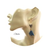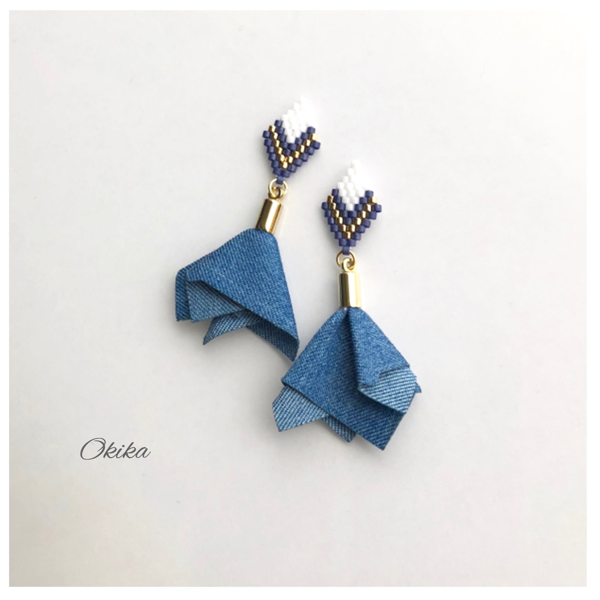 ビーズ×デニム地のタッセルピアス/イヤリング