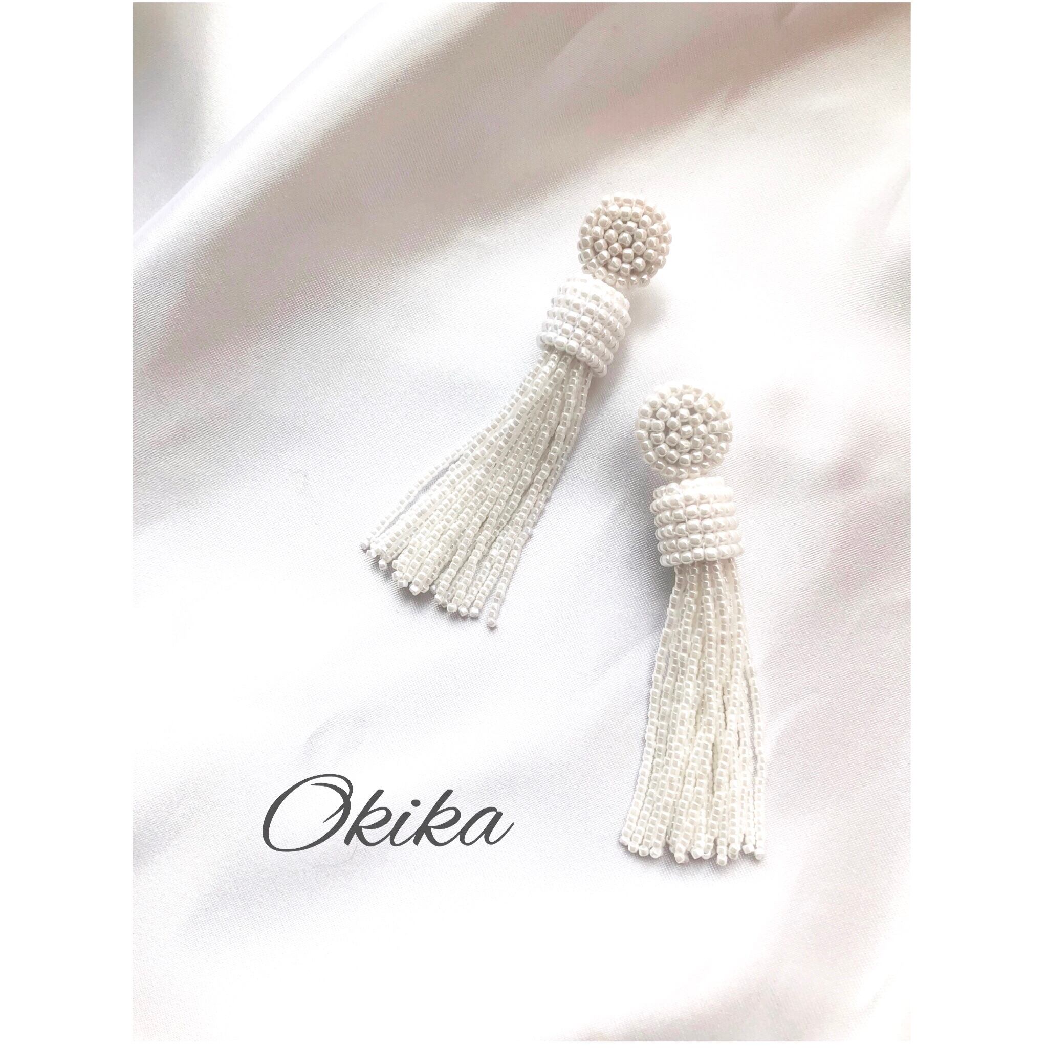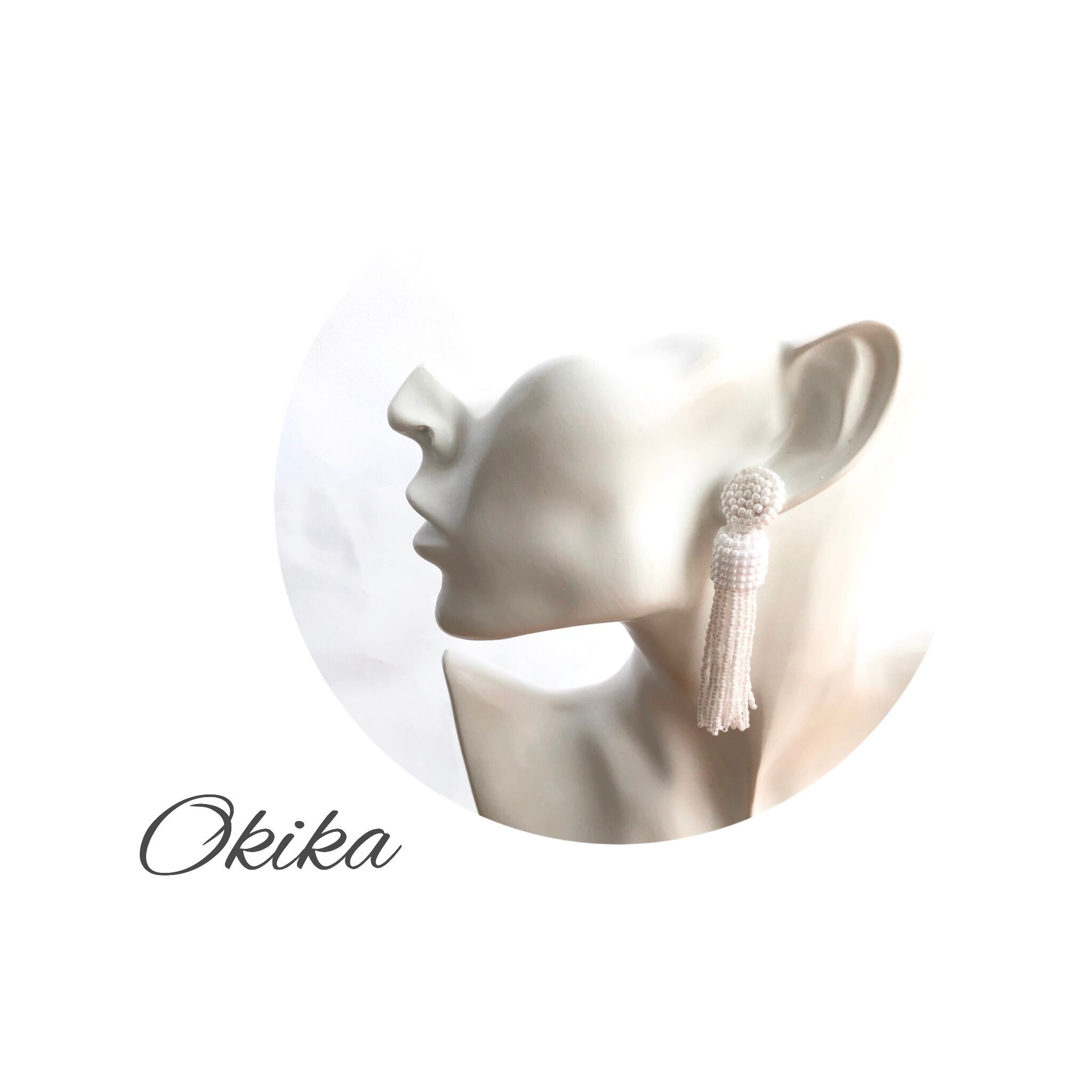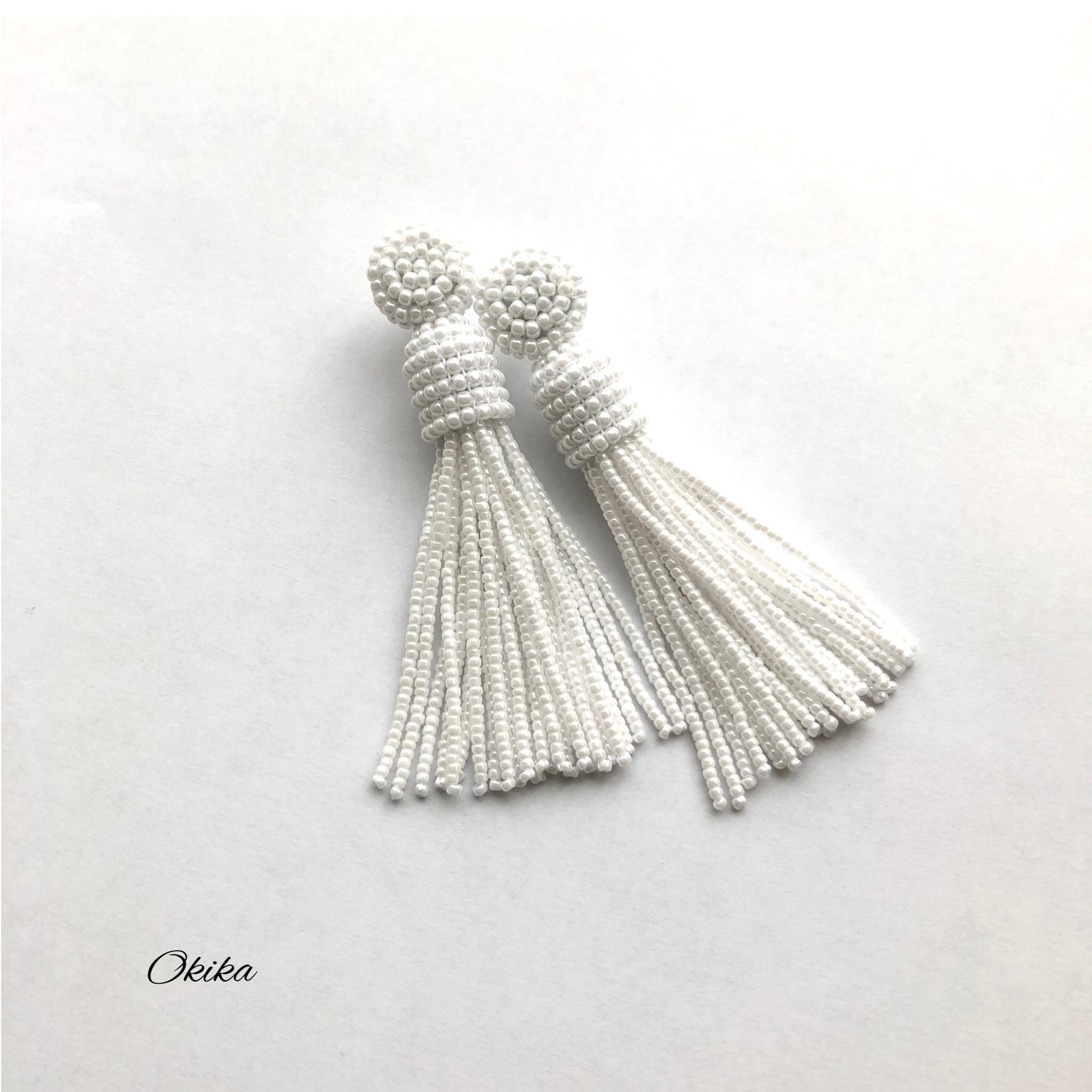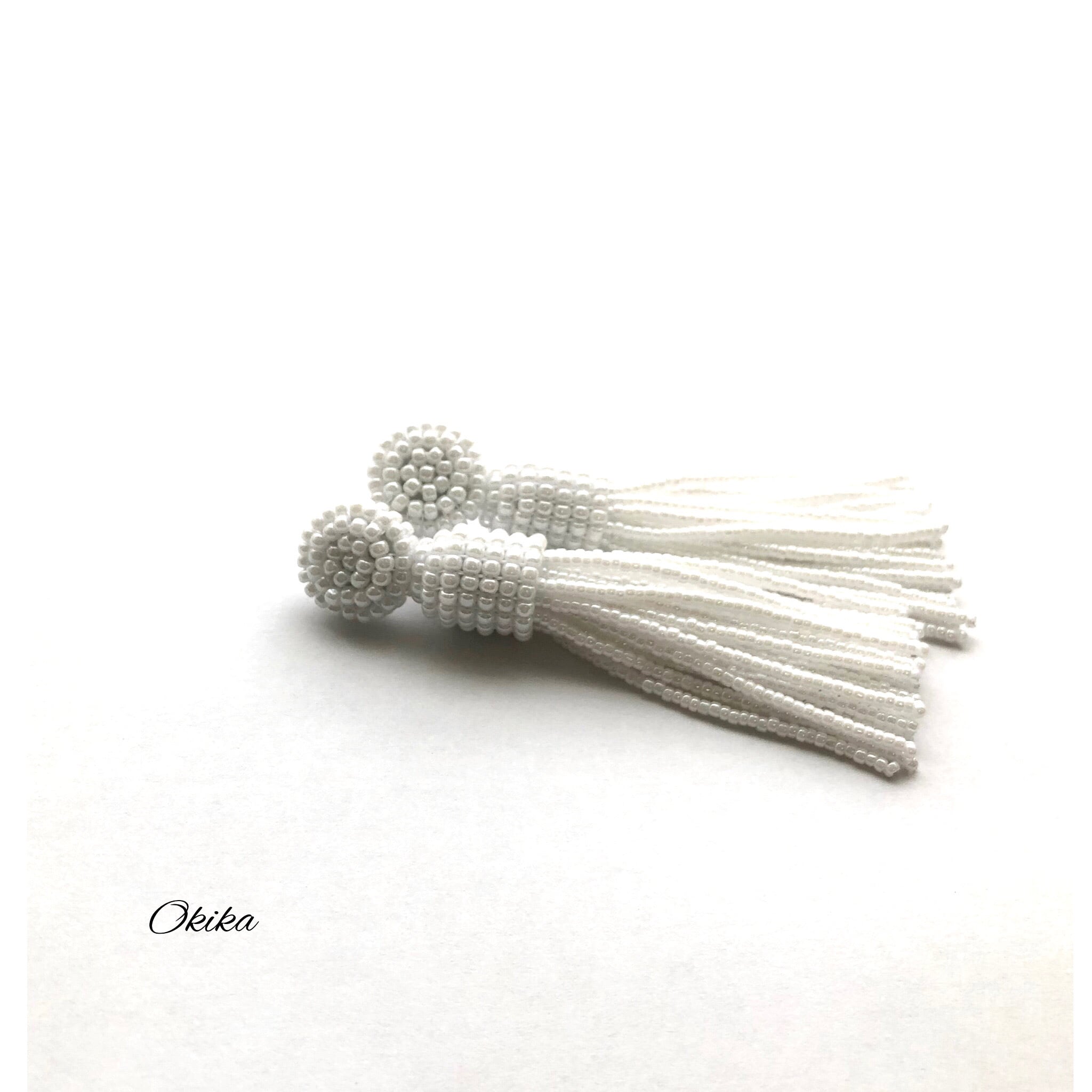ハンドメイドならではの繊細なビーズ タッセルピアスです。