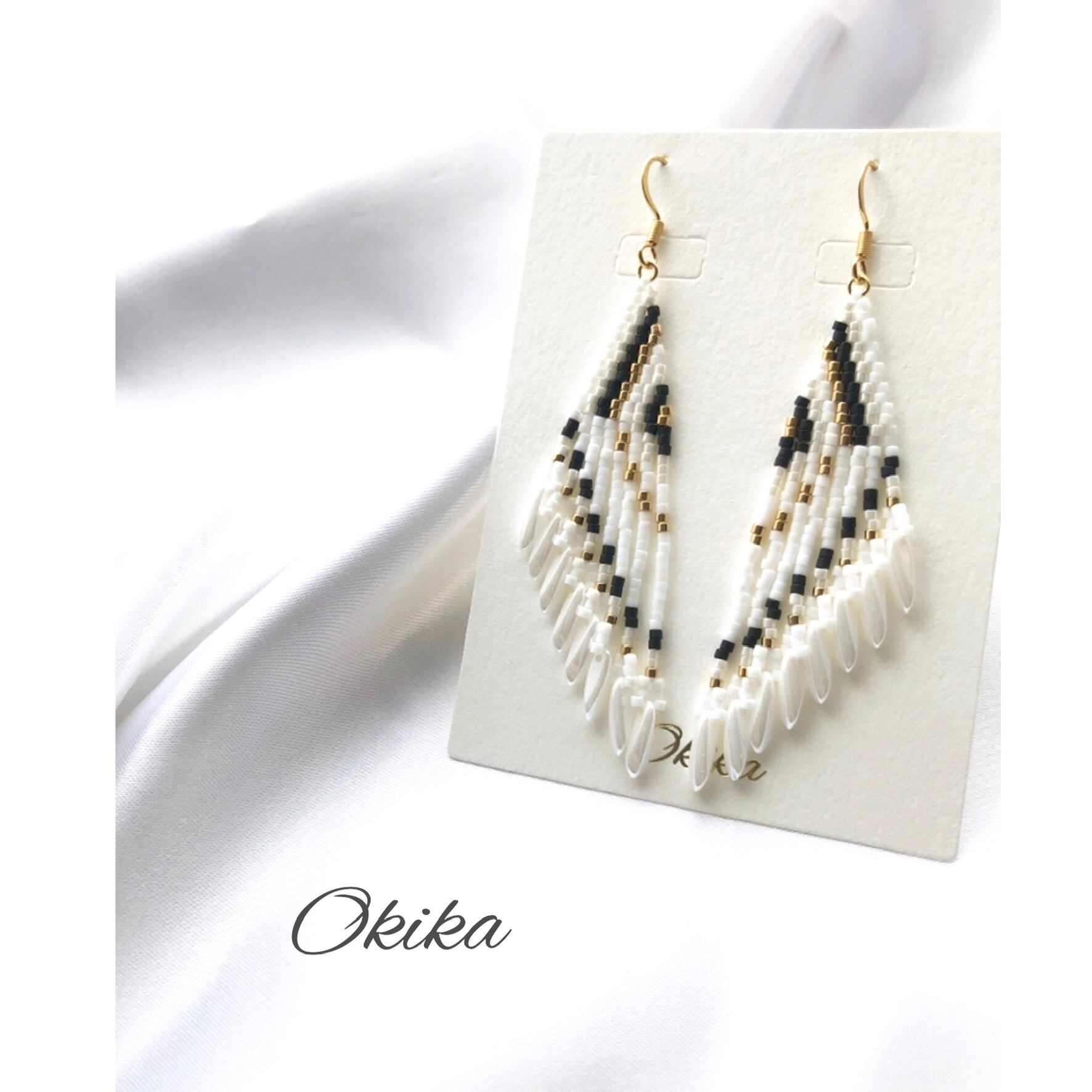 フェザー×チェコビーズ ピアス/イヤリング【White× Black】