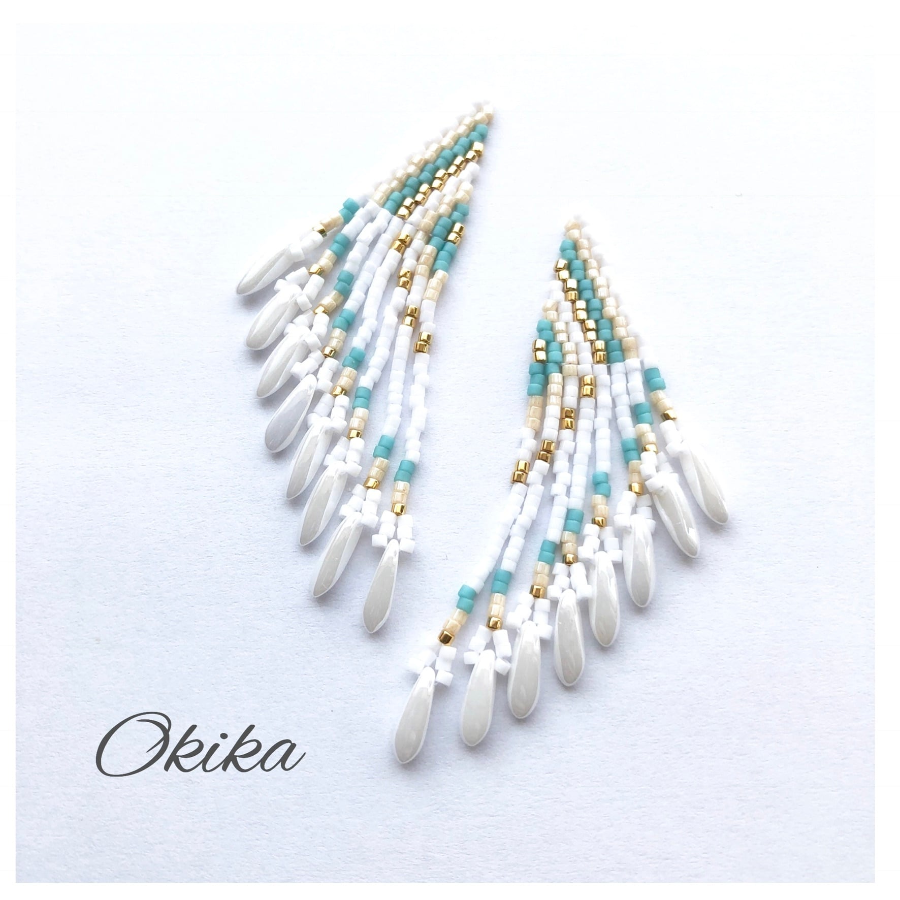 フェザー×チェコビーズ ピアス/イヤリング【Turquoise Beige】