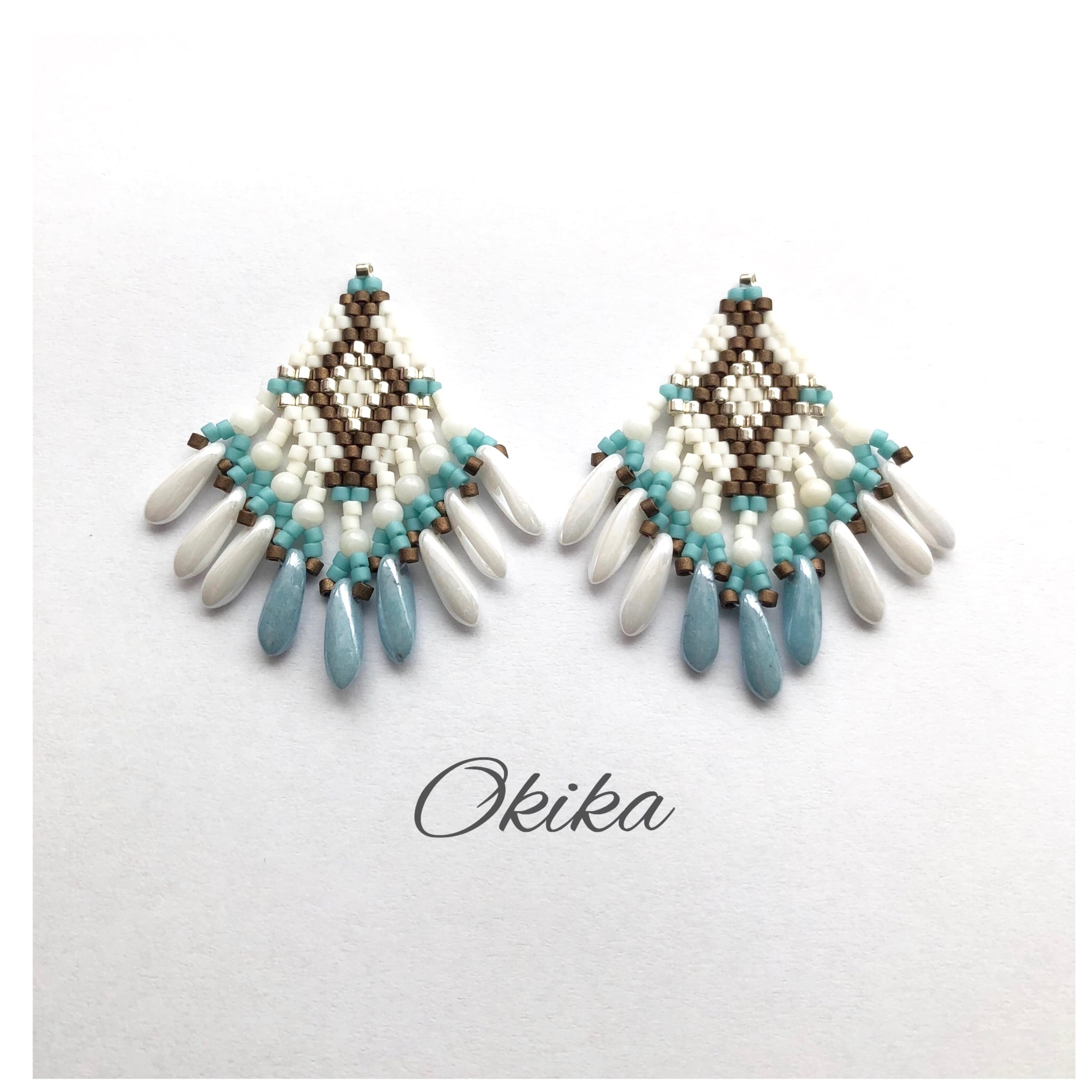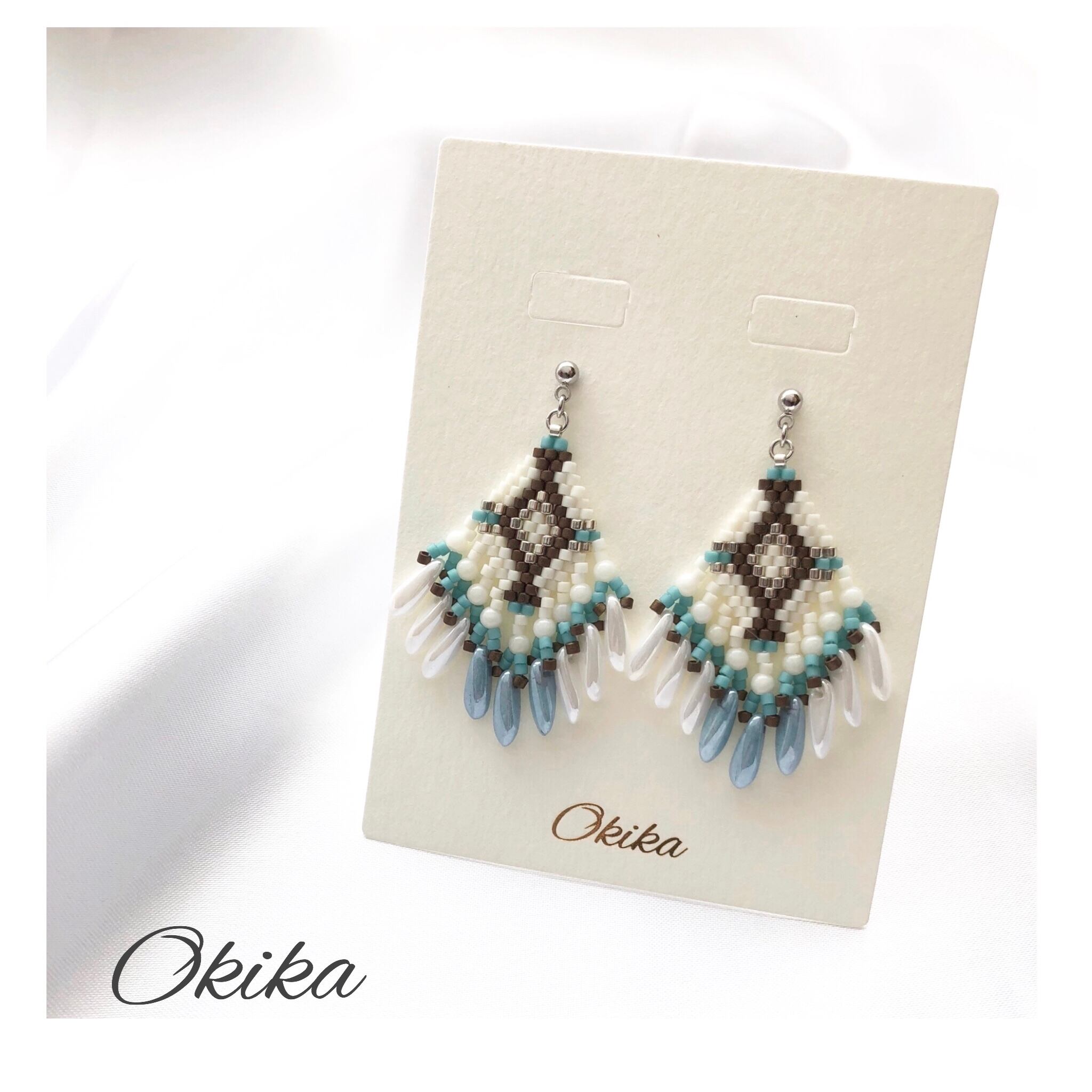 チェコビーズ ピアス/イヤリング【Turquoise × brown】