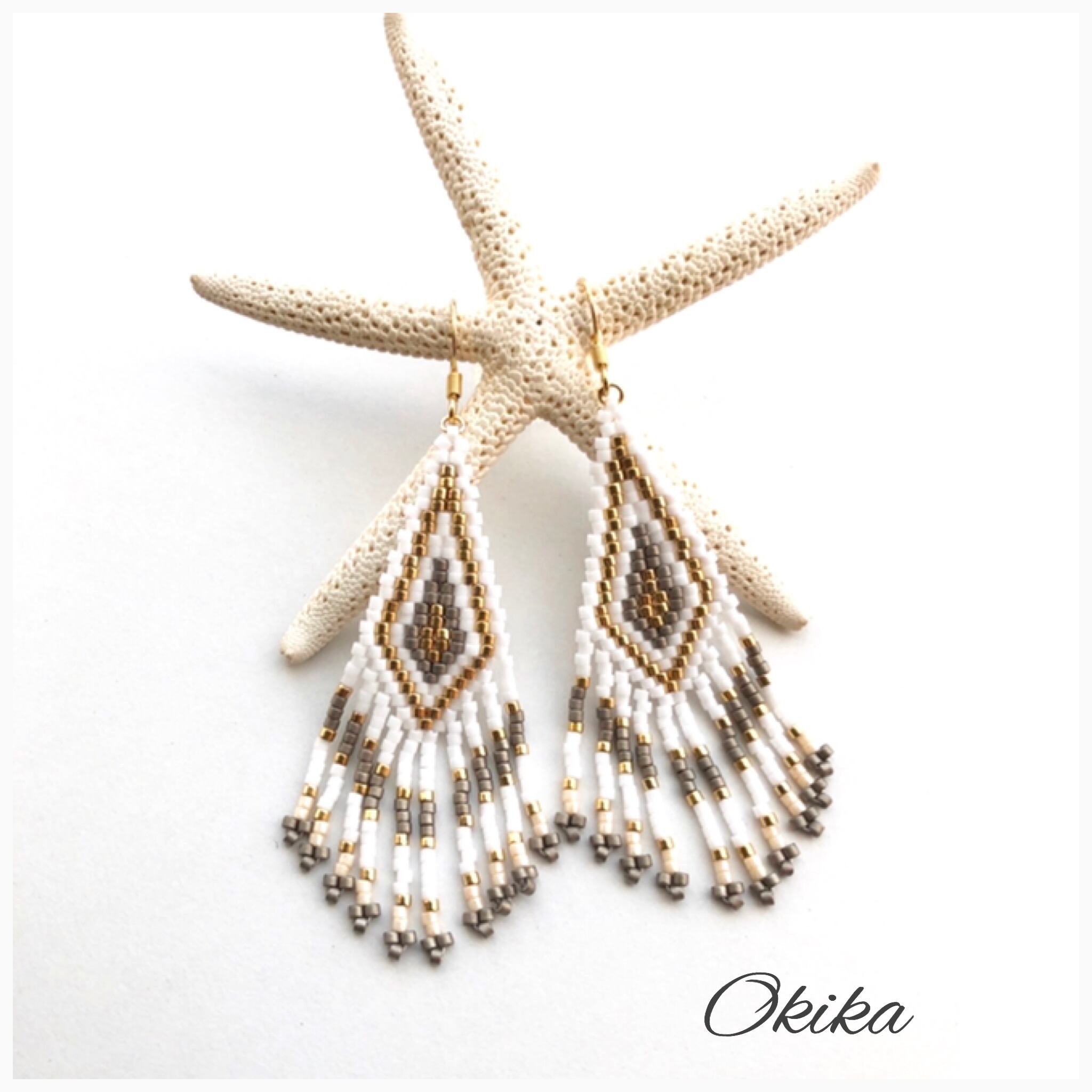 ネイティブ ピアス/イヤリング【White× Gureju】
