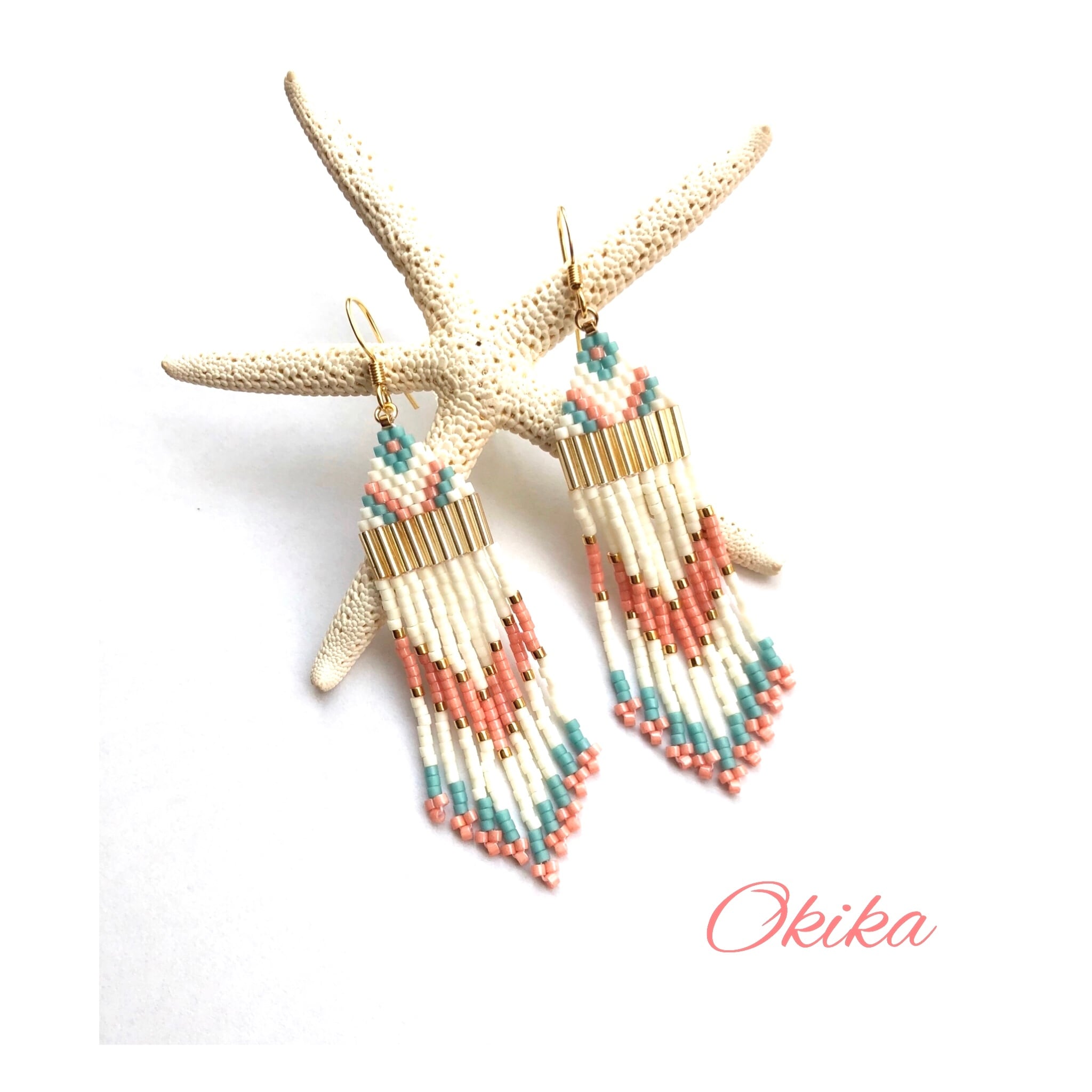 ネイティヴ柄のフリンジ ビーズアクセサリーです。