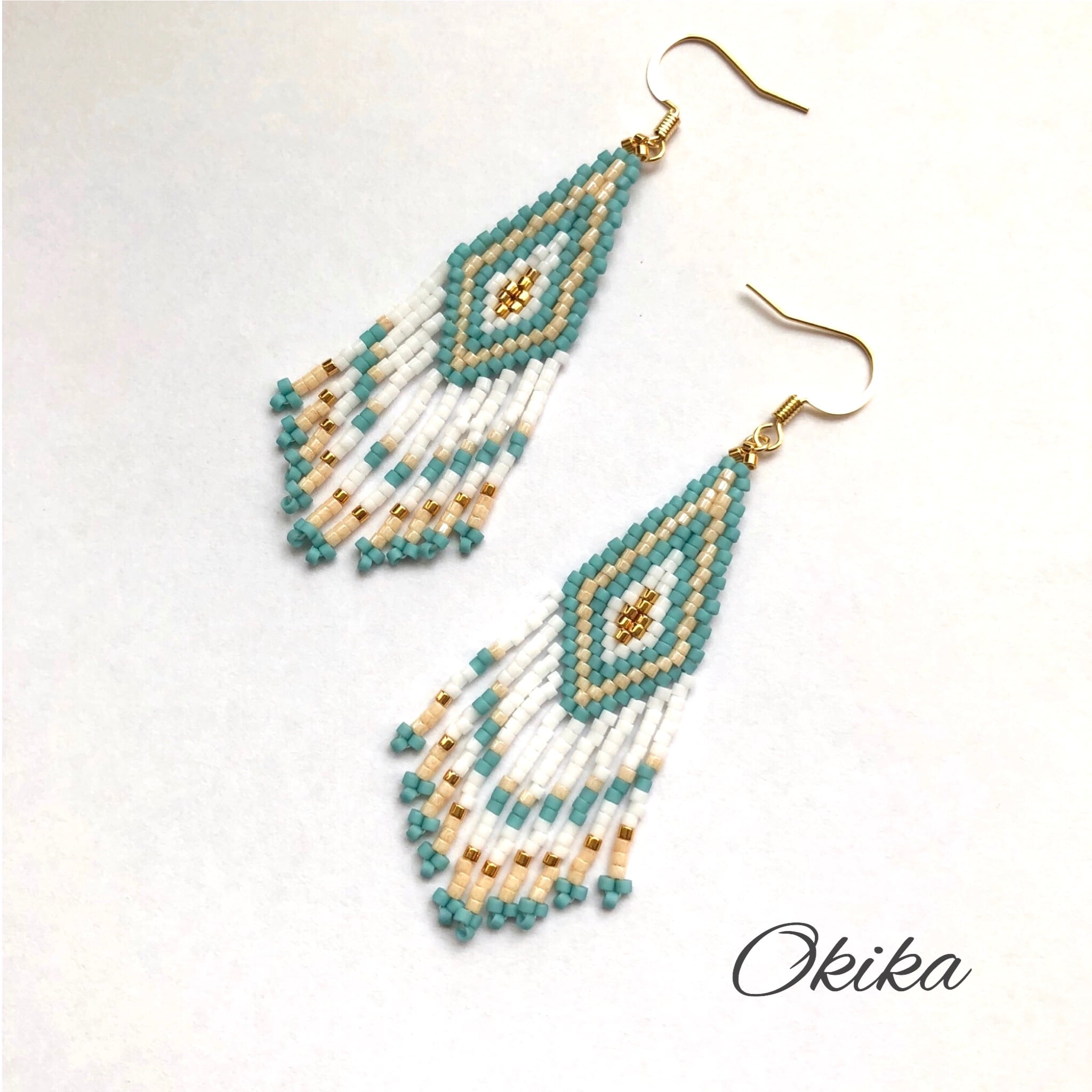 ビーズピアスは、最高級のデリカビーズを使用しています。中でも、ゴールドは本金メッキ加工を施しているビーズなので、上品な輝きがあります。