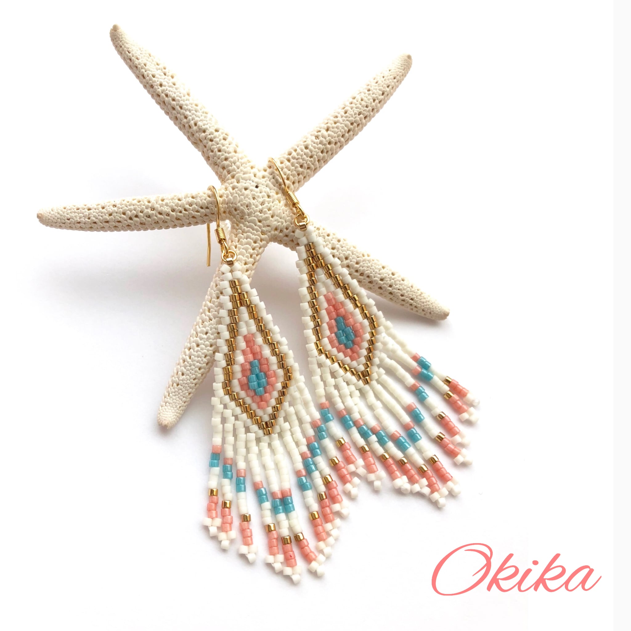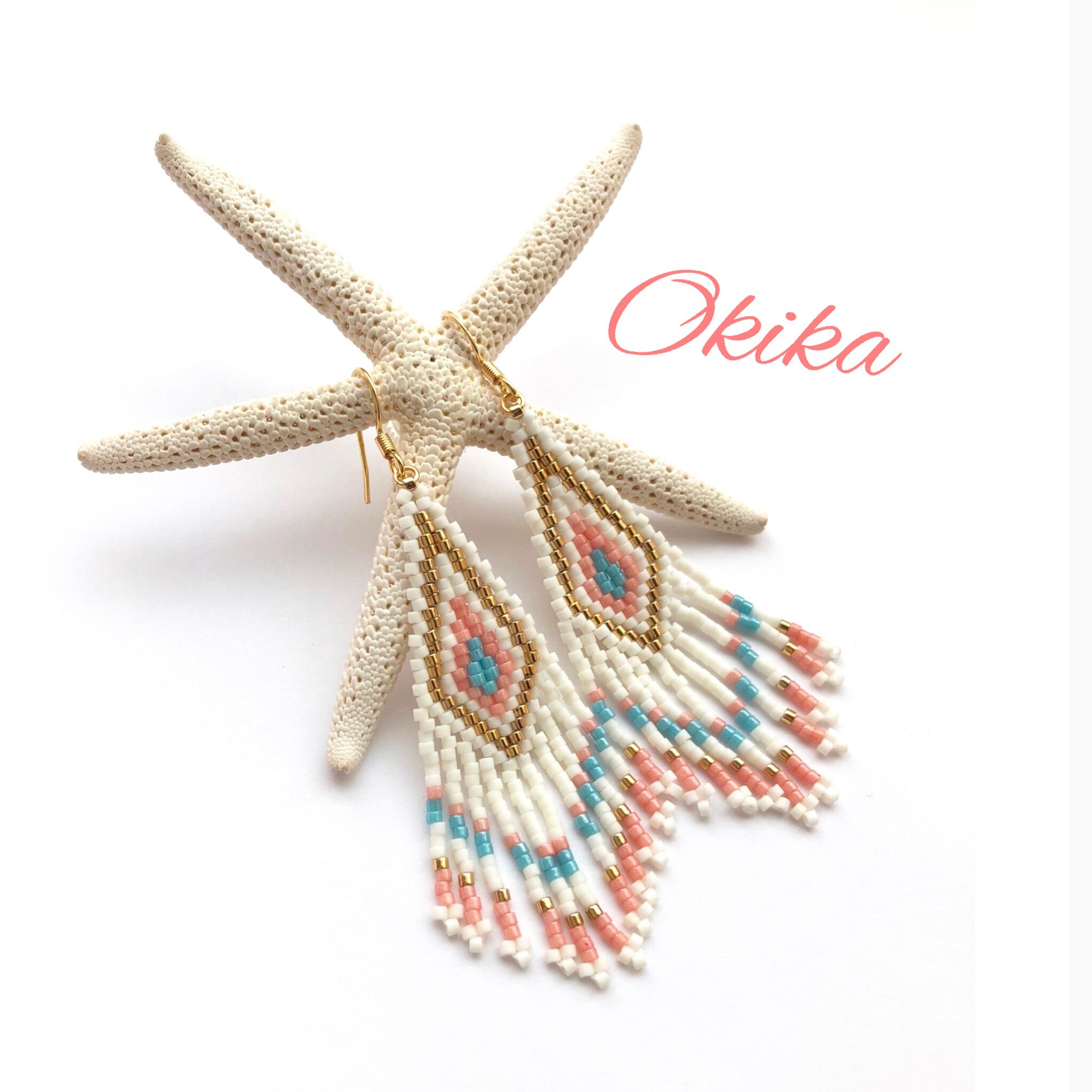 ビーズピアスは、最高級のデリカビーズを使用しています。中でも、ゴールドは本金メッキ加工を施しているビーズなので、上品な輝きがあります。