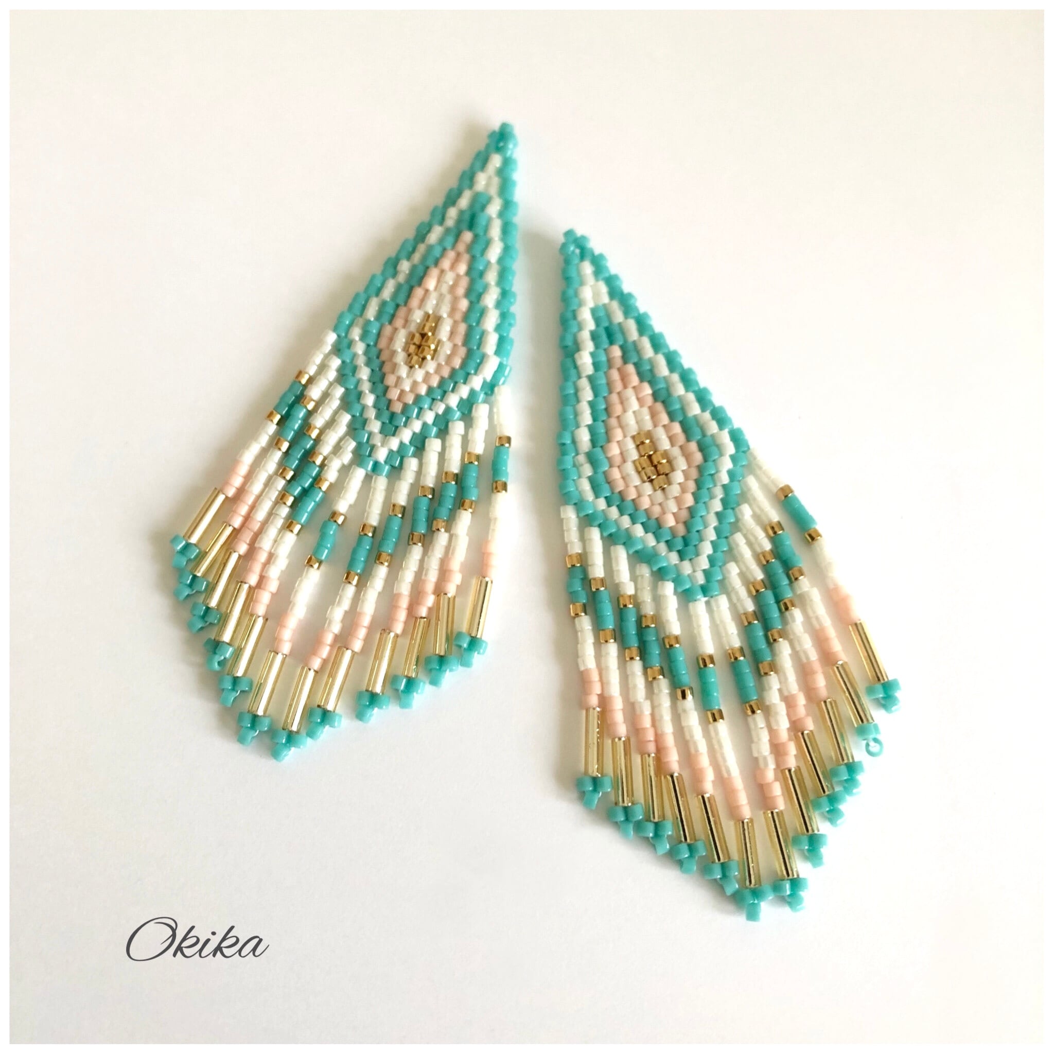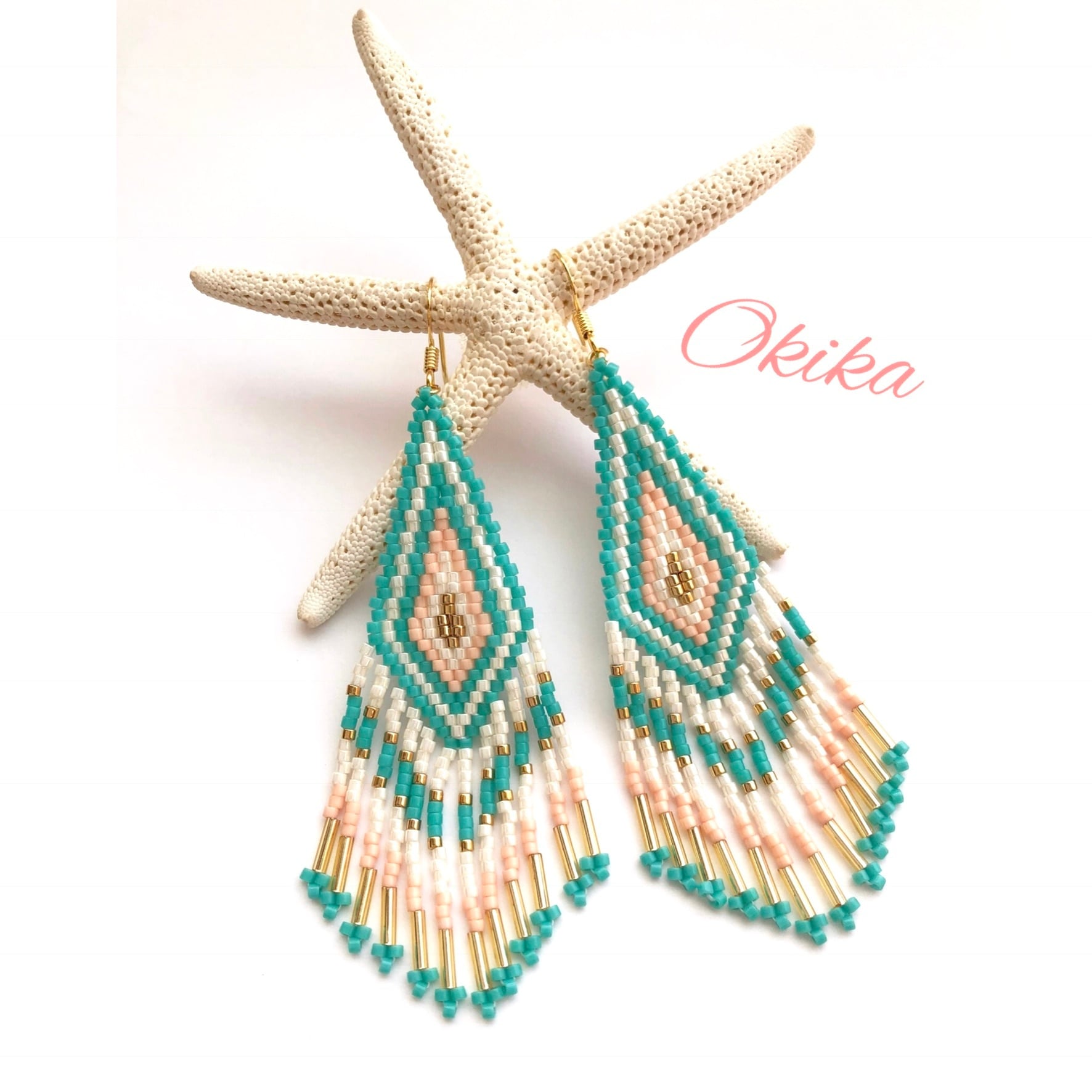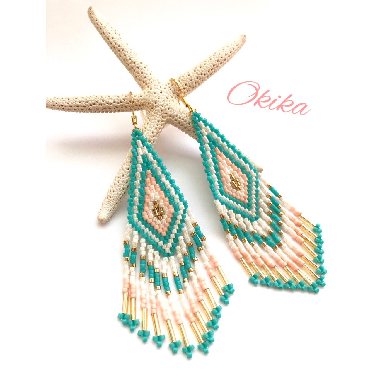 ネイティブ ピアス/イヤリング【Turquoise×pink】