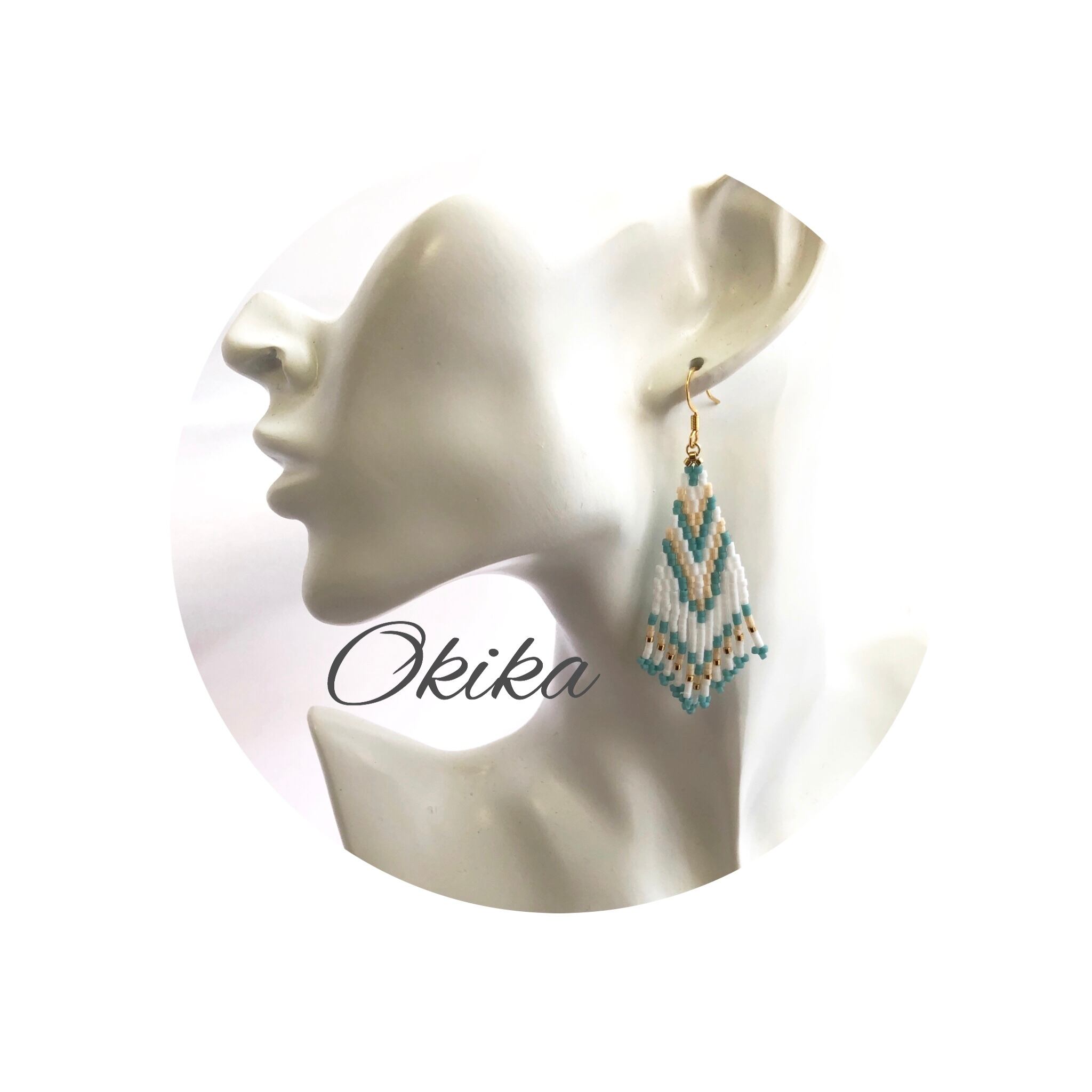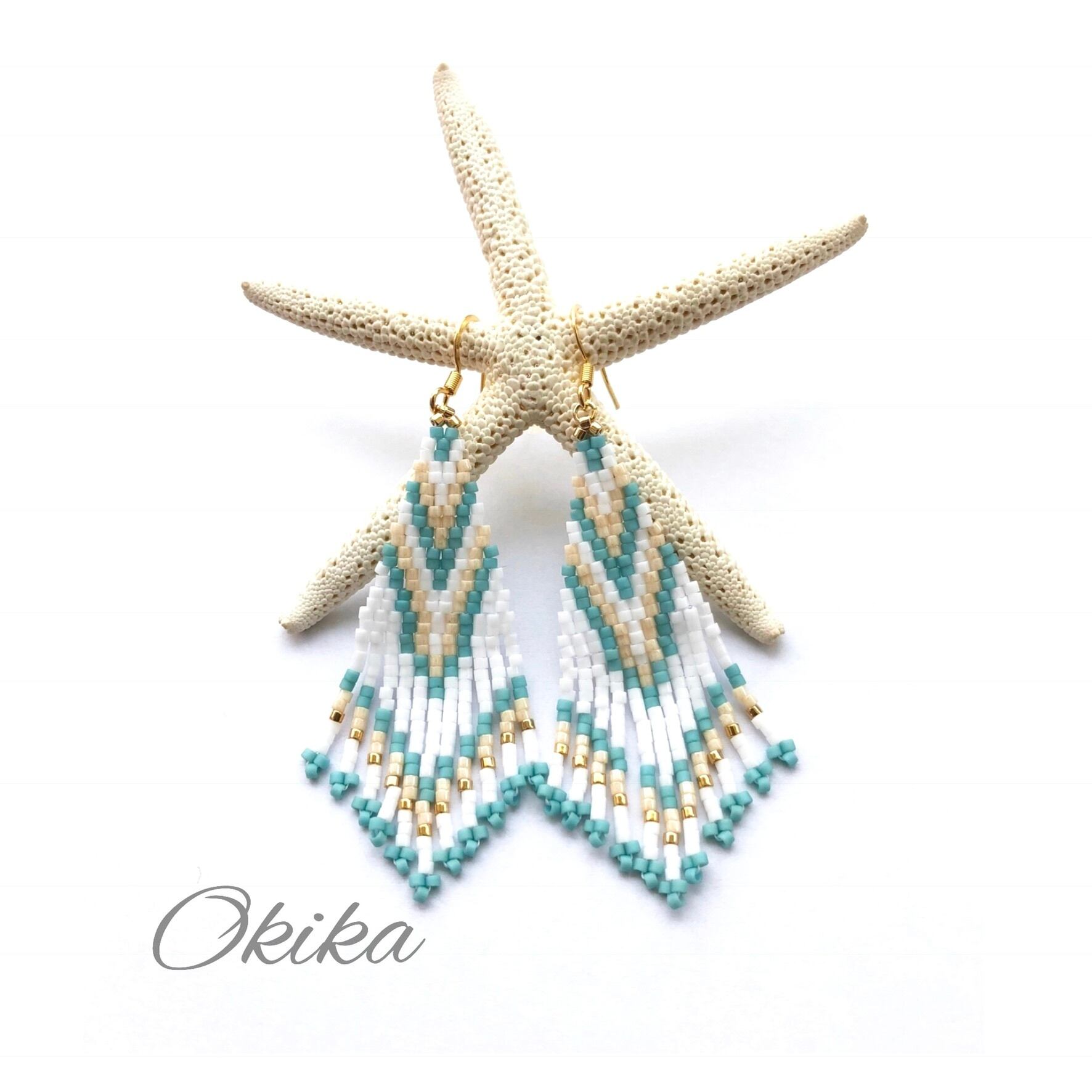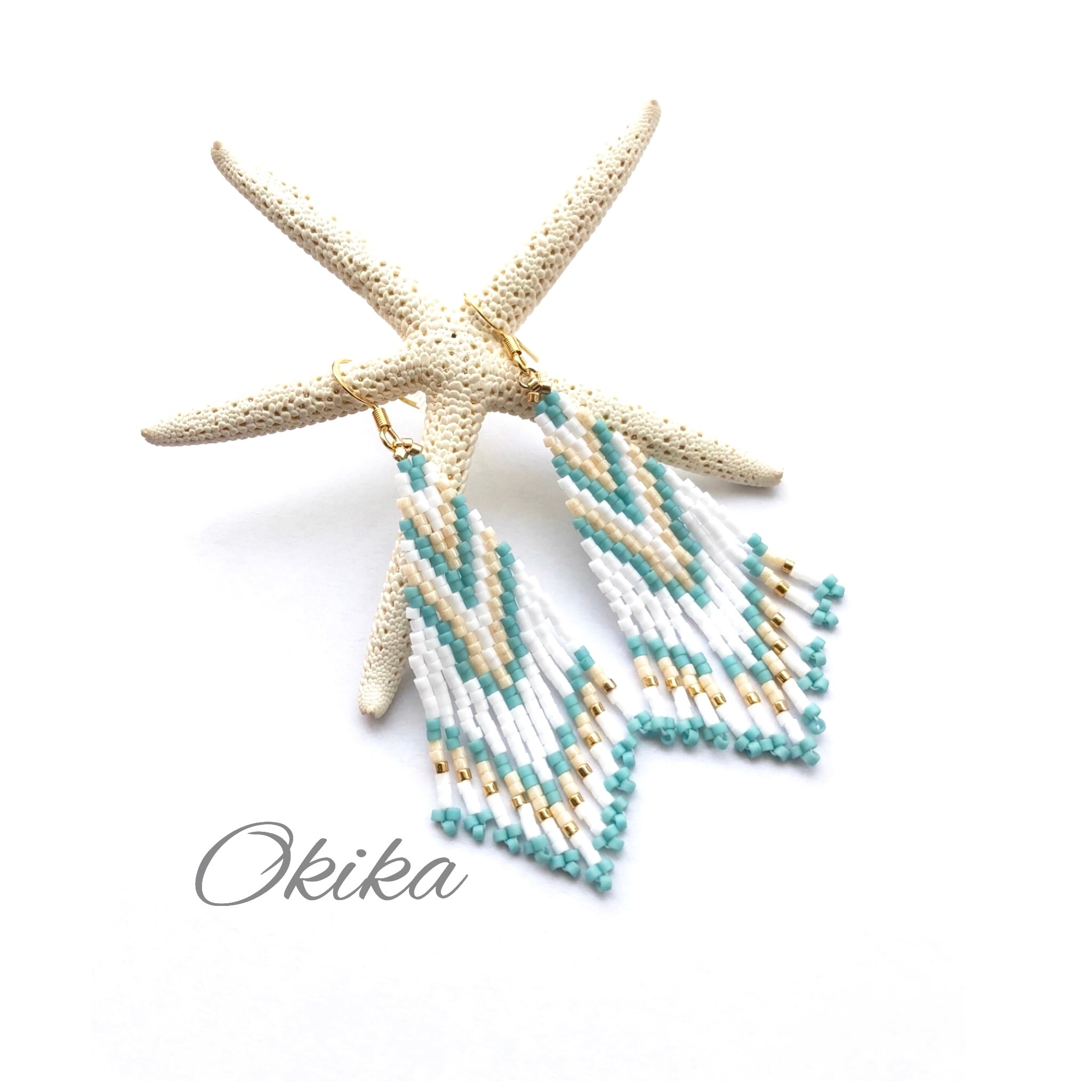 ビーズ フリンジ ピアス/イヤリング【Turquoise ×Beige】