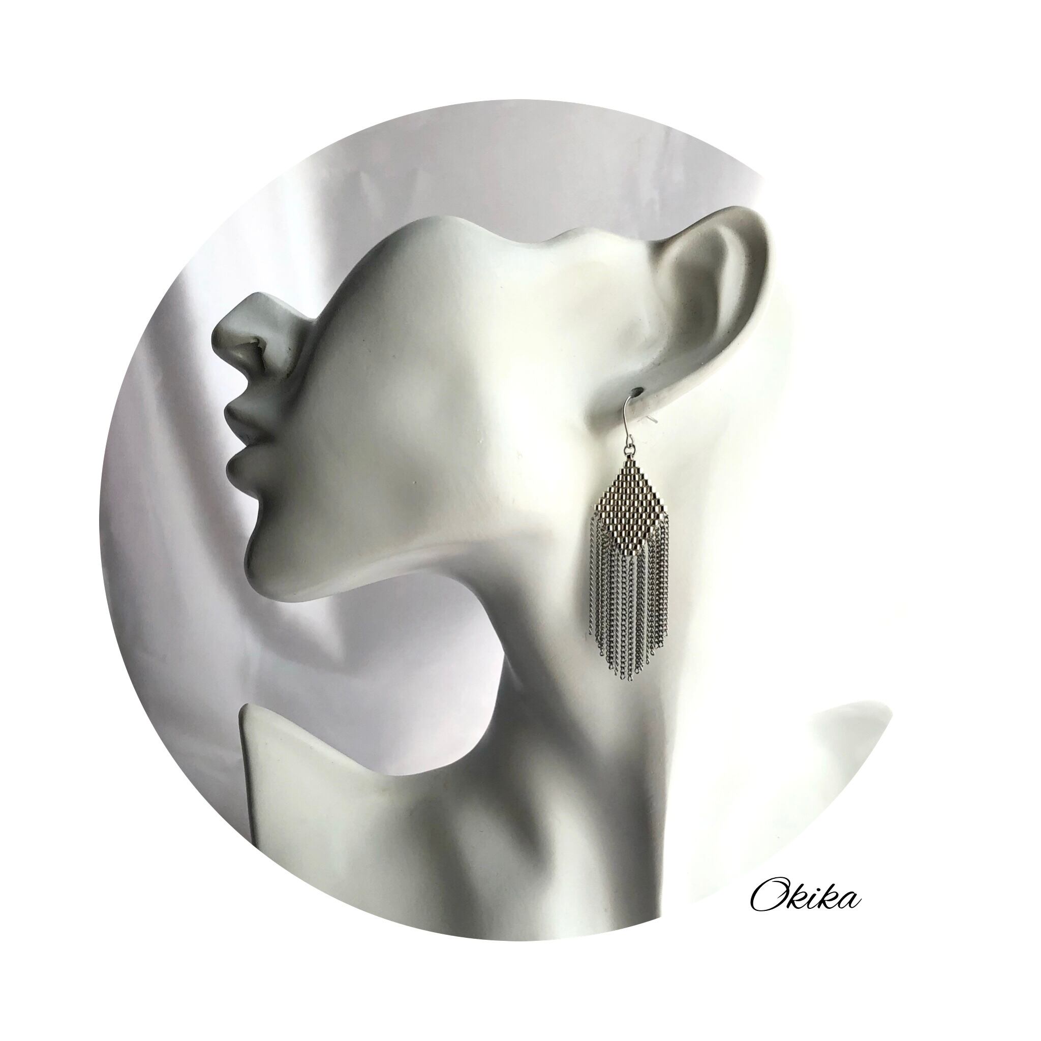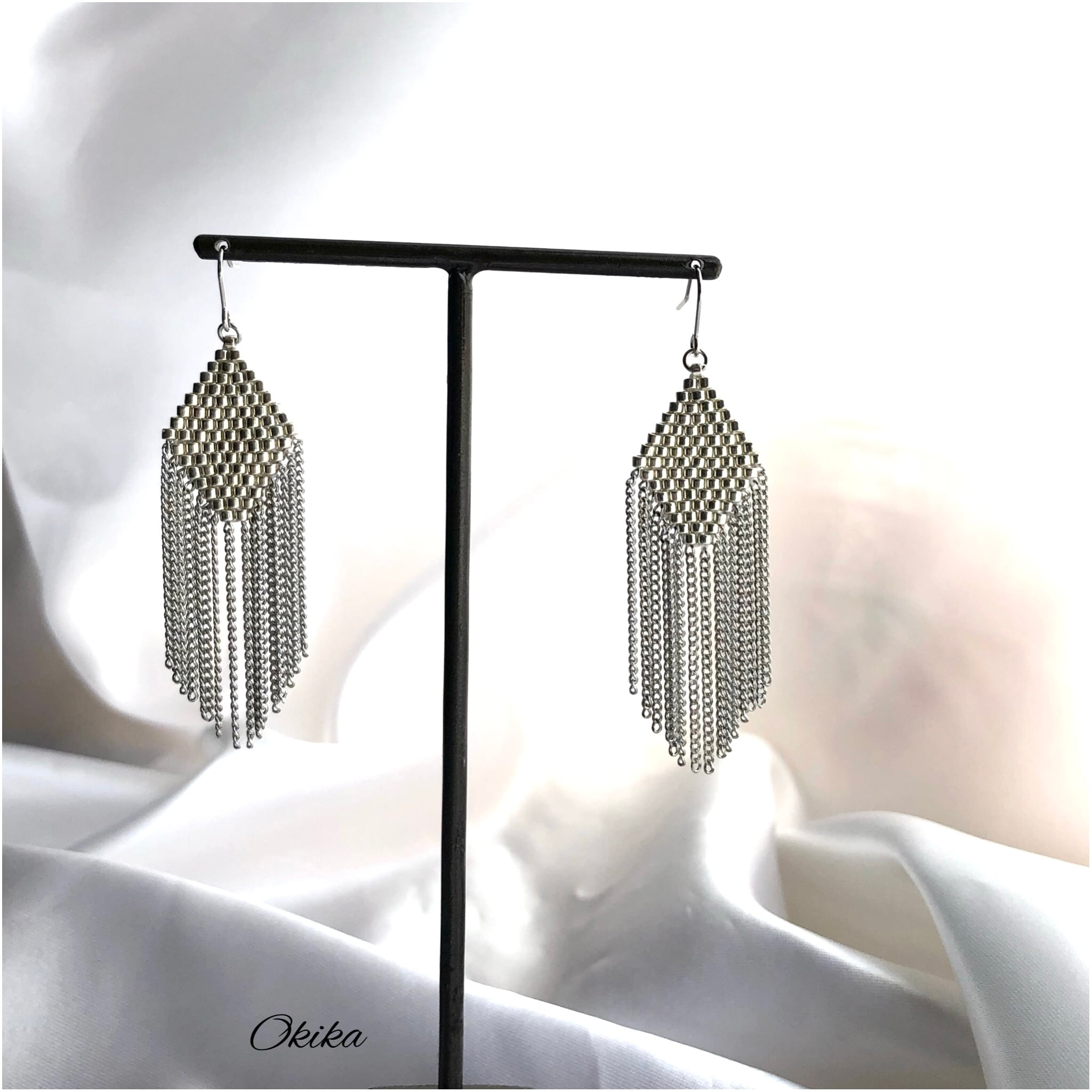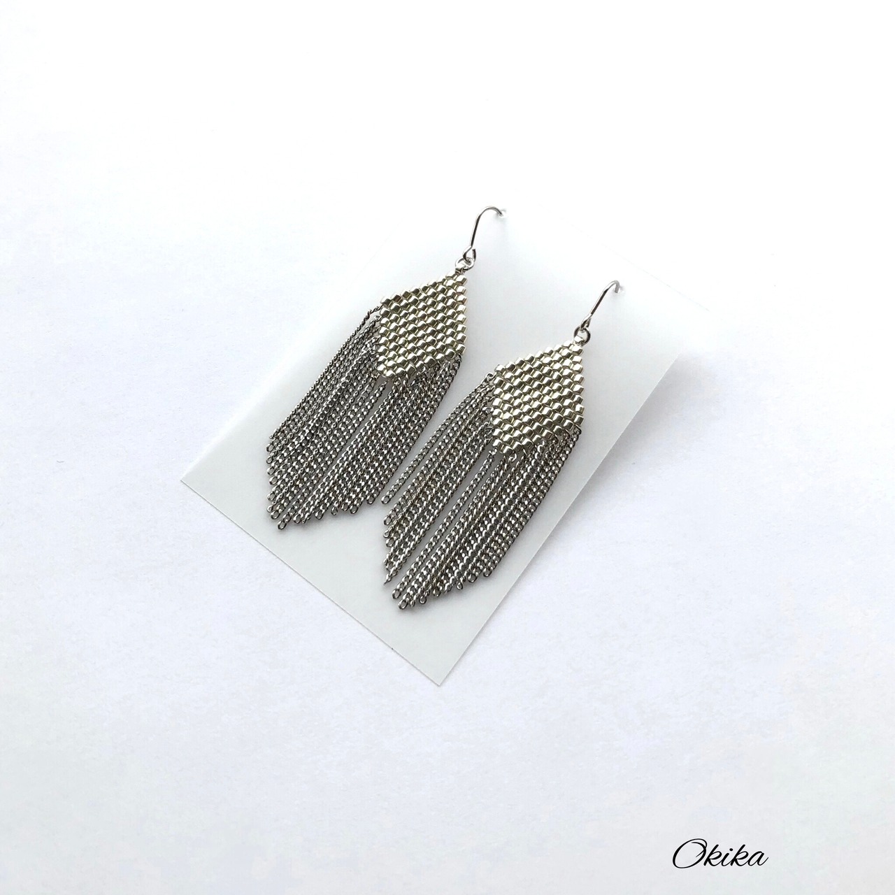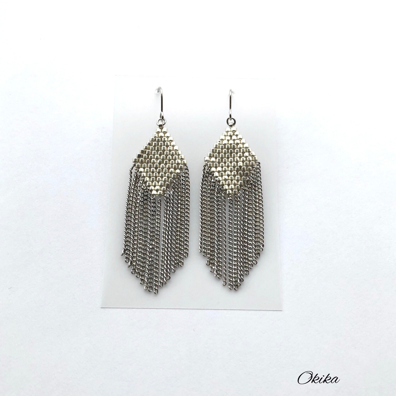 ビーズ×日本製の良質なチェーンをフリンジとして組み合わせました。