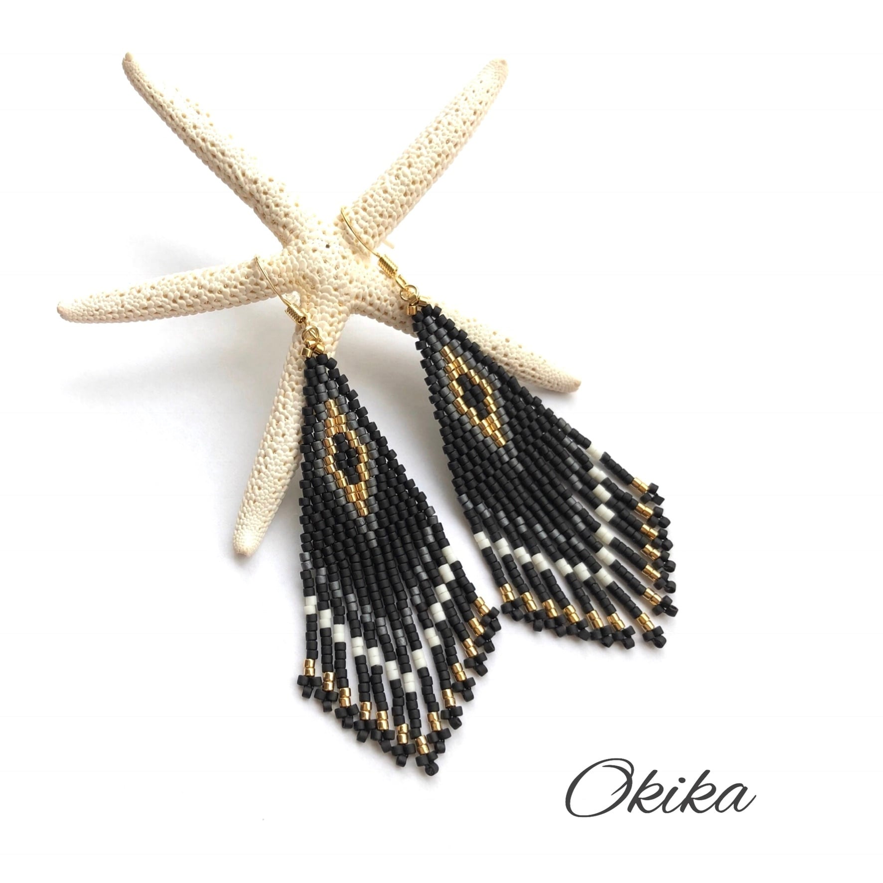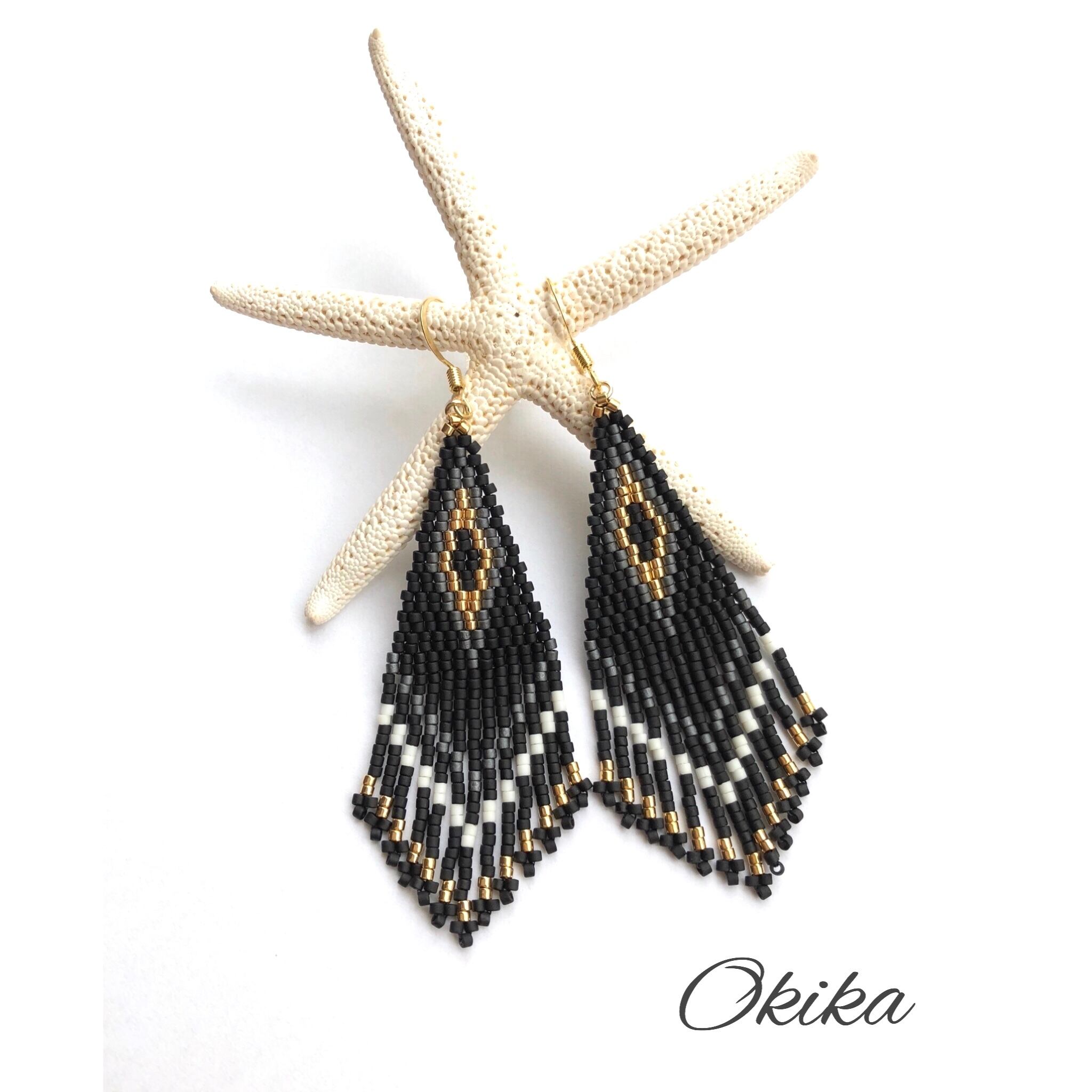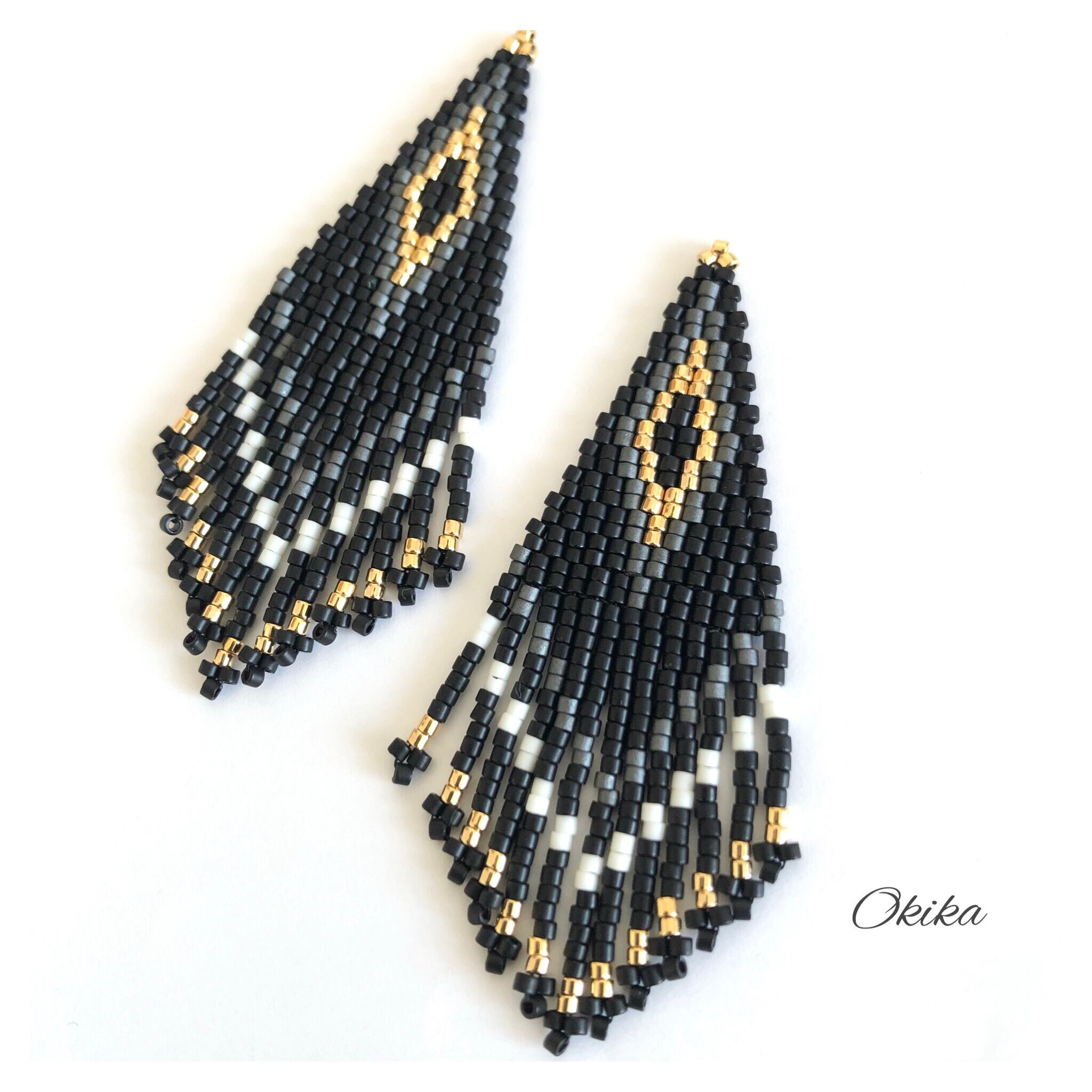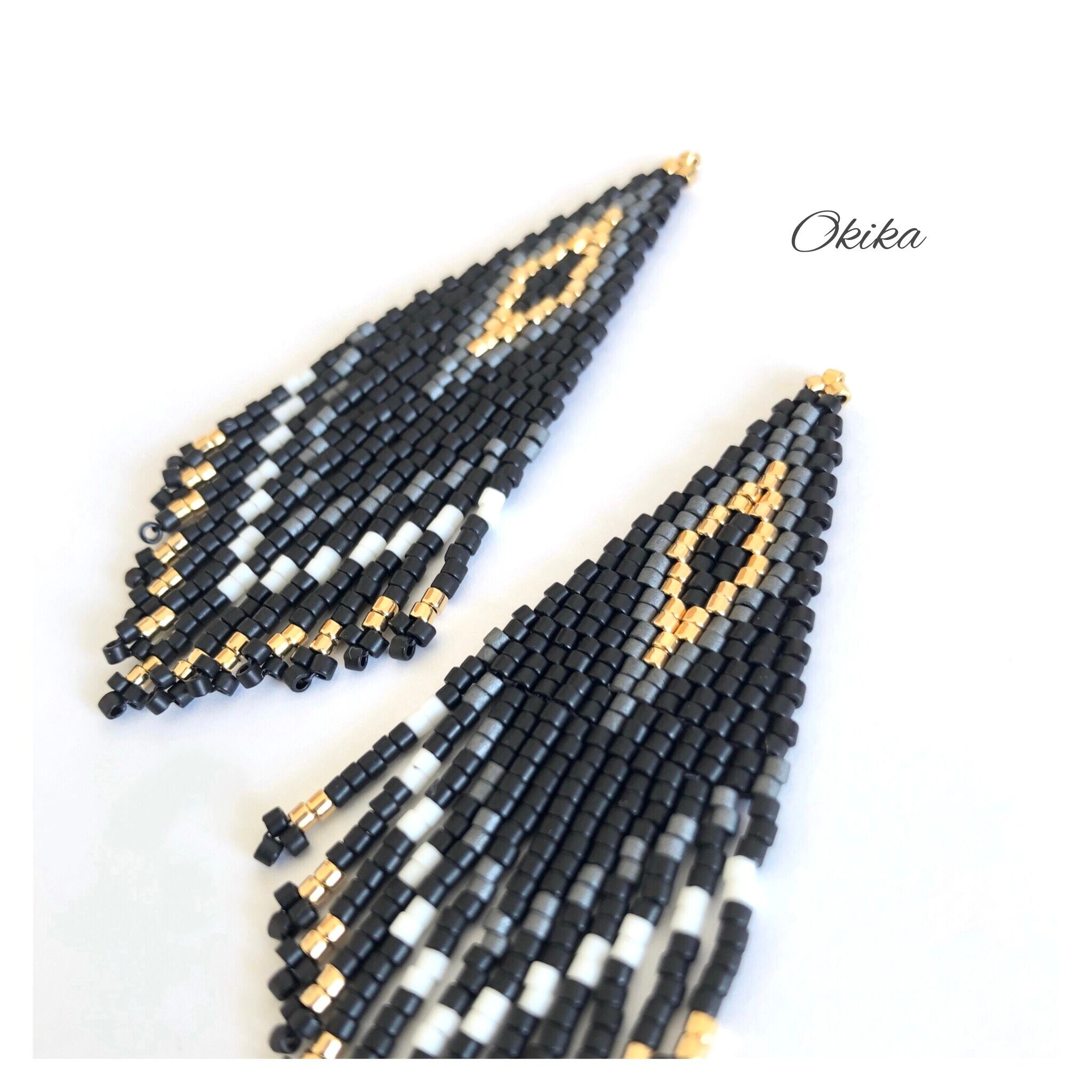 フリンジ ピアス/イヤリング【Black× gold】
