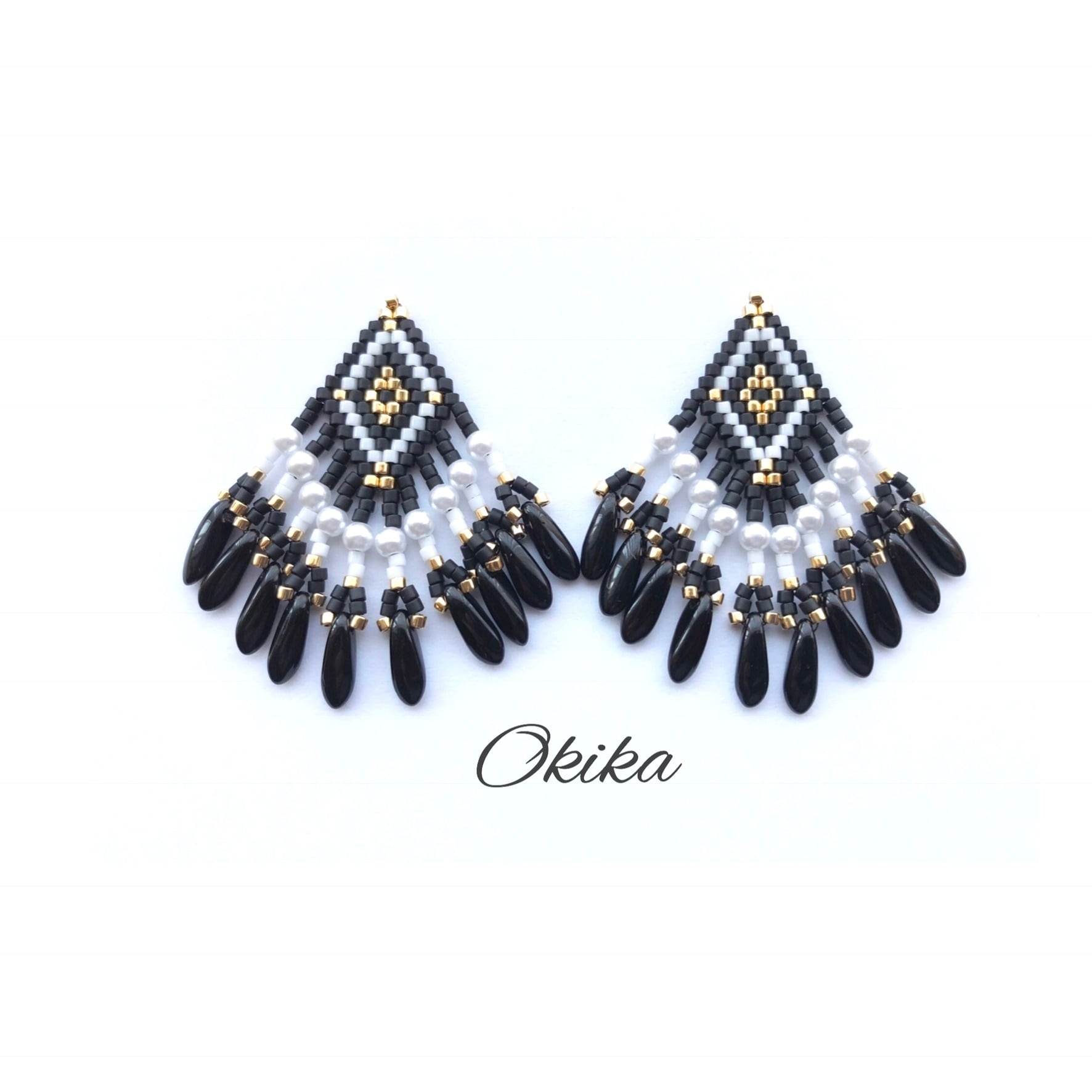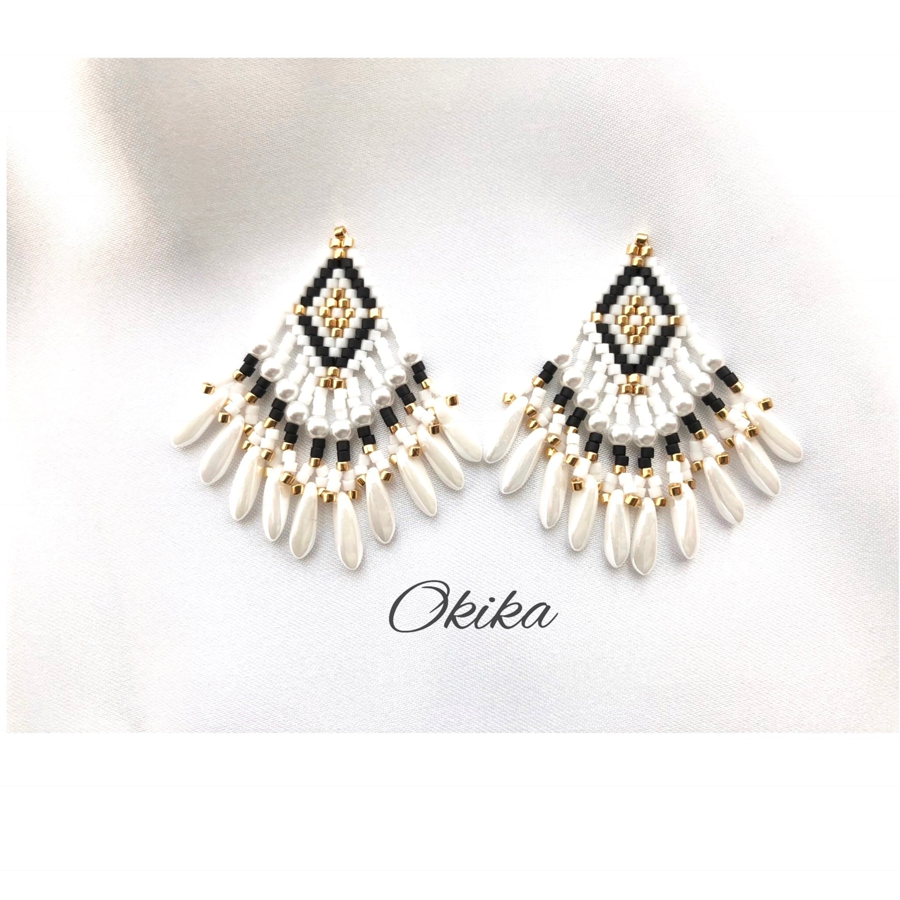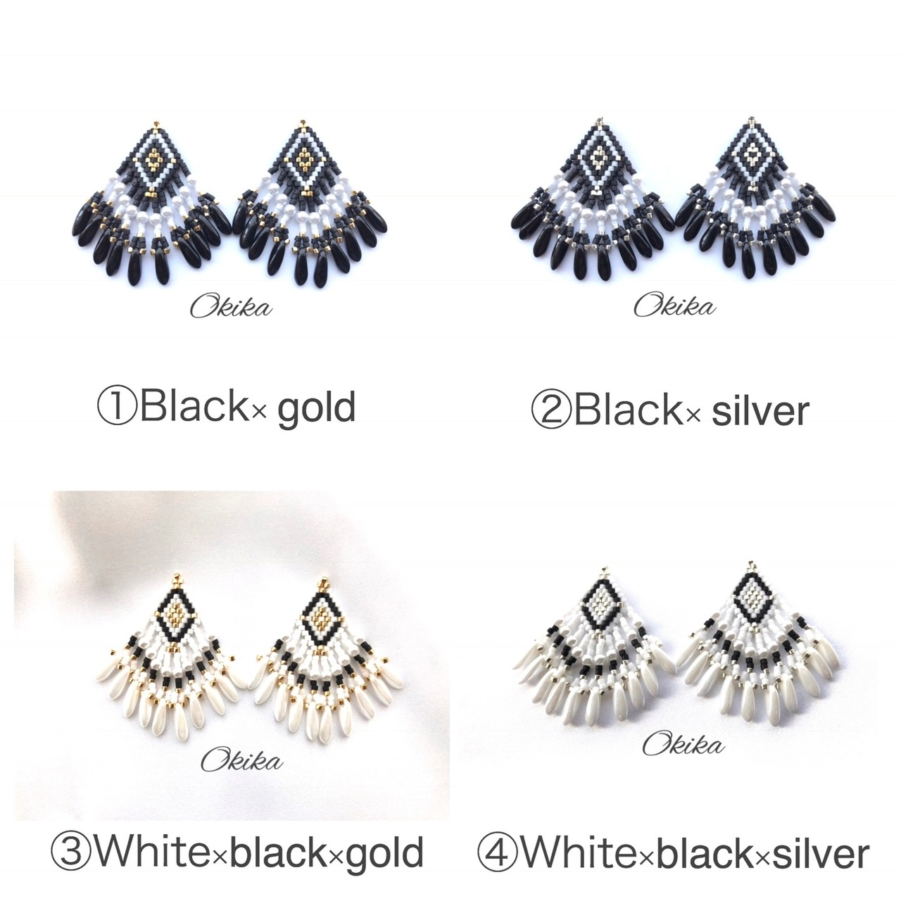 《フリンジ・タッセル・ビーズピアス・ダイヤモンド・ひし形ピアス・大人ピアス・フリンジピアス・シンプル・シンプルピアス・パールピアス・パールイヤリング・チェコビーズピアス》