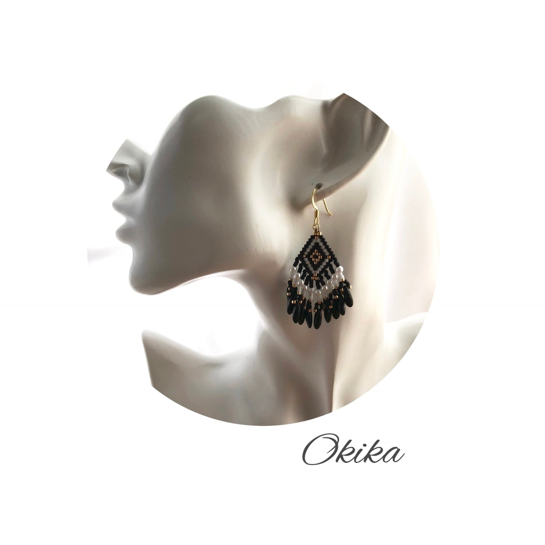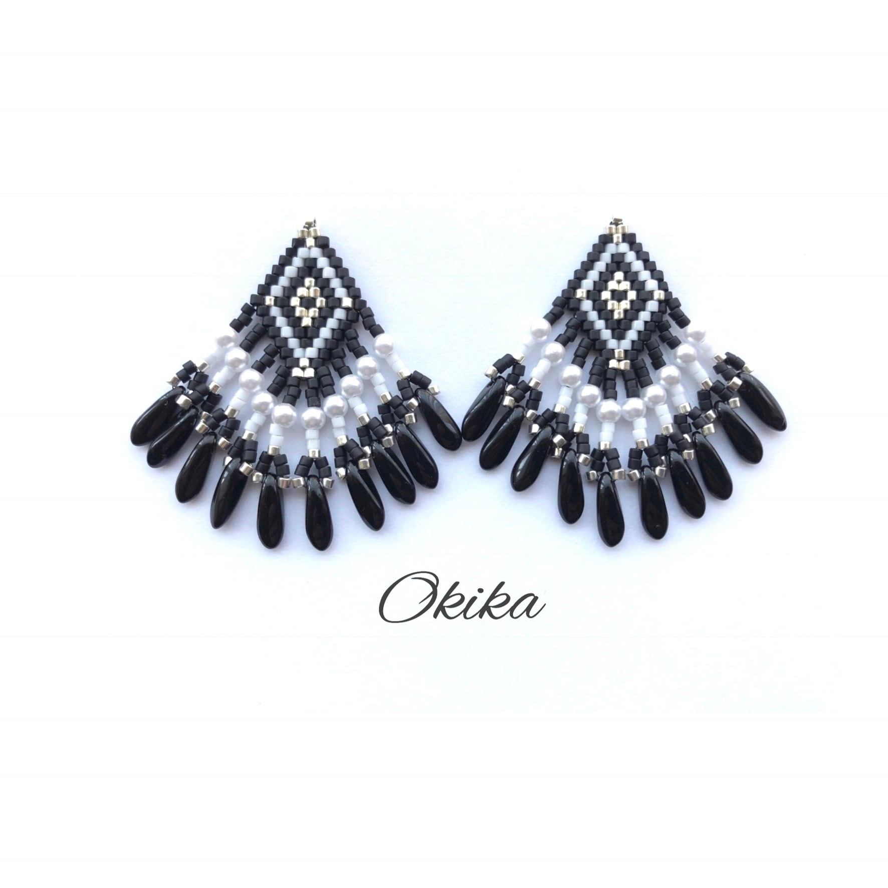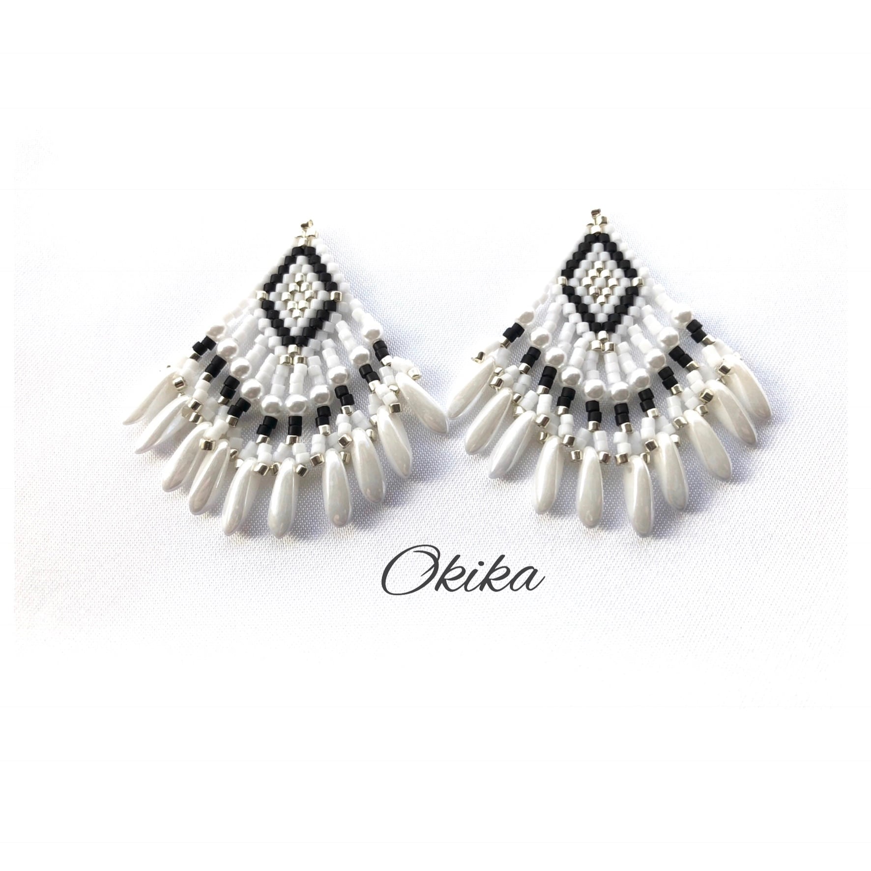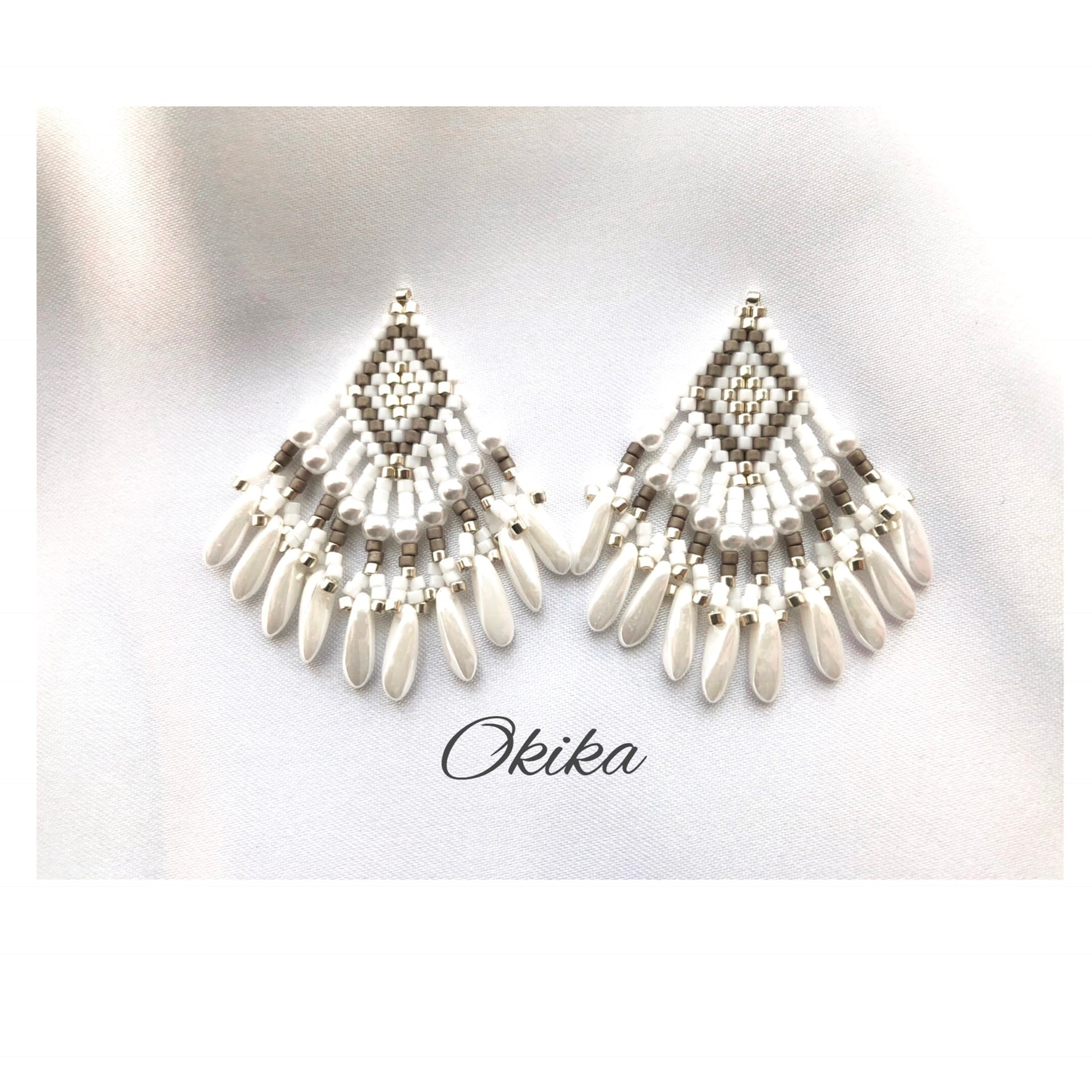 《フリンジ・タッセル・ビーズピアス・ダイヤモンド・ひし形ピアス・大人ピアス・フリンジピアス・シンプル・シンプルピアス・パールピアス・パールイヤリング・チェコビーズピアス》