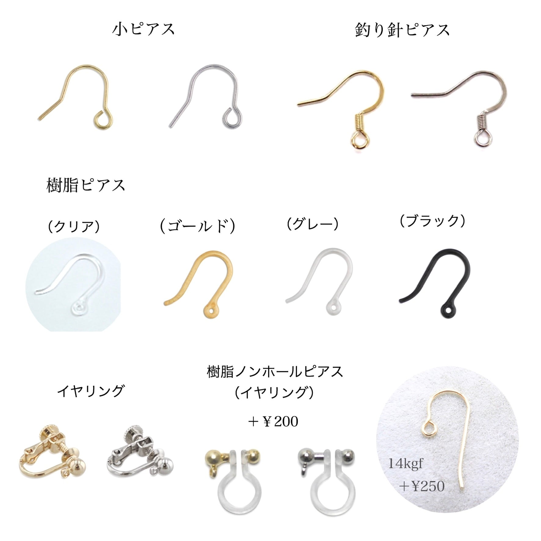 ※釣り針ピアス、樹脂フックピアスに変更をご希望の方は備考欄にご記入ください。