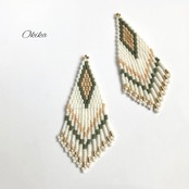 フリンジ ピアス/イヤリング【Khaki×Beige】