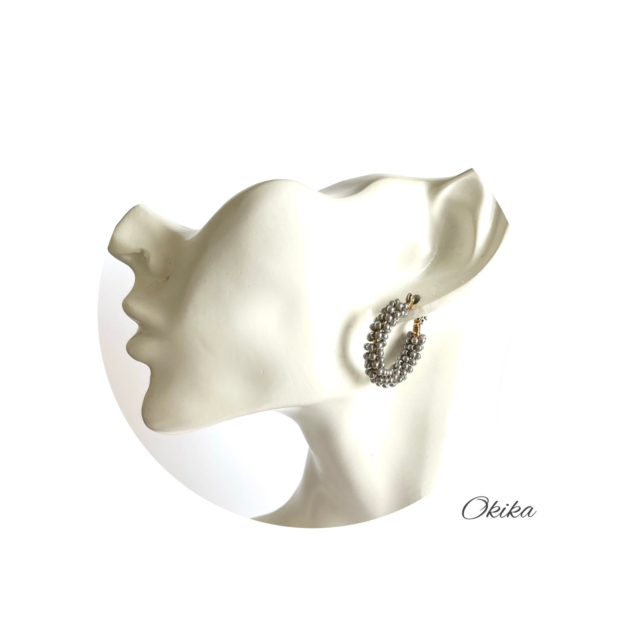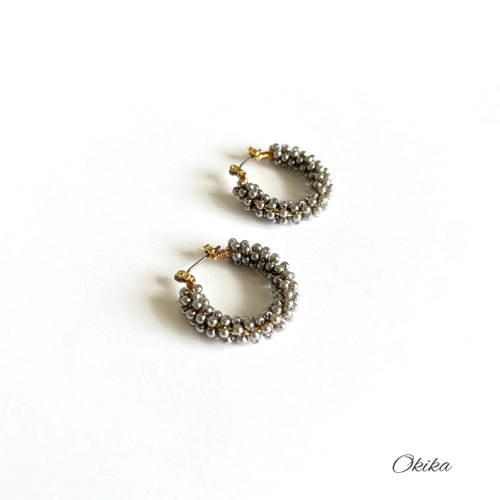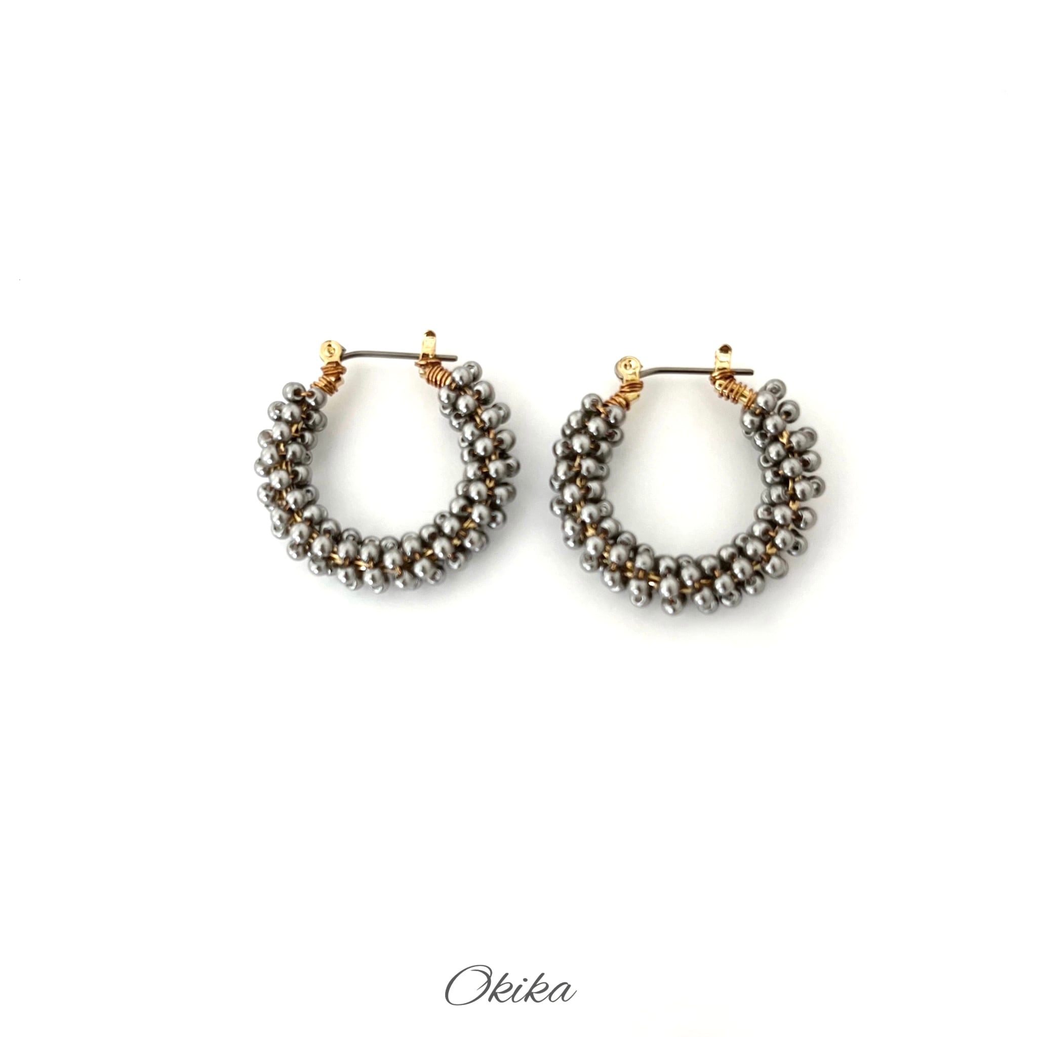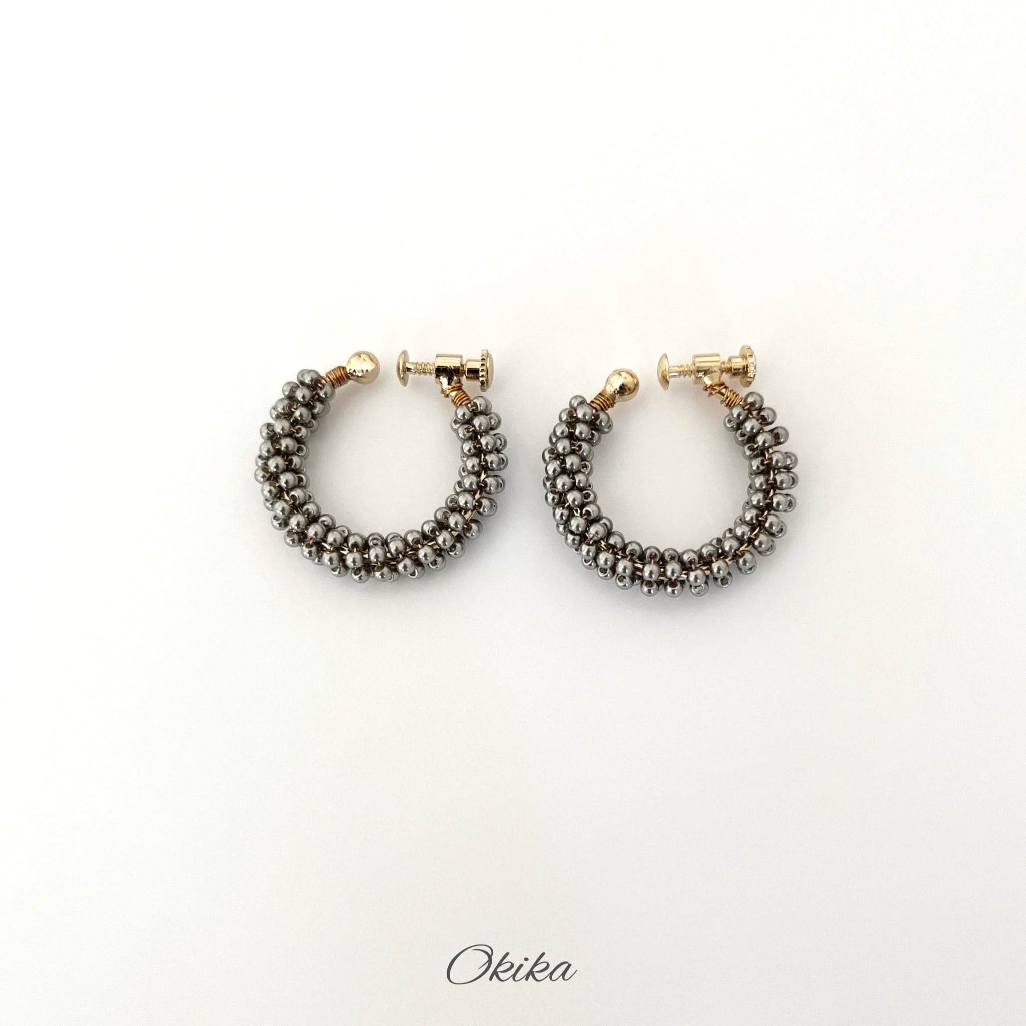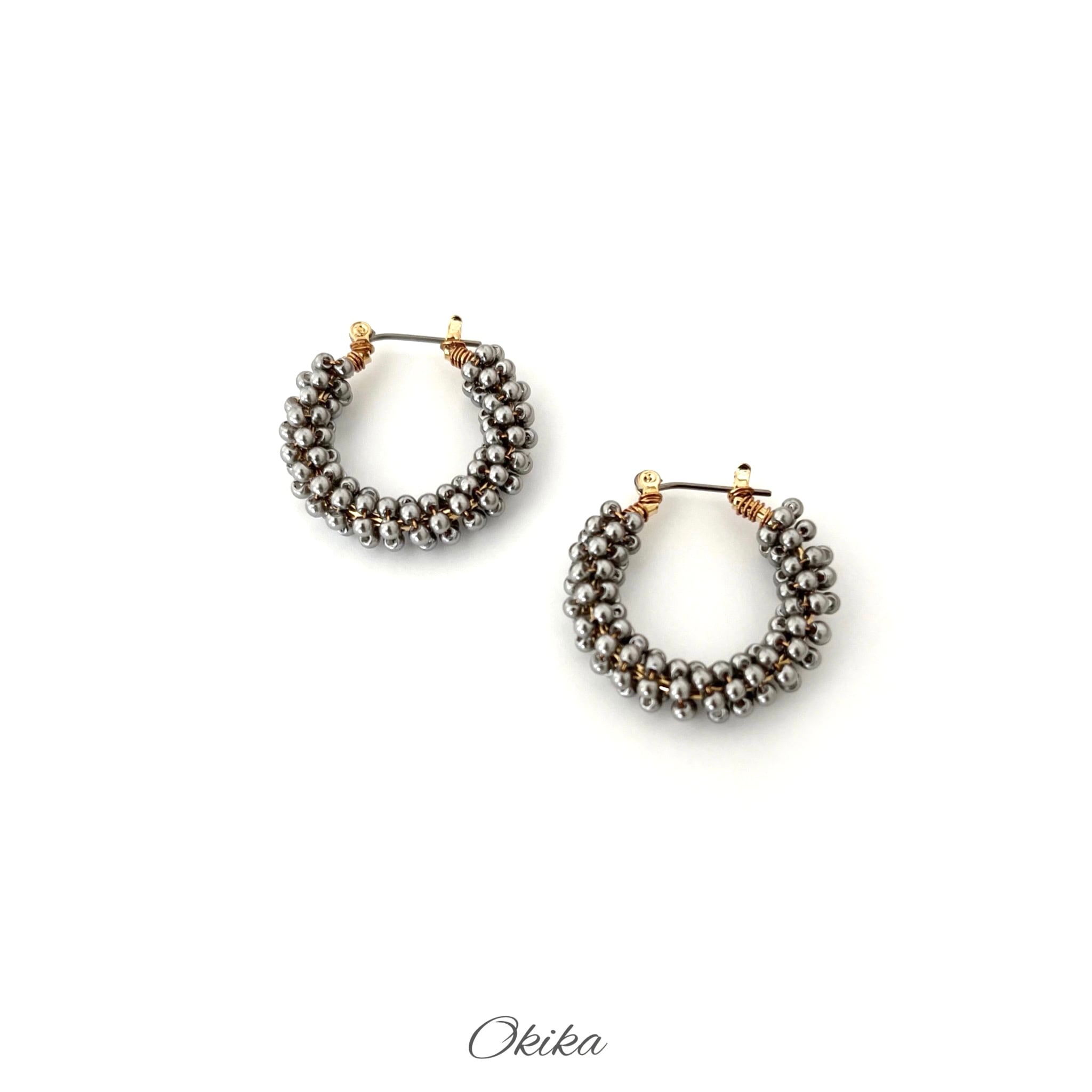 パール ビーズ フープチタンピアス/イヤリング【Gray】