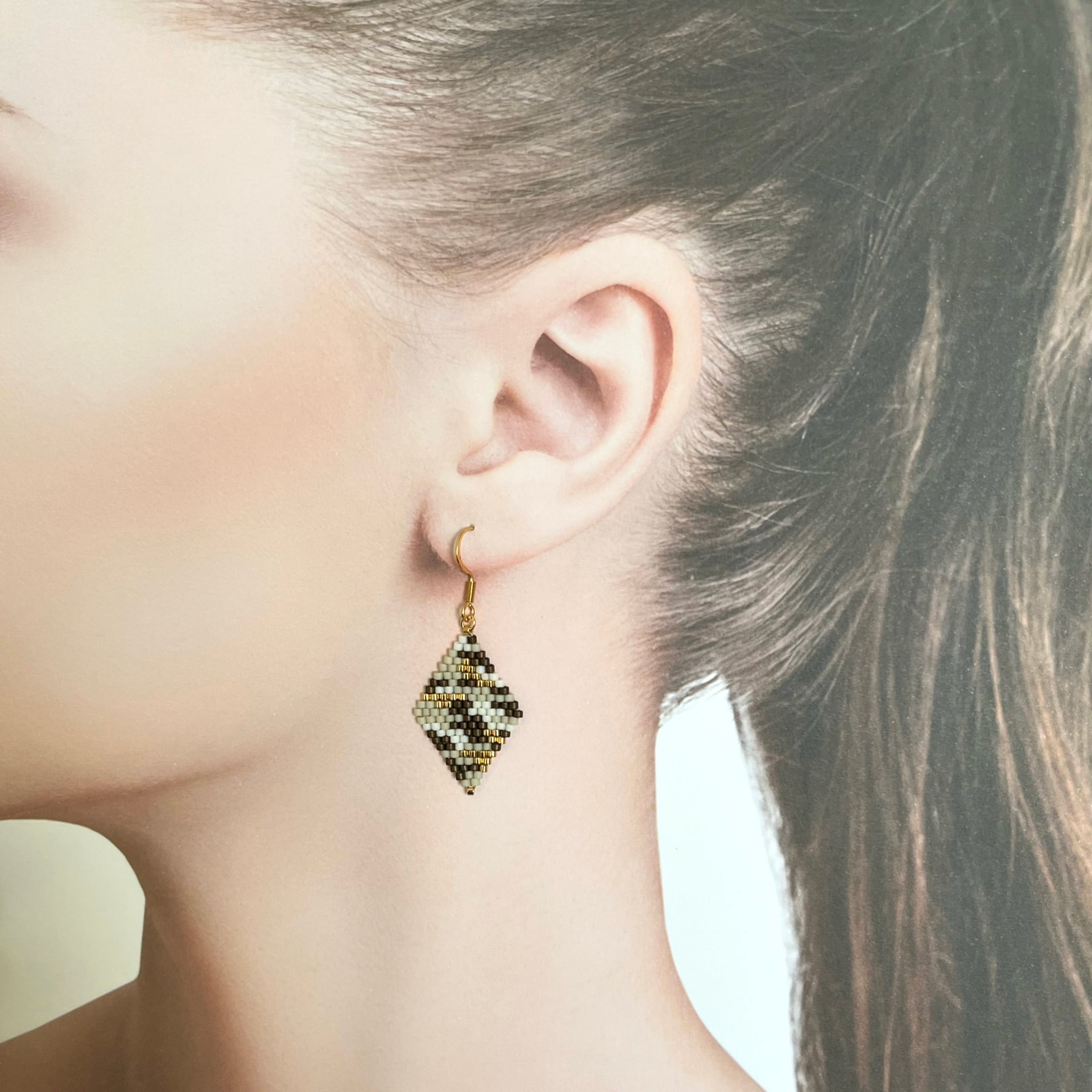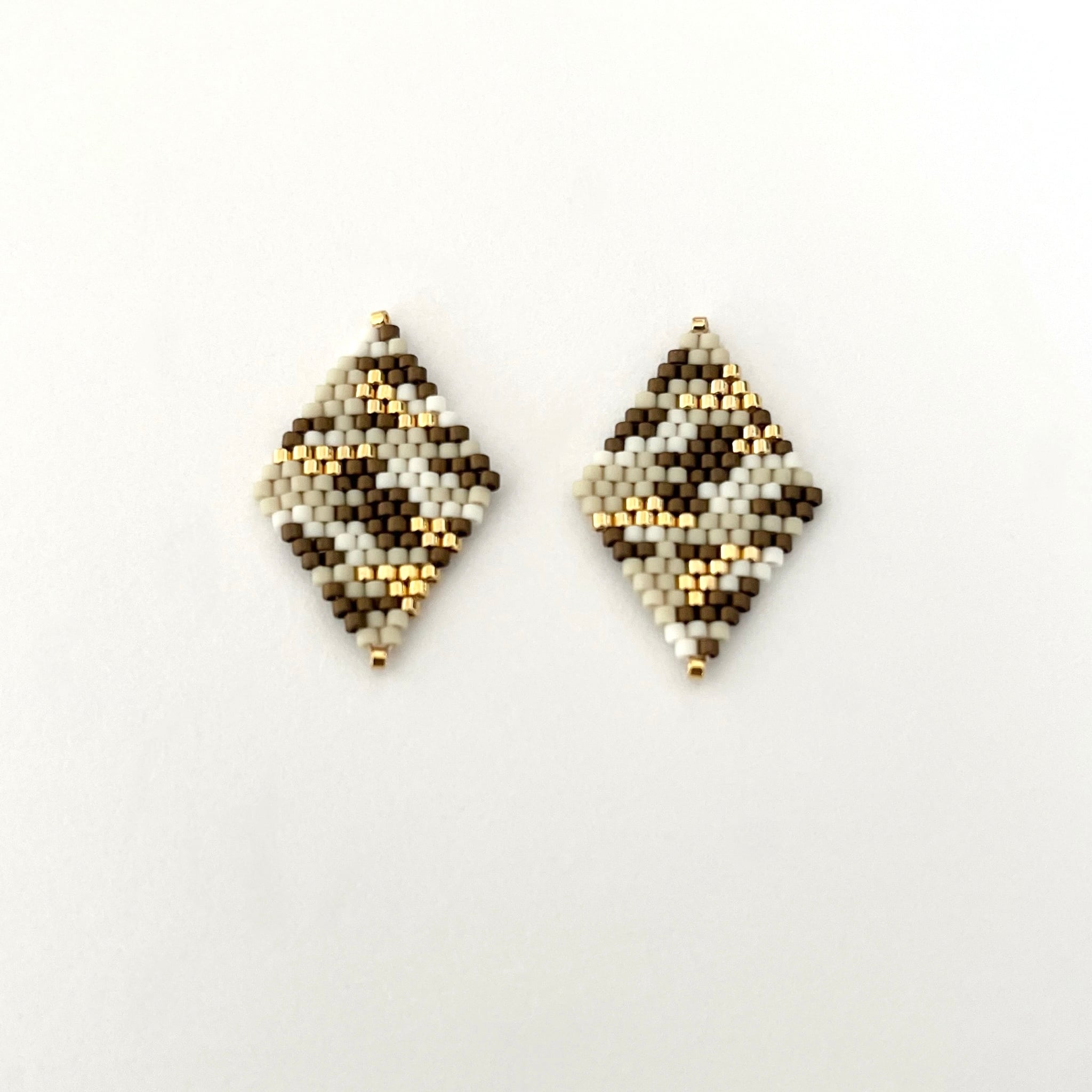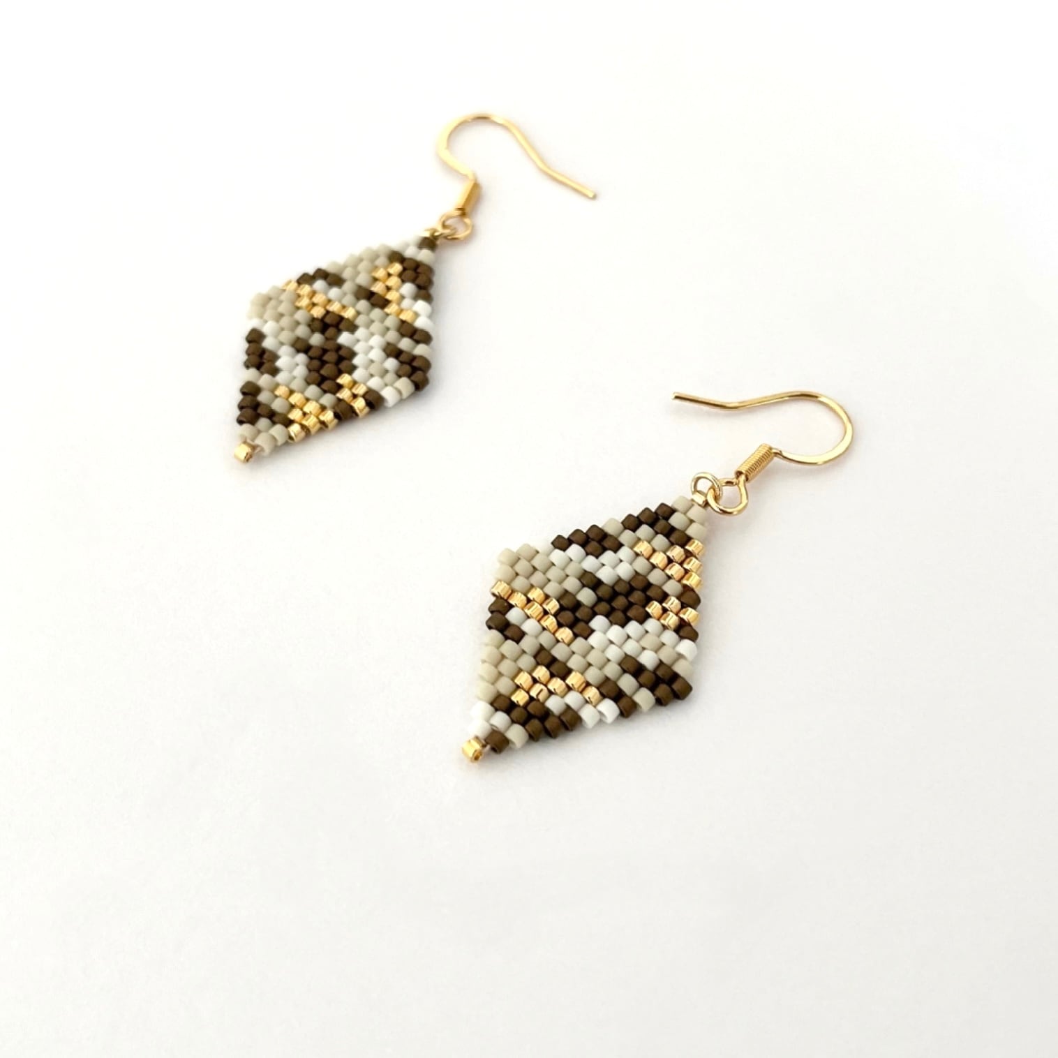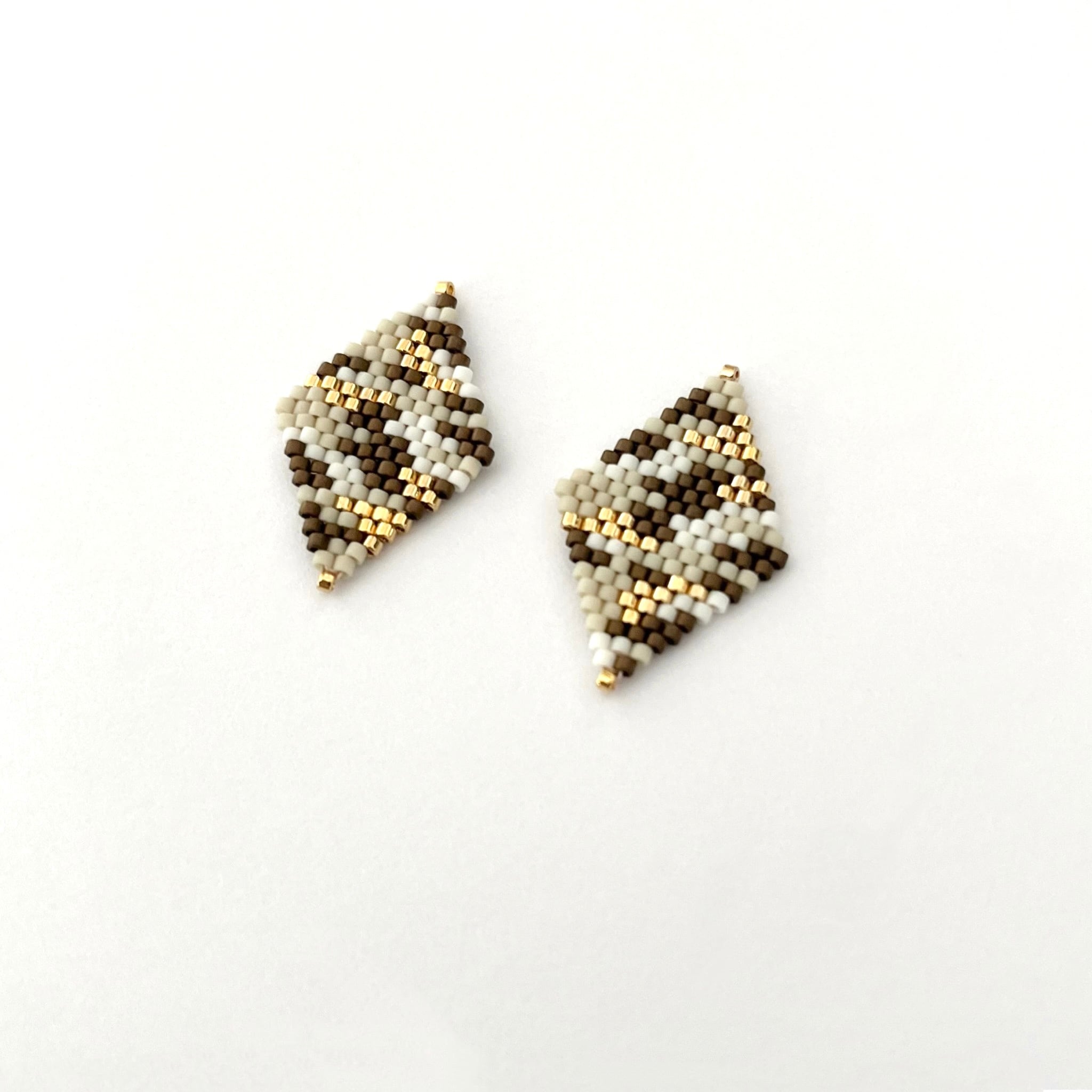 カモフラ柄ビーズピアス/イヤリング【Ecru ×gold】