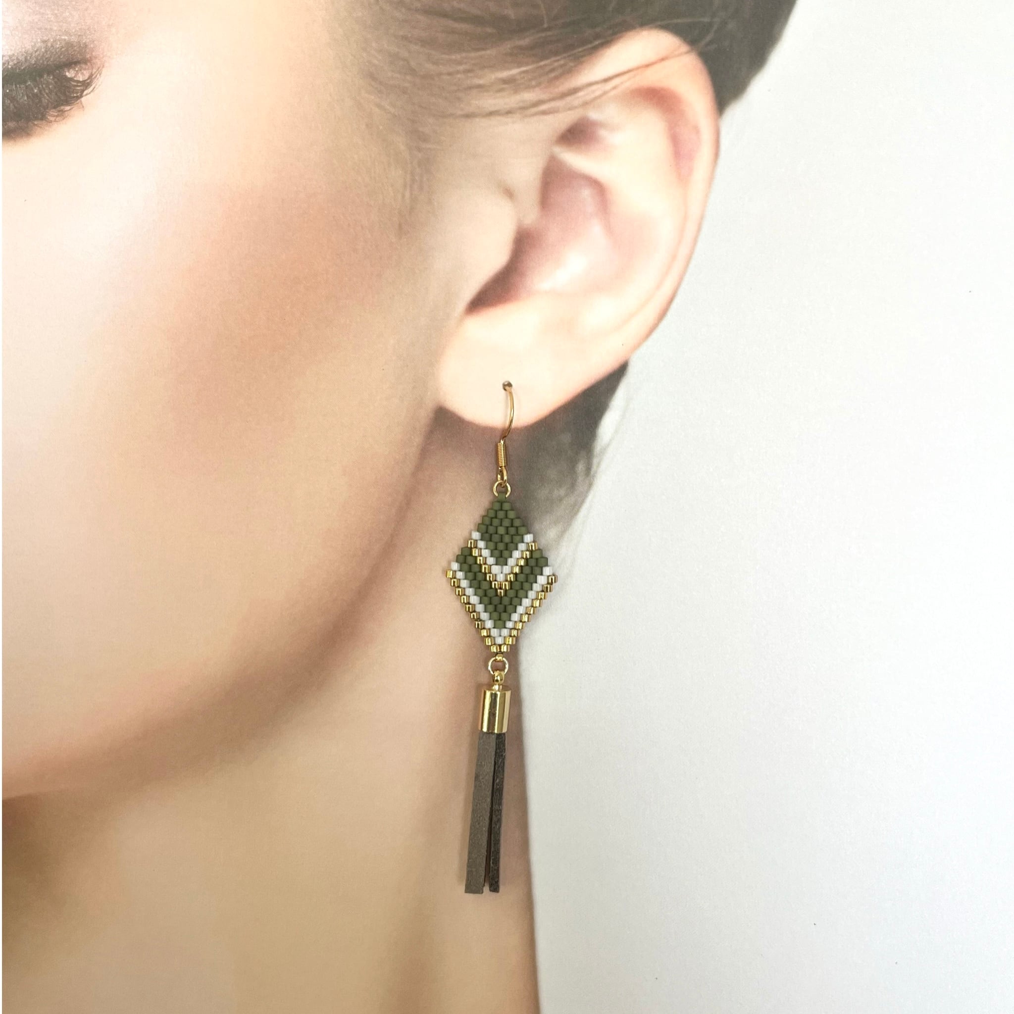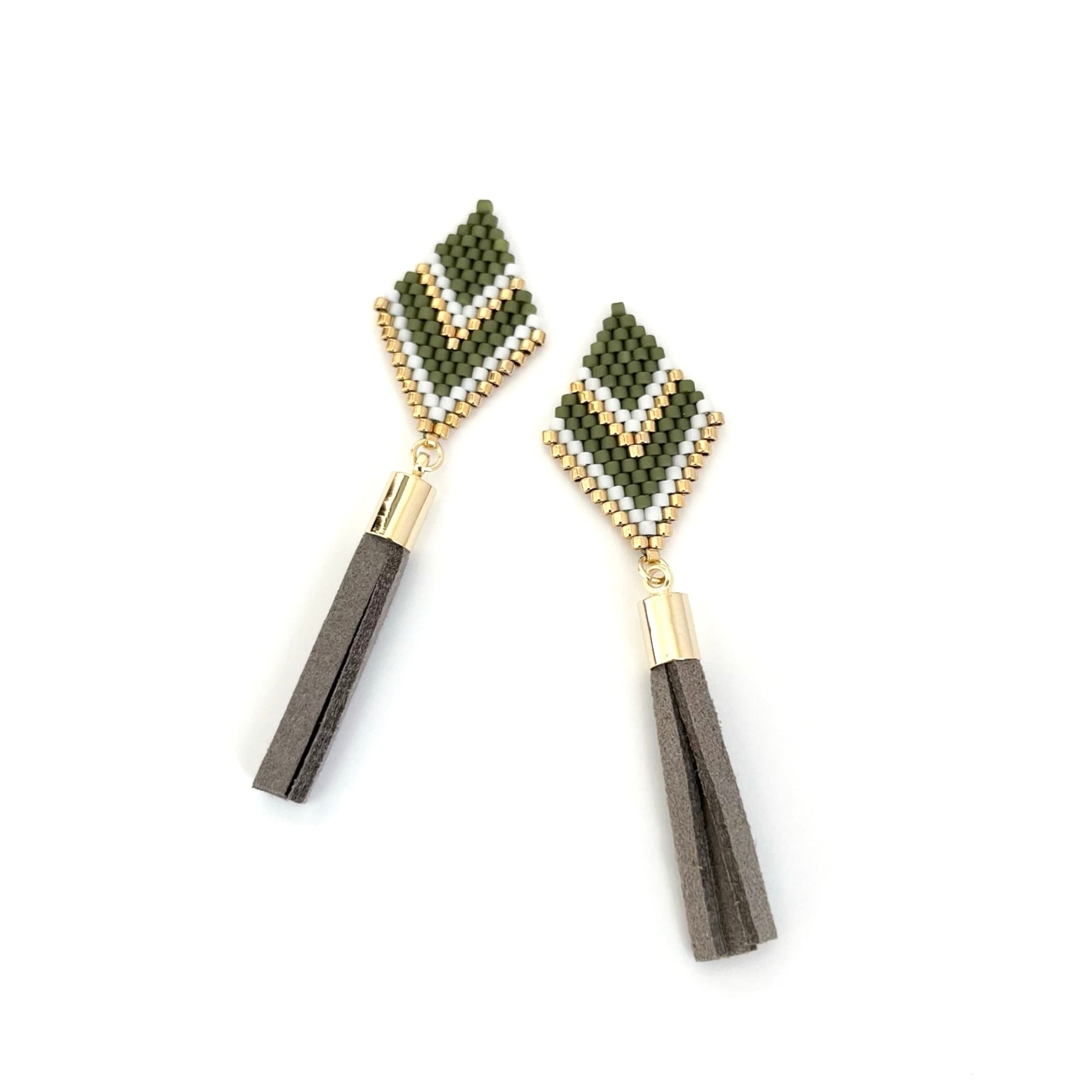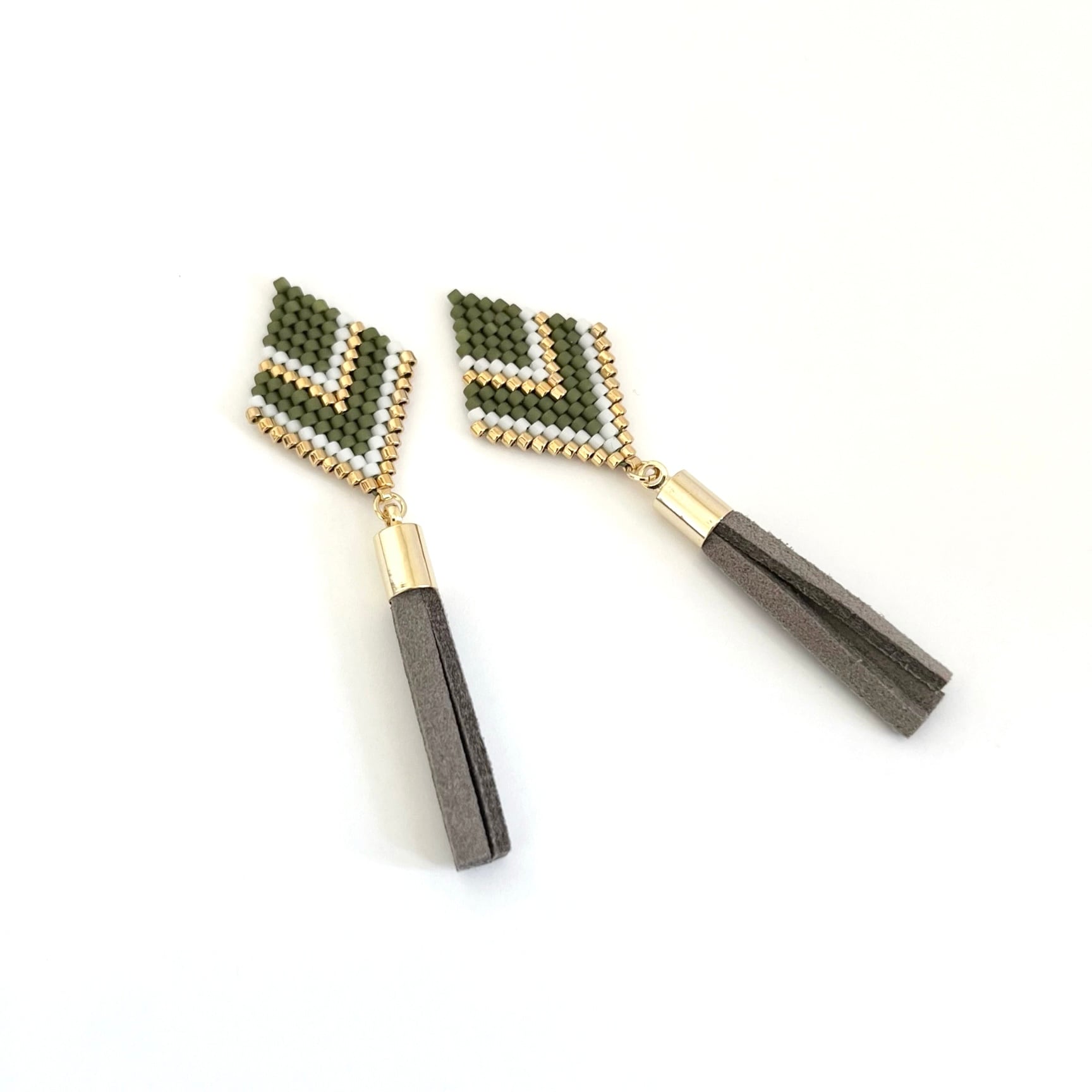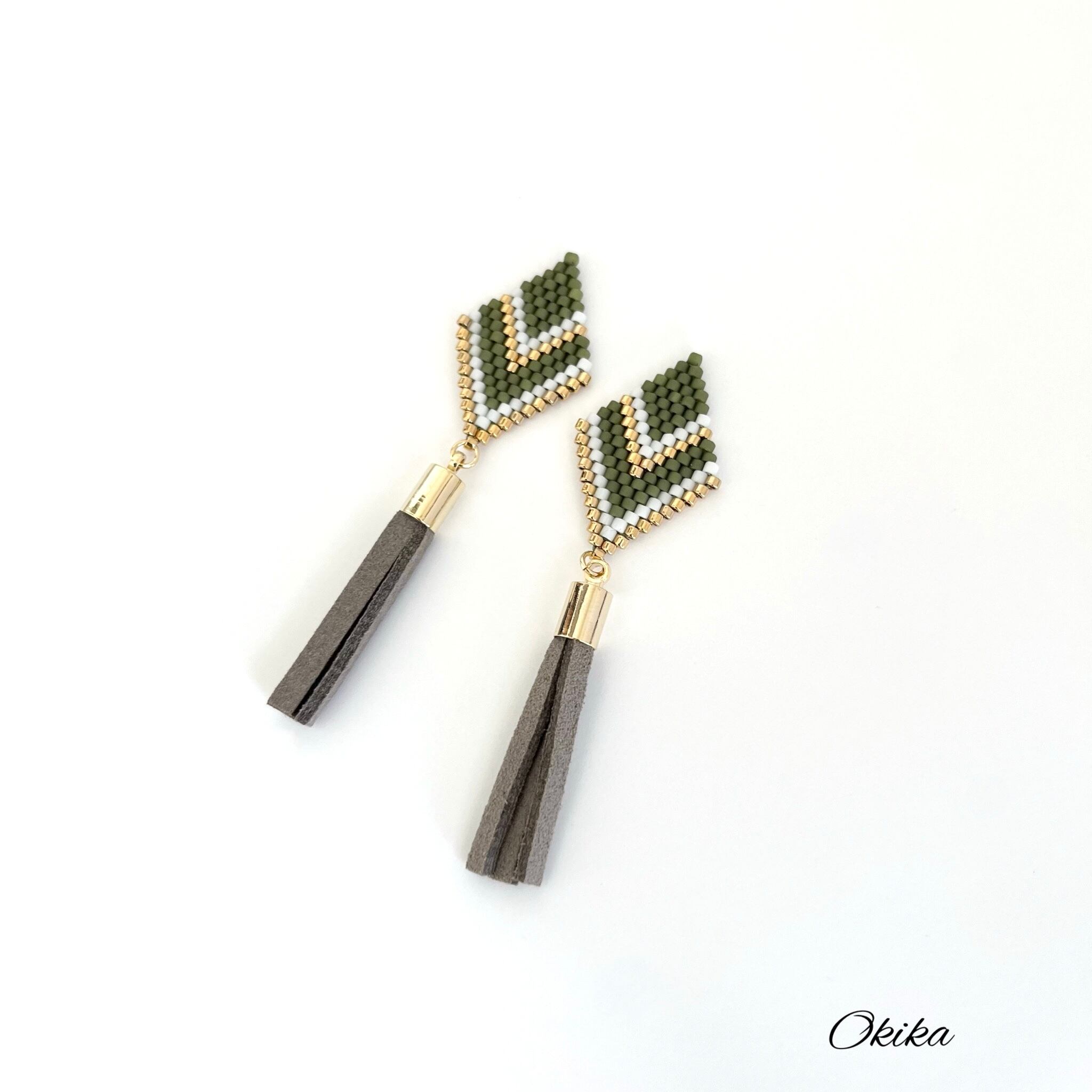 ビーズ タッセル ピアス/イヤリング【Khaki】